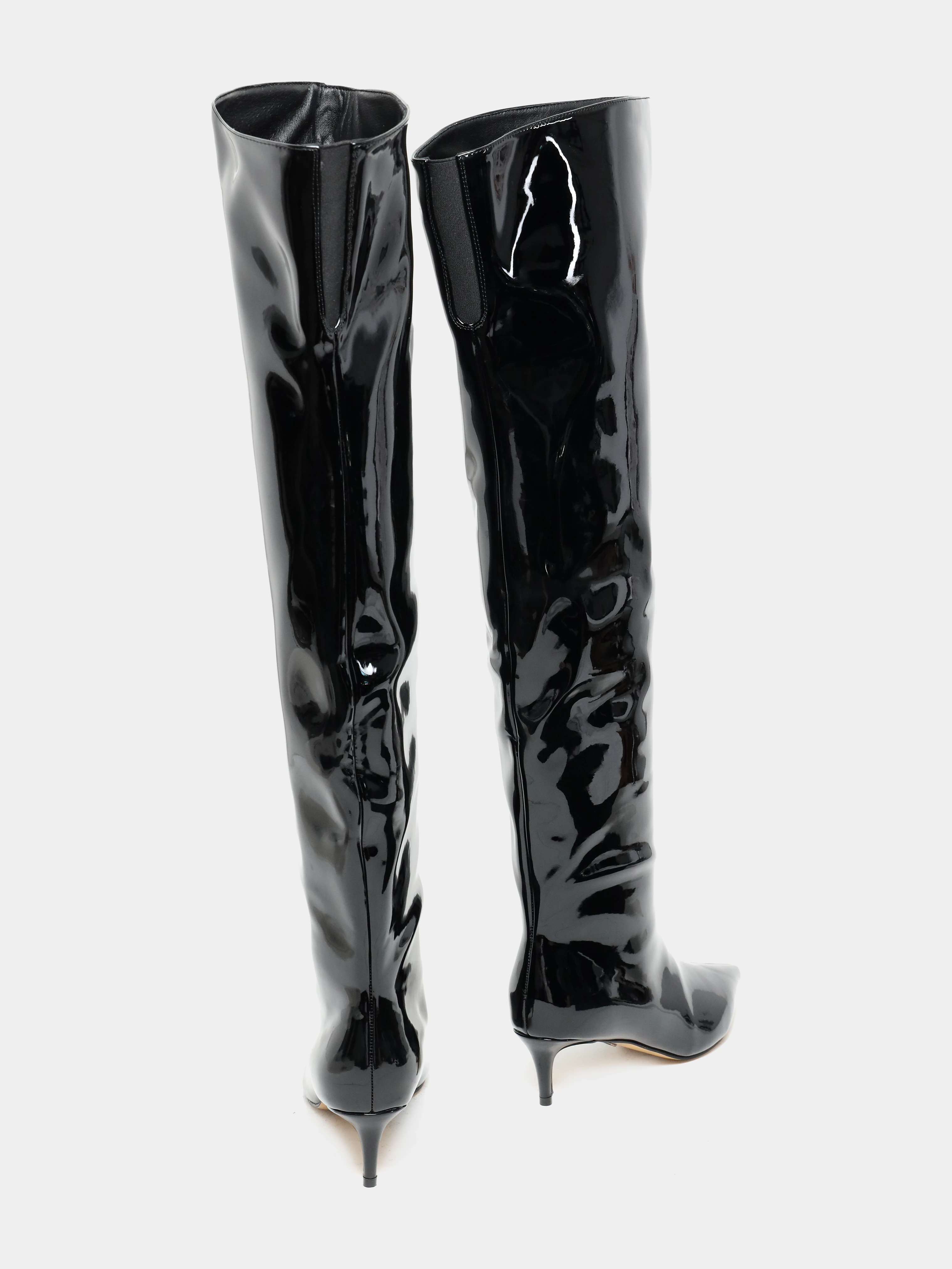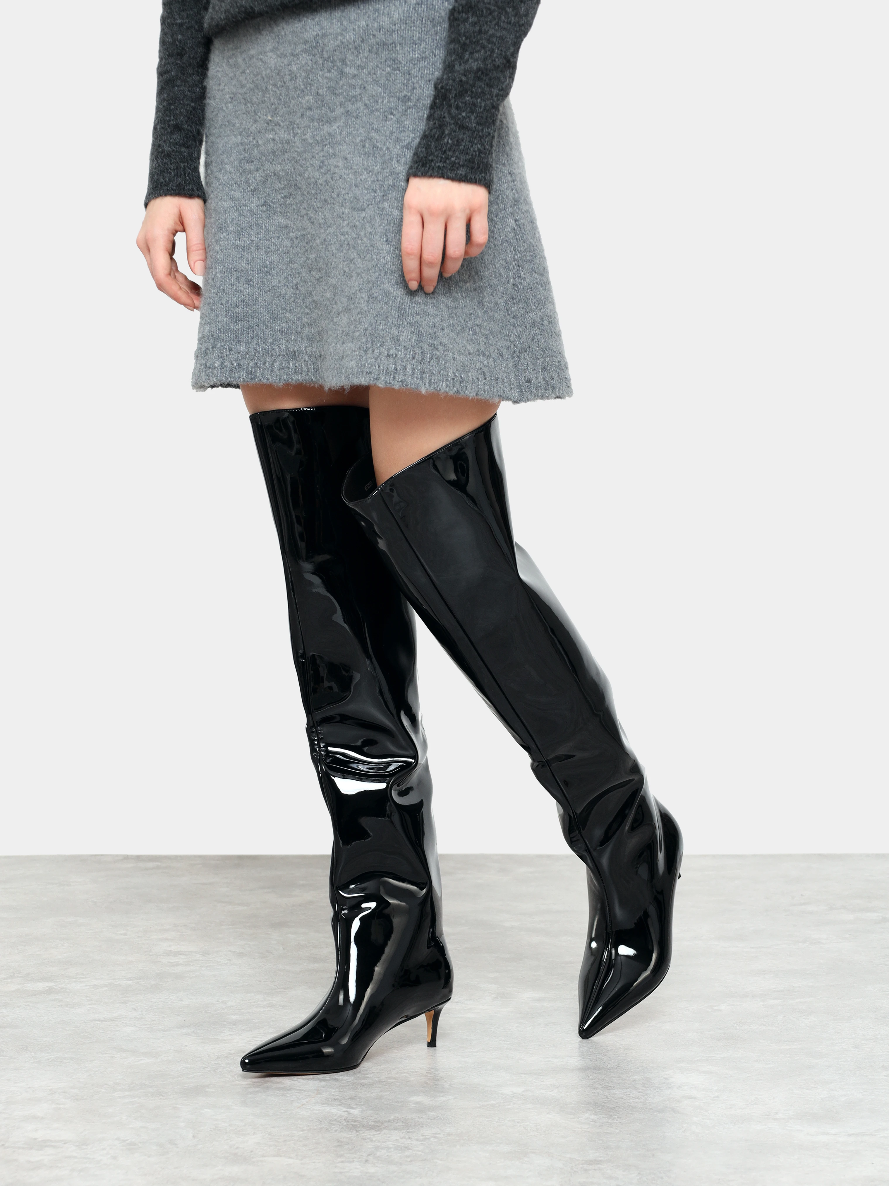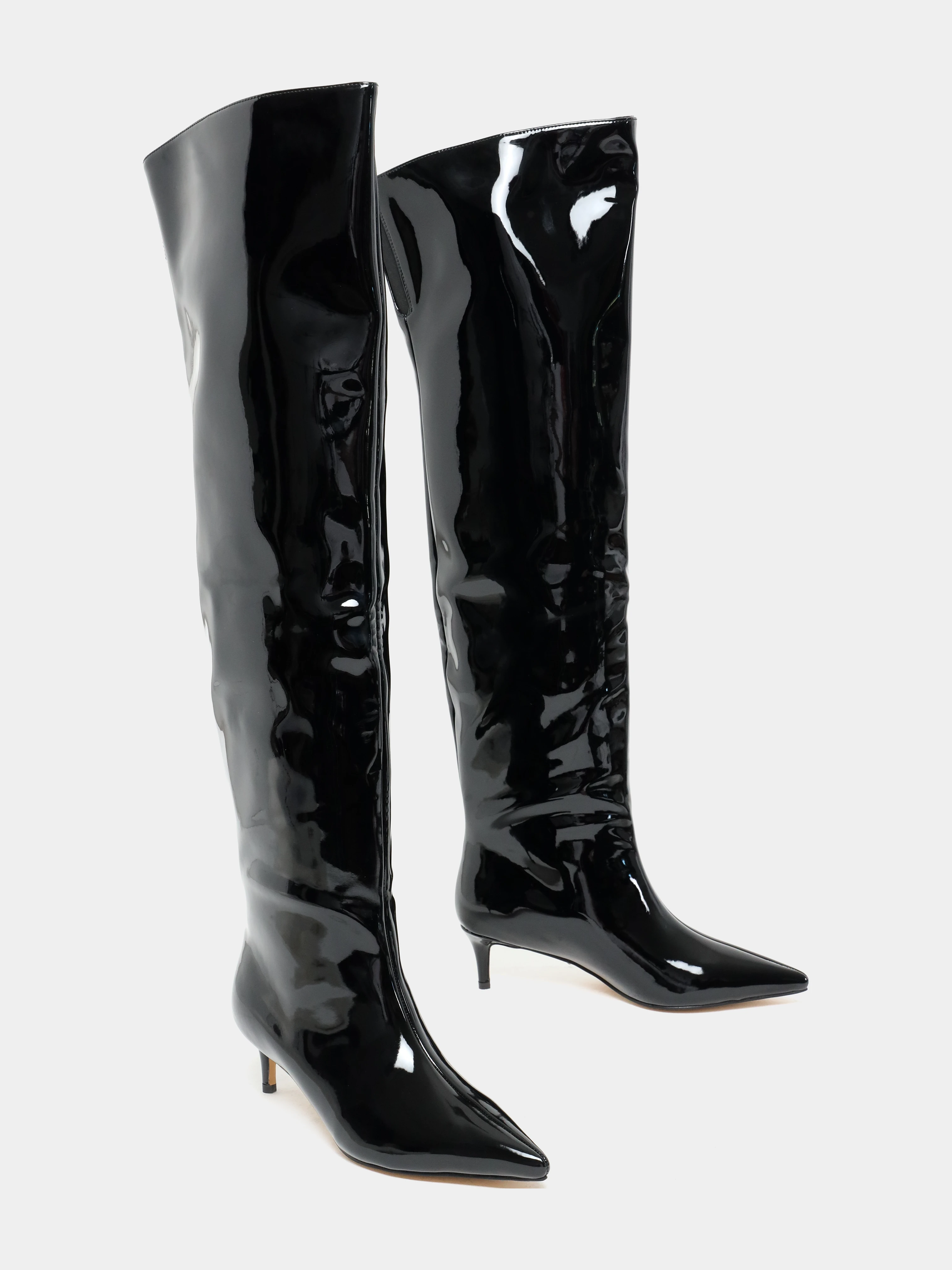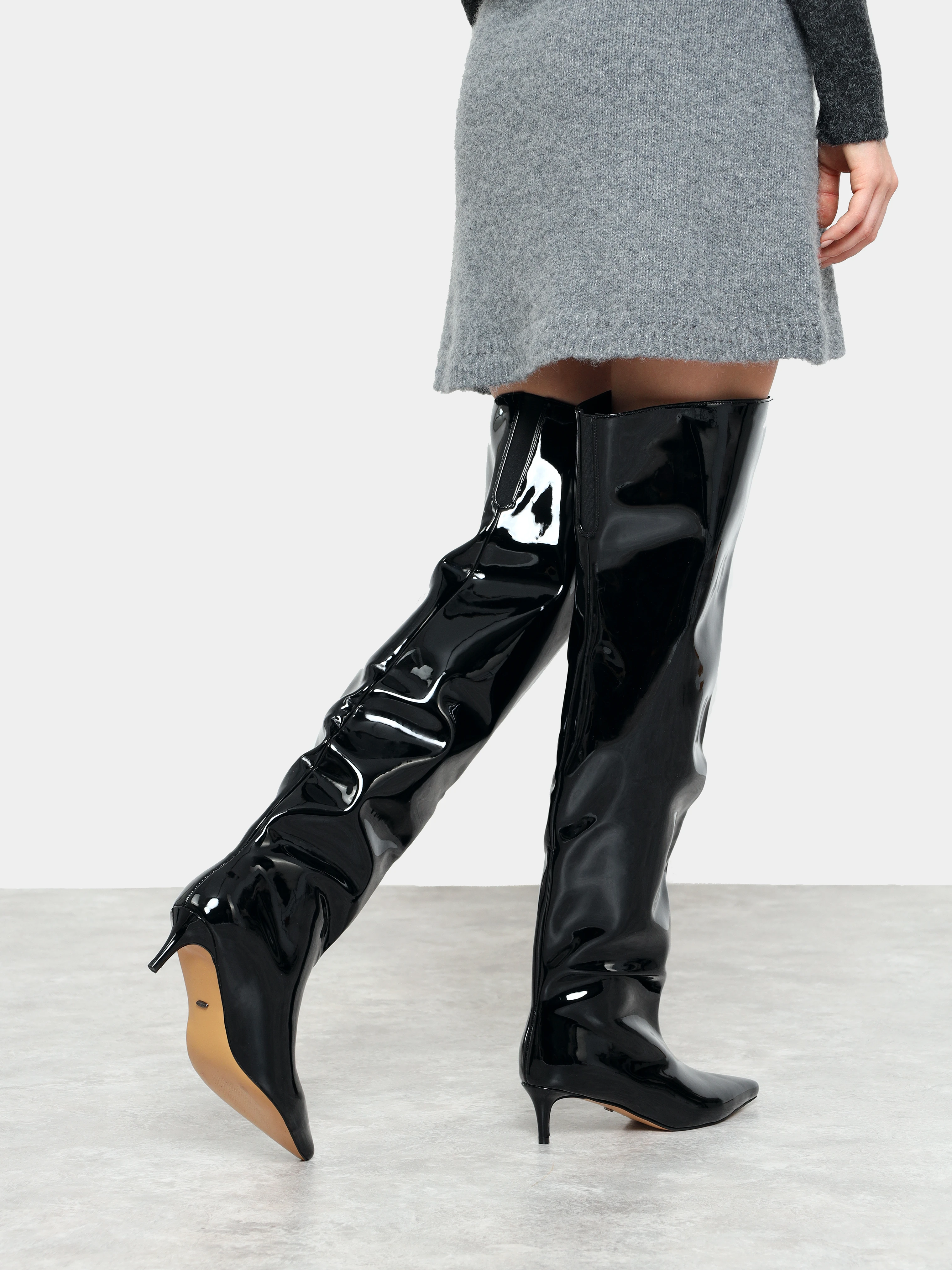 Ботфорты женские демисезонные, цвет черный, натуральная лаковая кожа