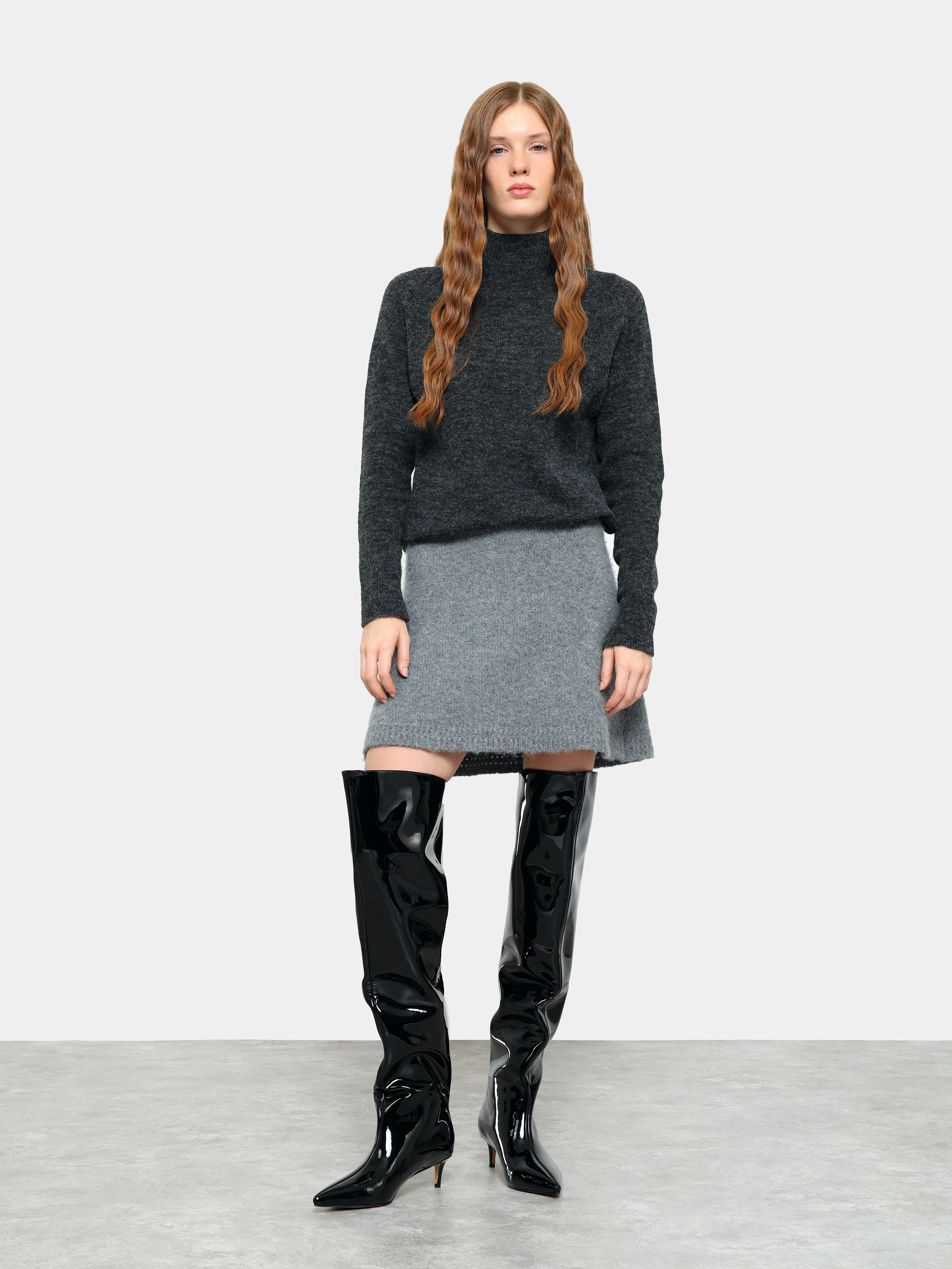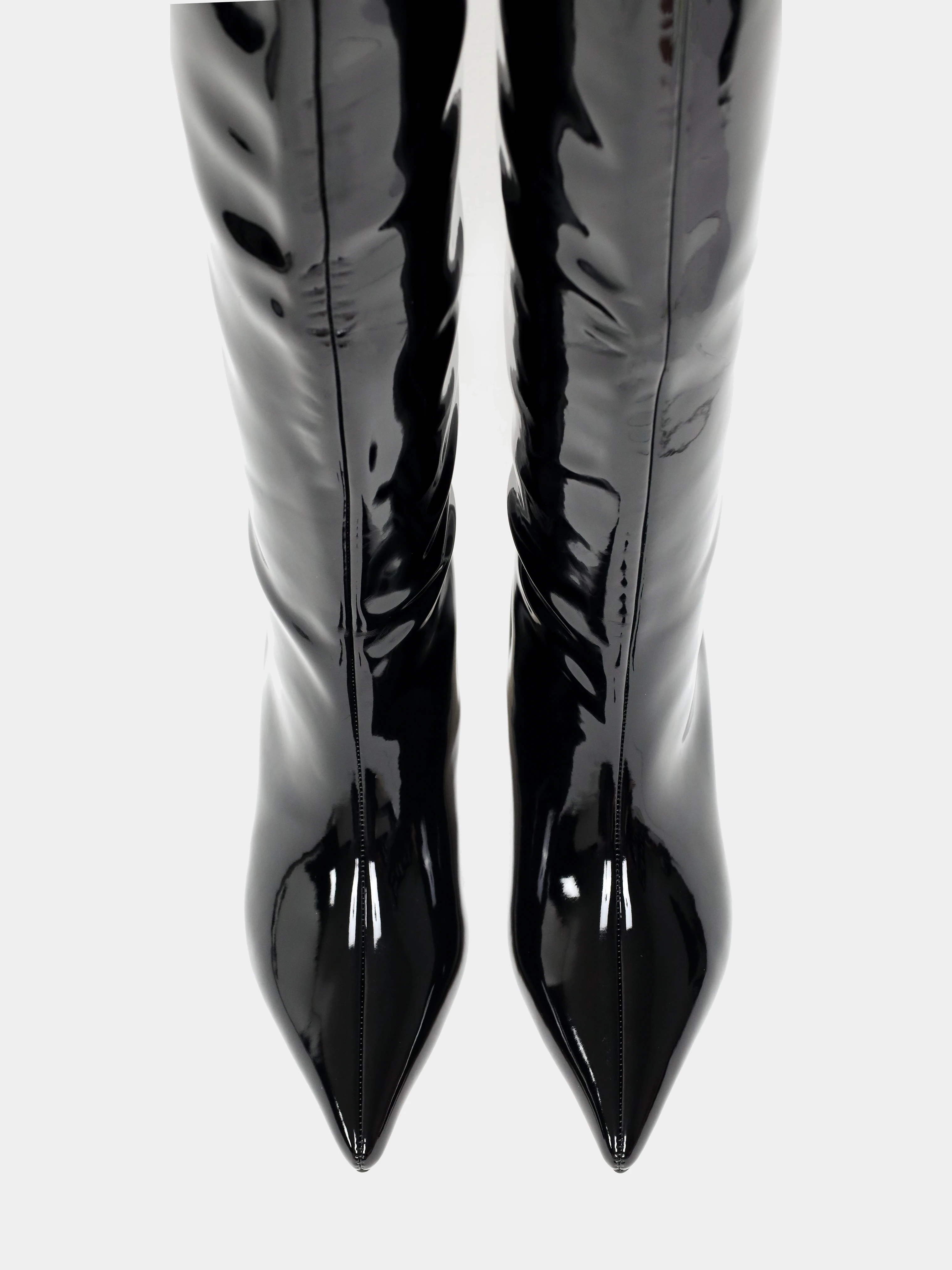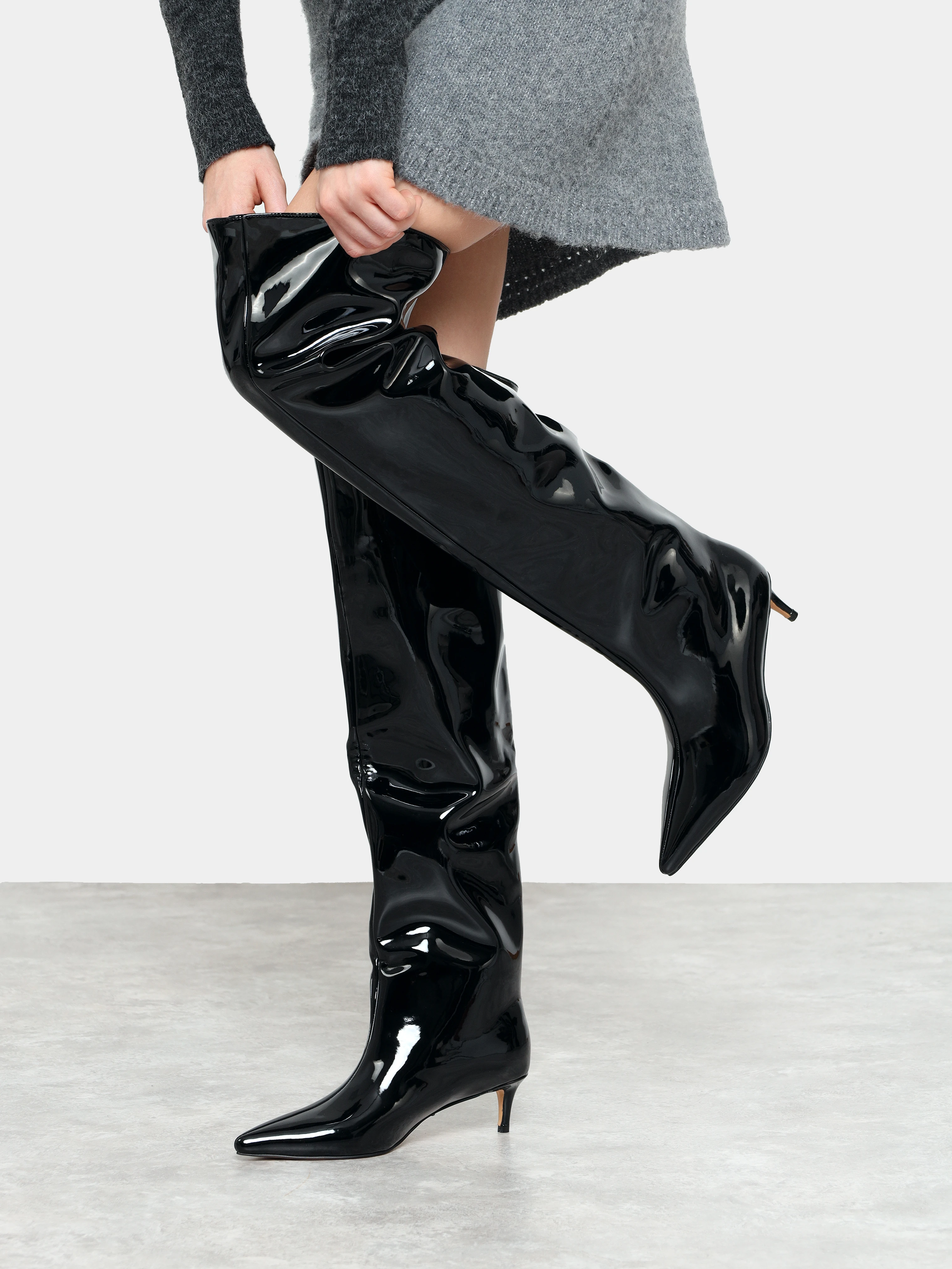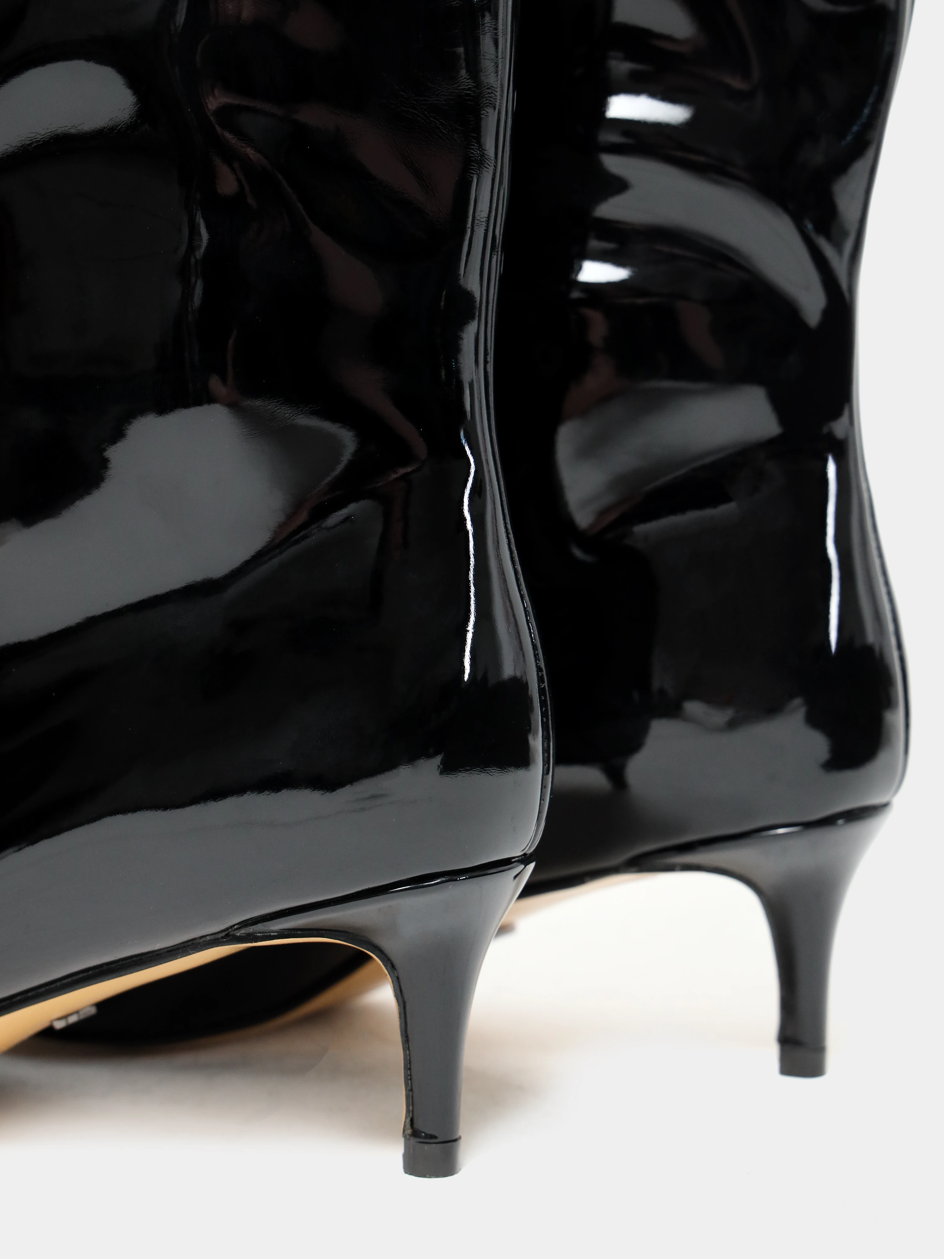 Ботфорты женские демисезонные, цвет черный, натуральная лаковая кожа