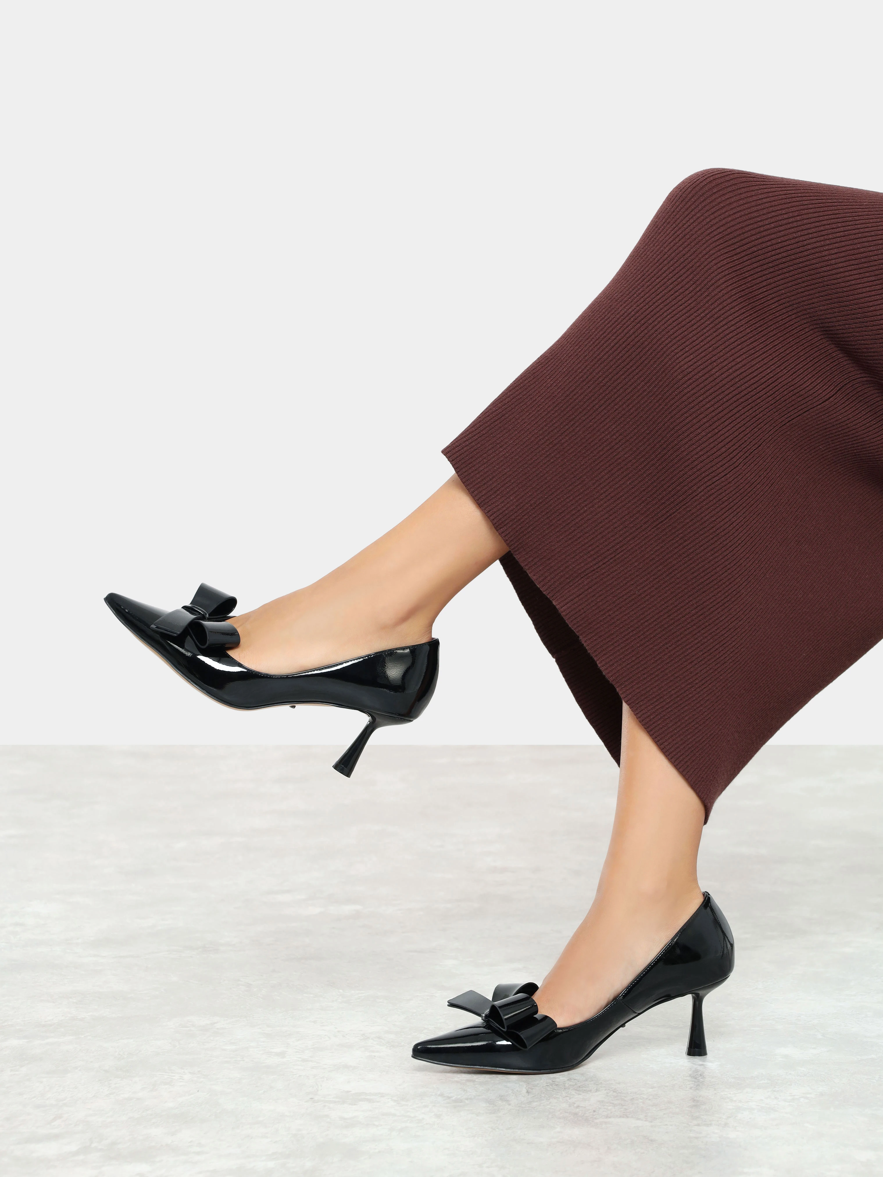 Туфли женские всесезонные, цвет черный, искусственная лаковая кожа
