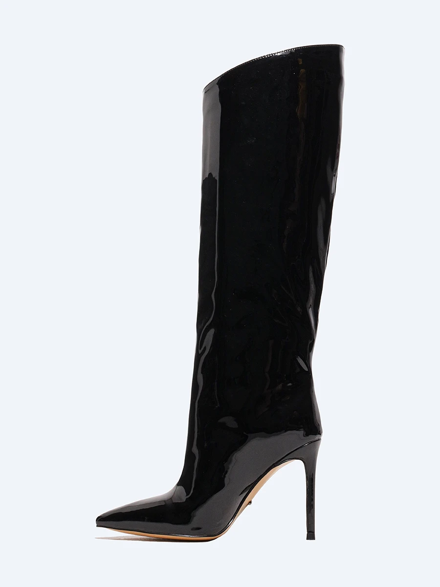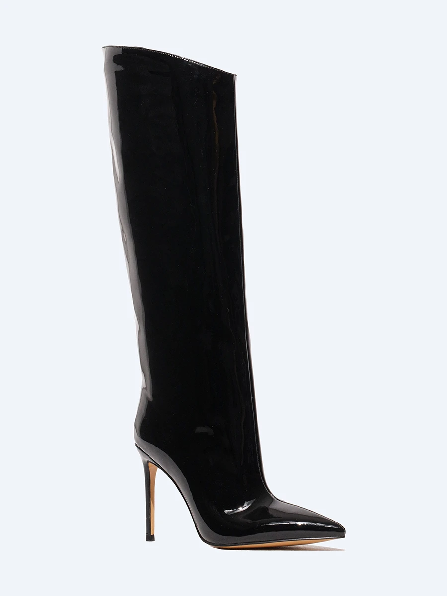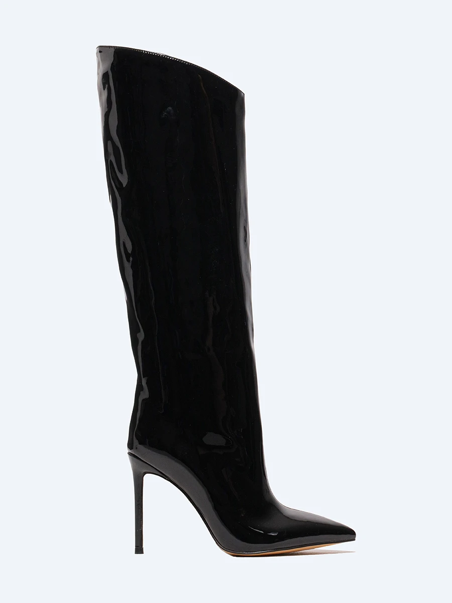 Сапоги женские демисезонные, цвет черный, искусственная лаковая кожа