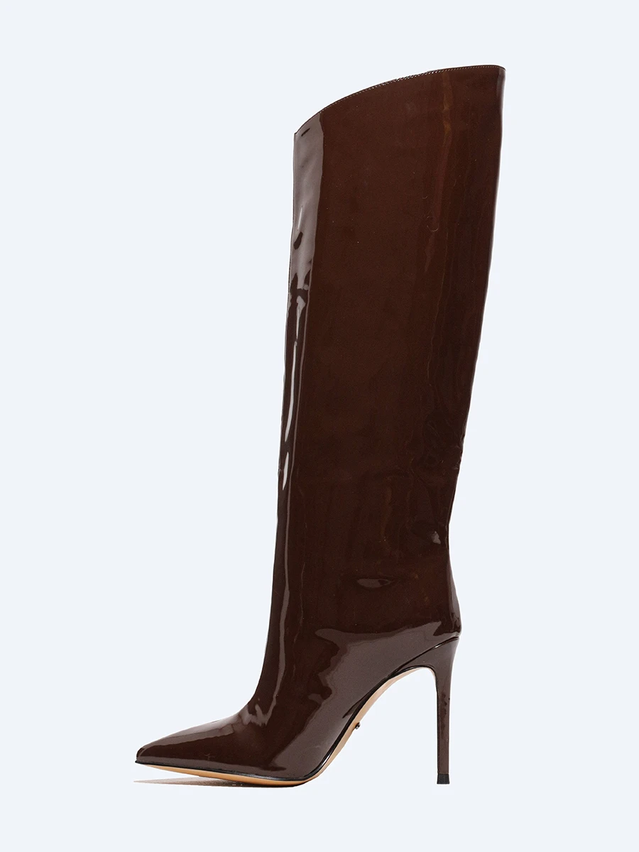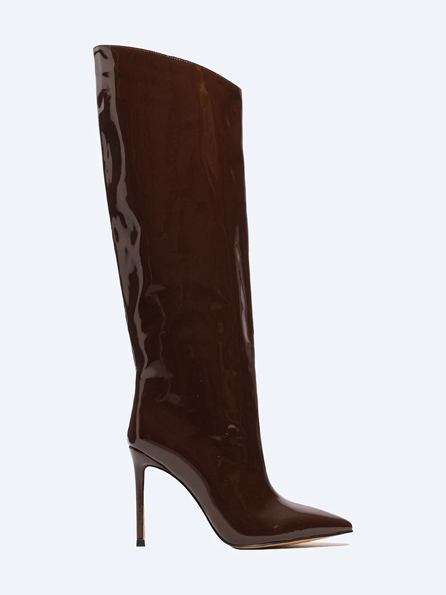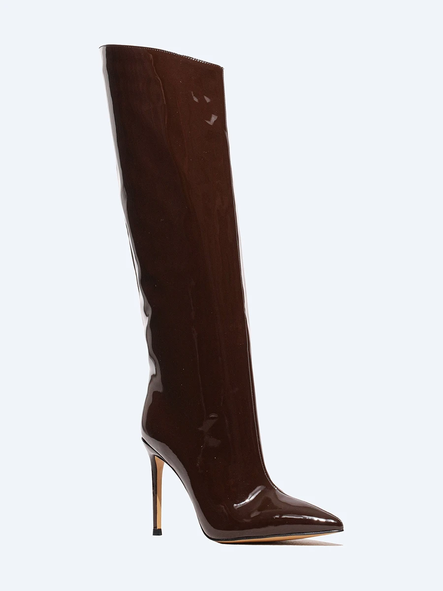 Сапоги женские демисезонные, цвет коричневый, искусственная лаковая кожа