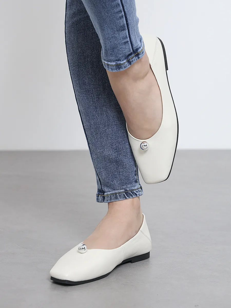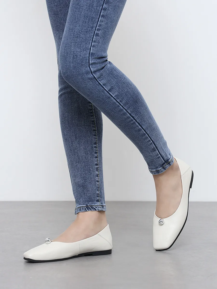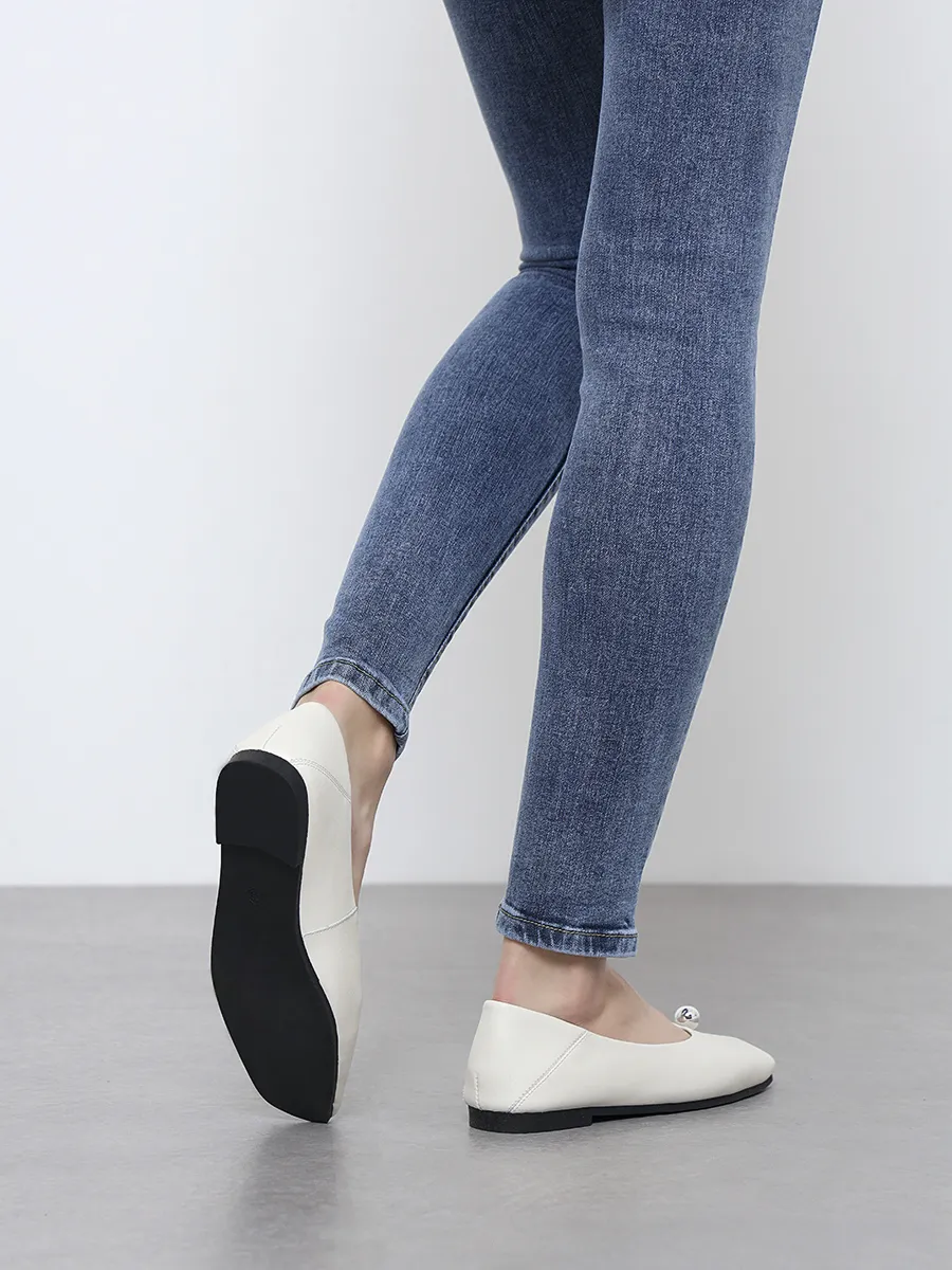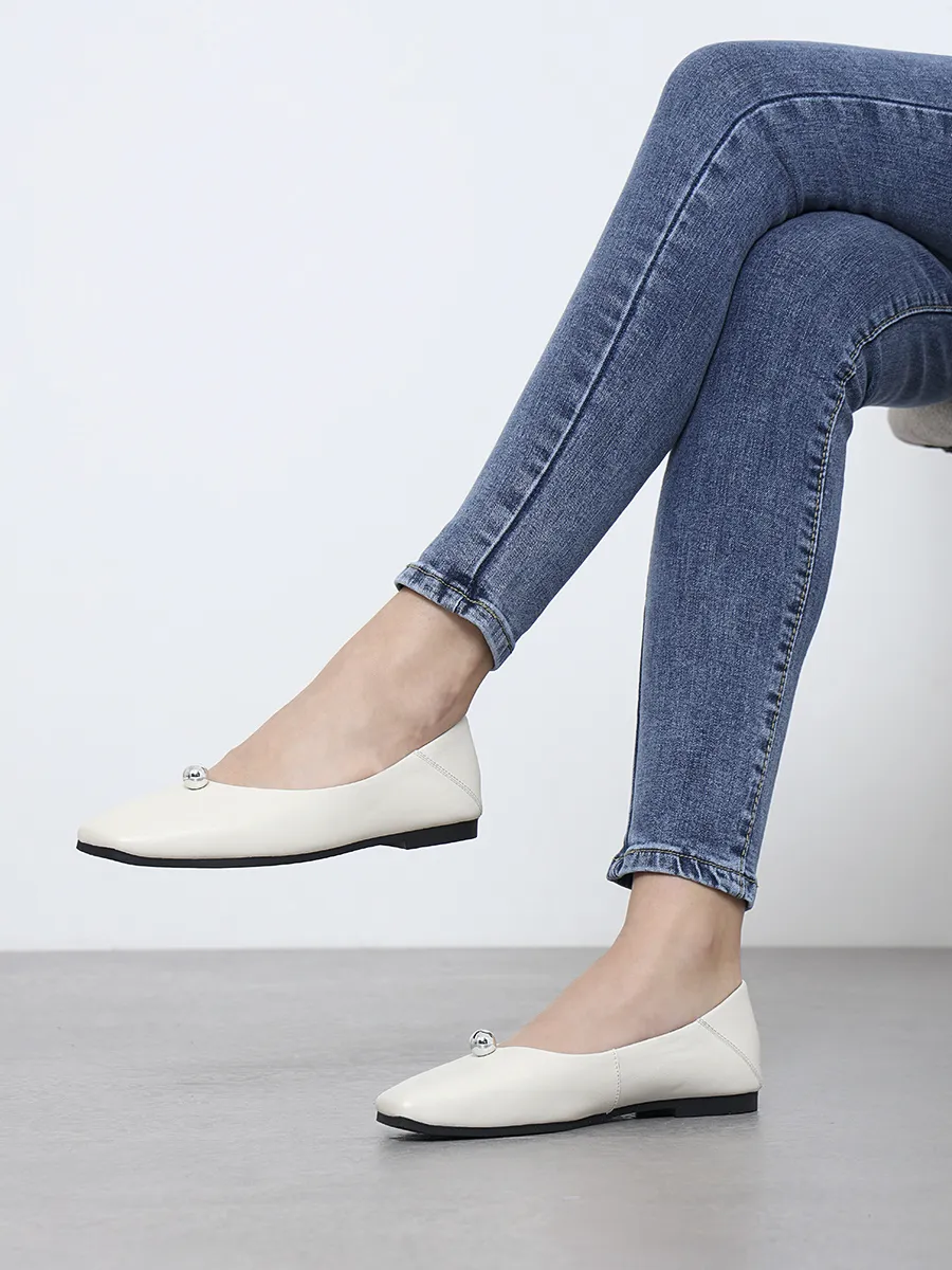 Балетки женские всесезонные, цвет молочный, натуральная кожа