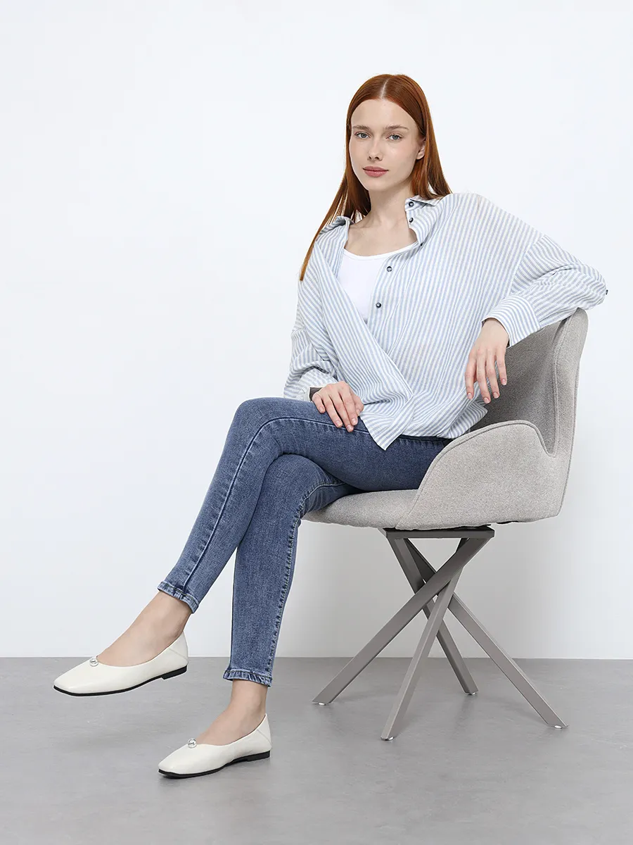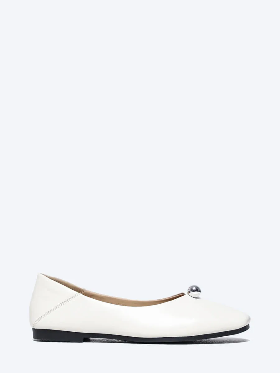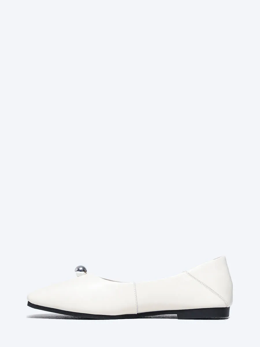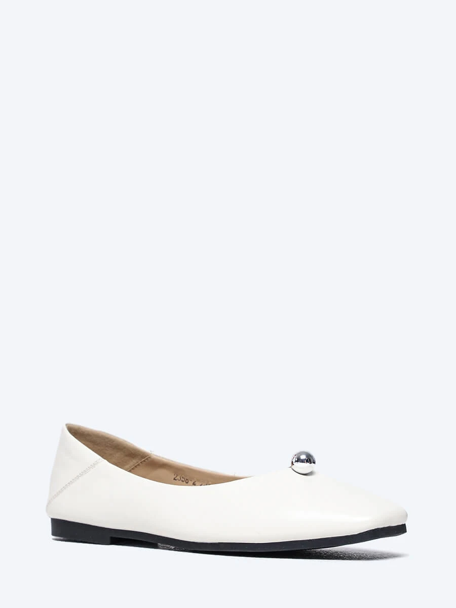 Балетки женские всесезонные, цвет молочный, натуральная кожа
