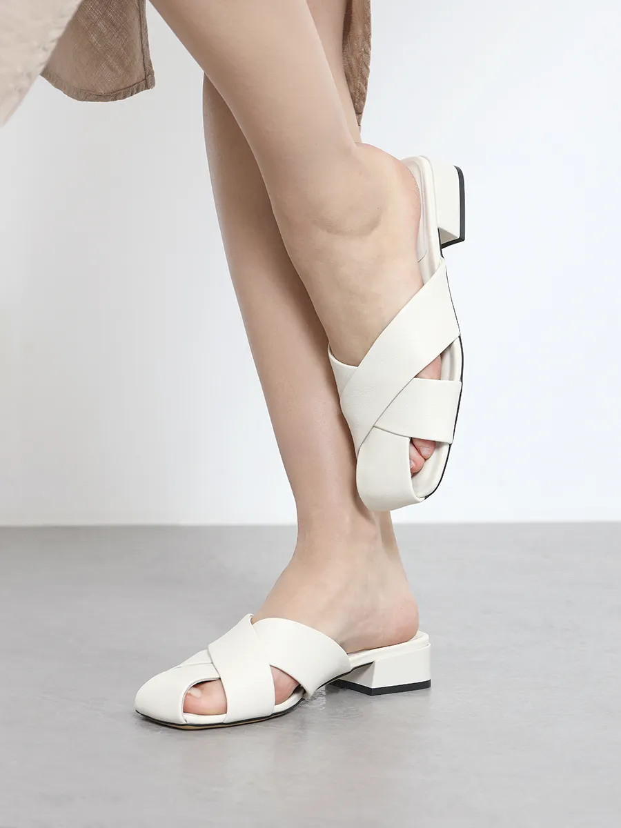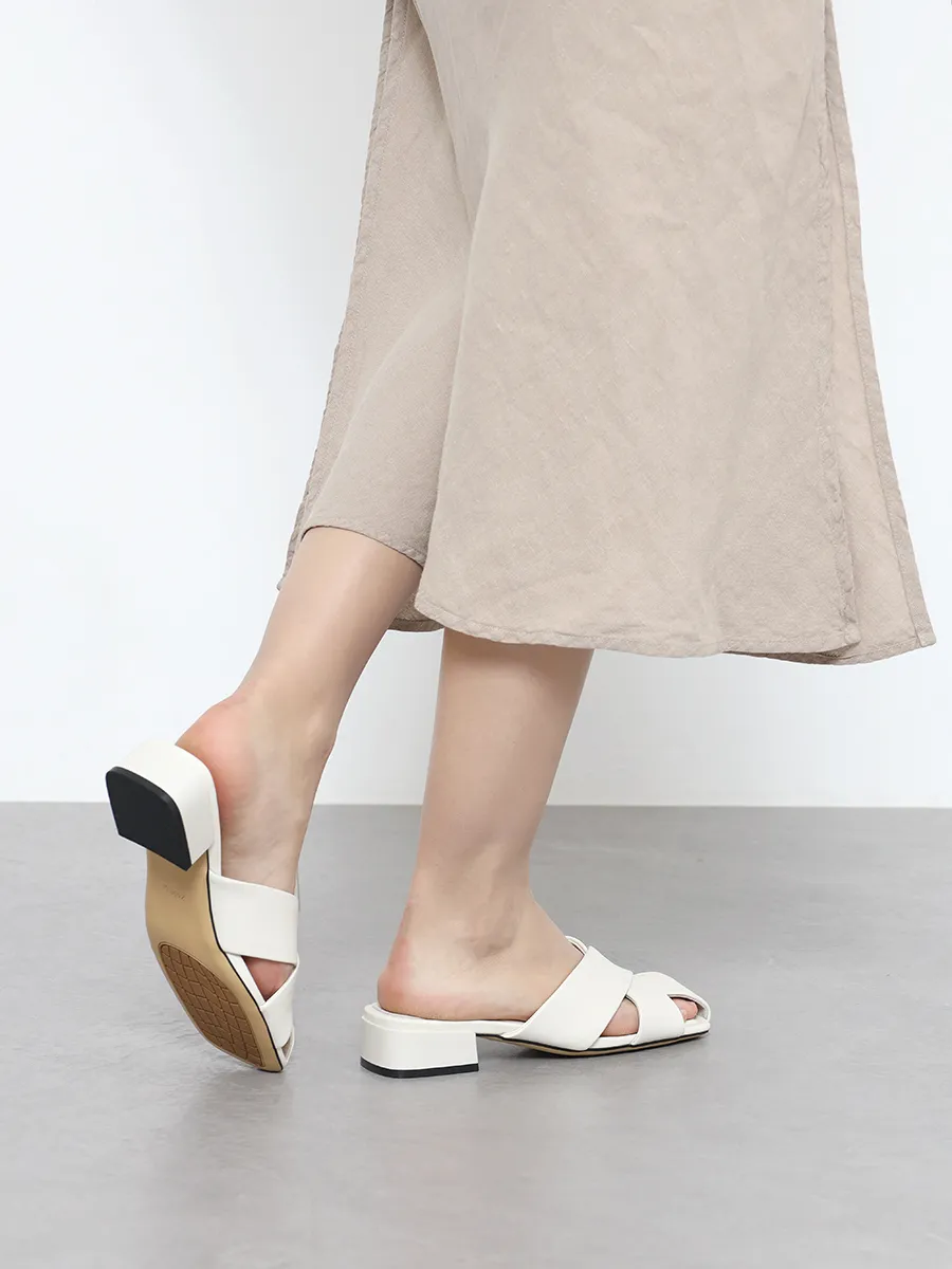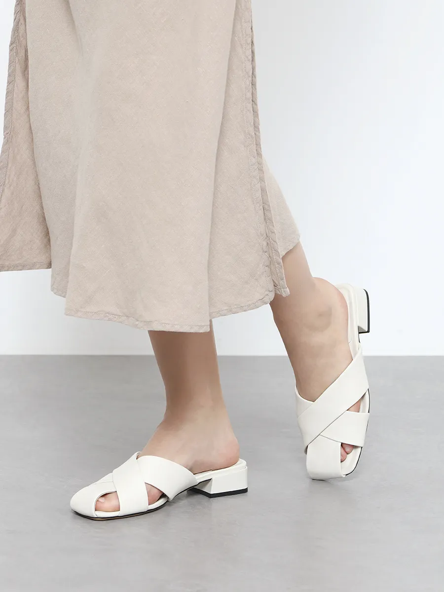 Сабо женские летние, цвет молочный, натуральная кожа и полимерные материалы