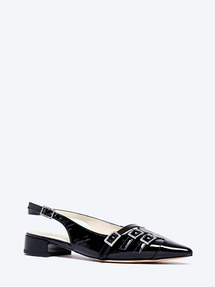 Босоножки женские летние, цвет черный, натуральная лаковая кожа
