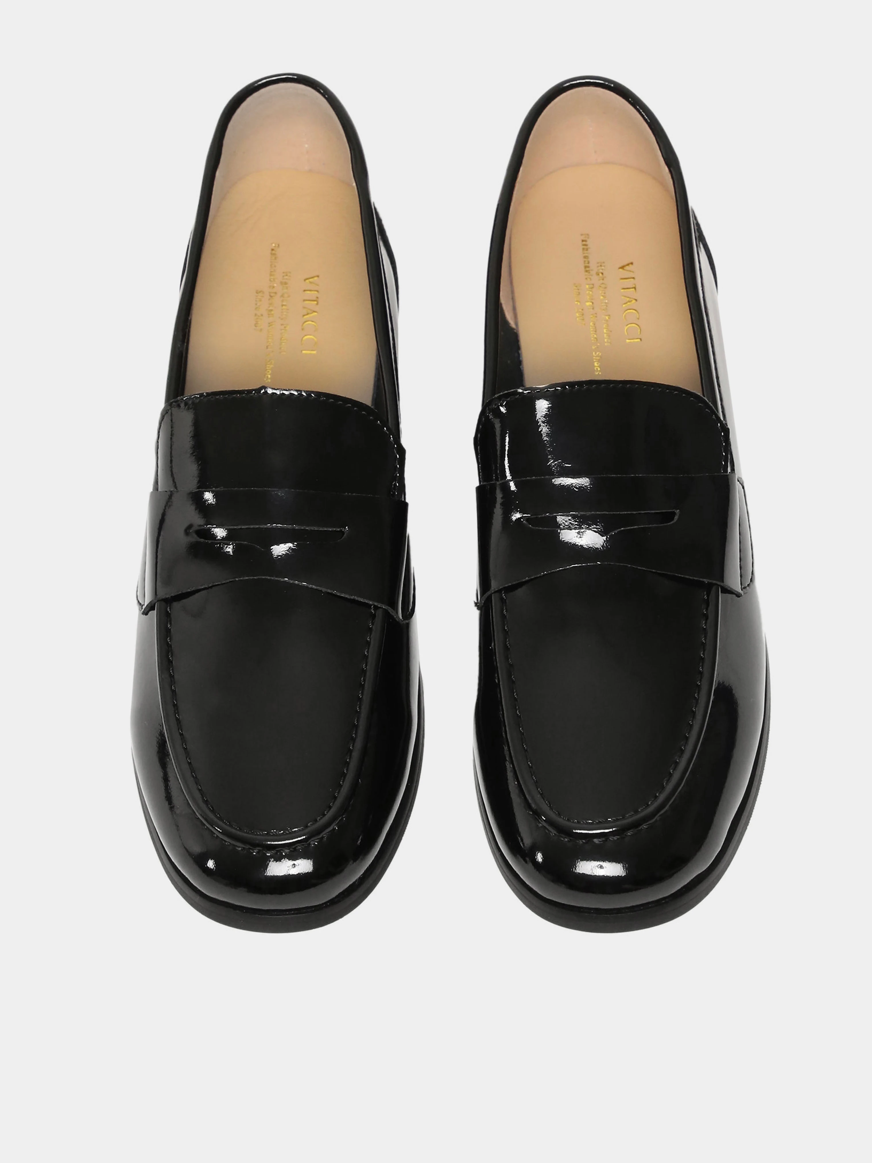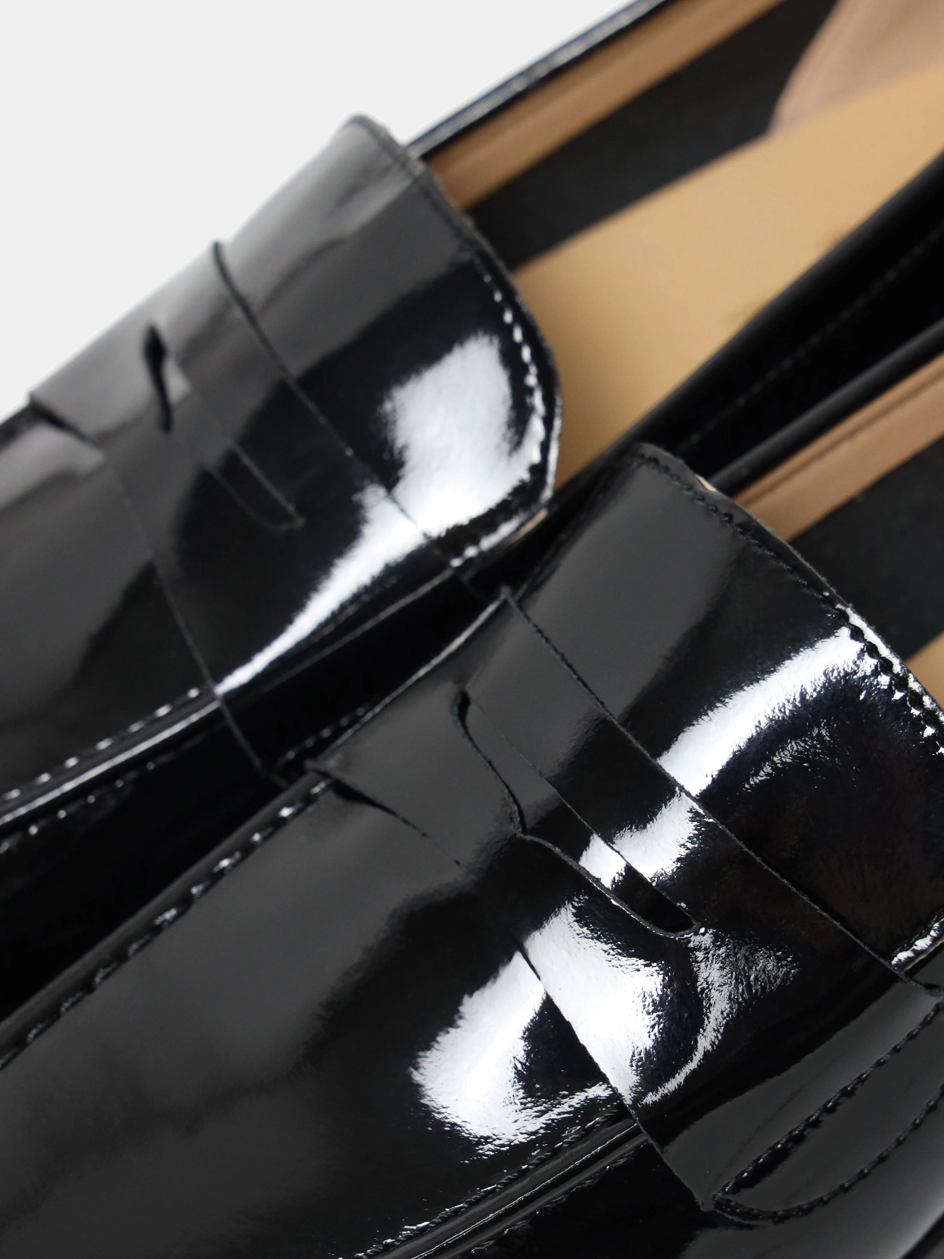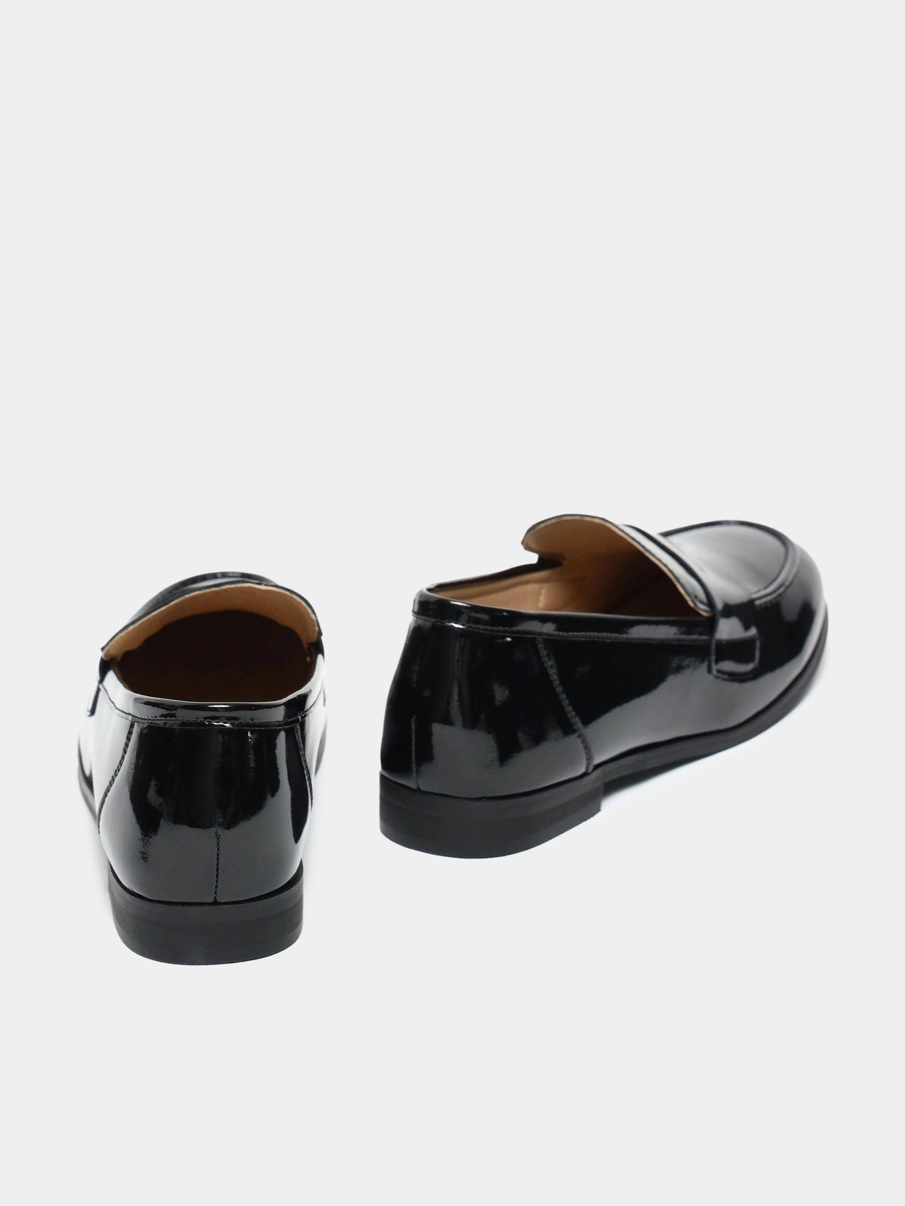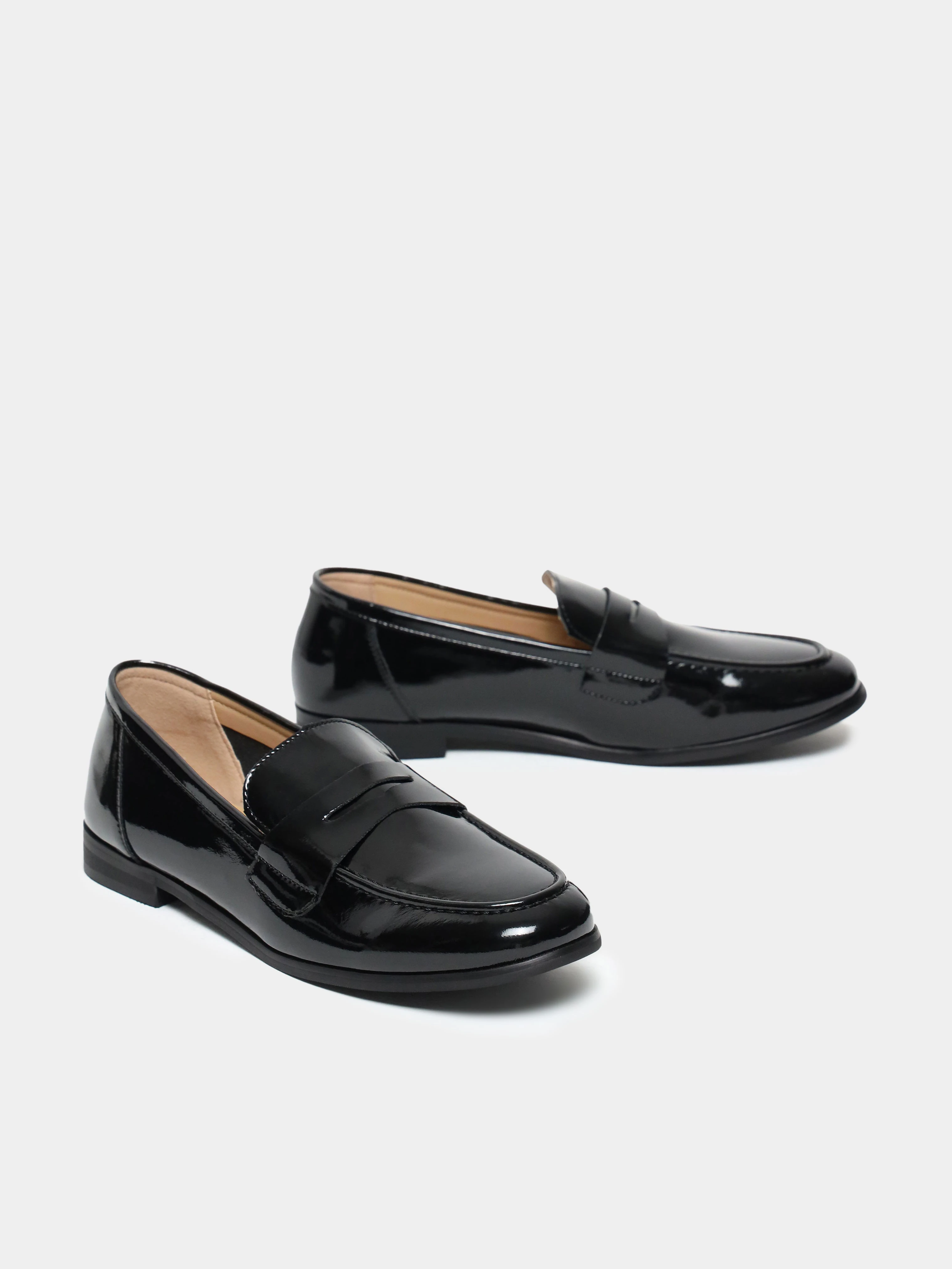 Лоферы женские всесезонные, цвет черный, искусственная лаковая кожа