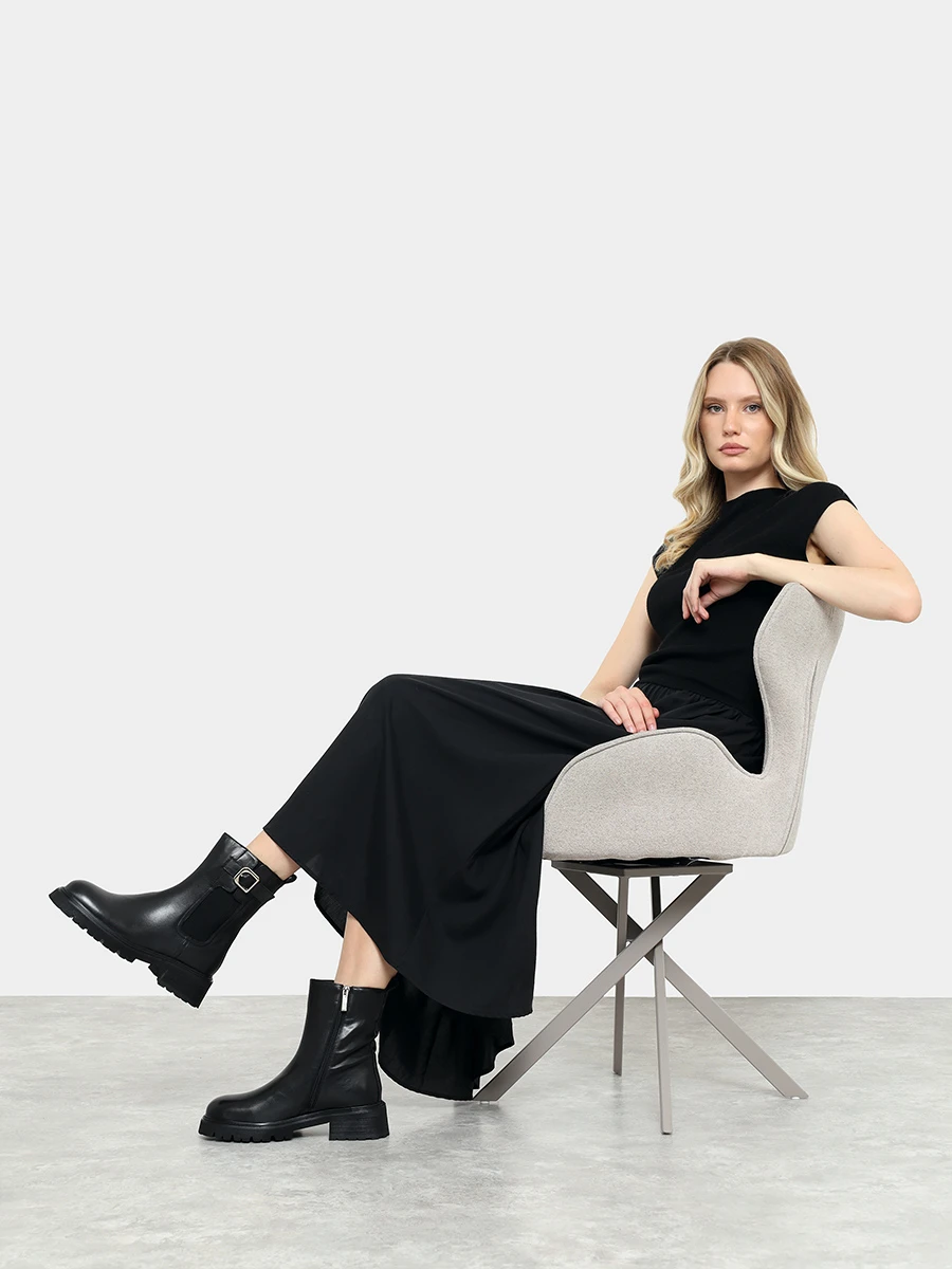 4. Как увидеть замеры изделия? При просмотре конкретной модели сапог выберите свой размер в карточке изделия и вы увидите замеры обхвата и высоты голенища.