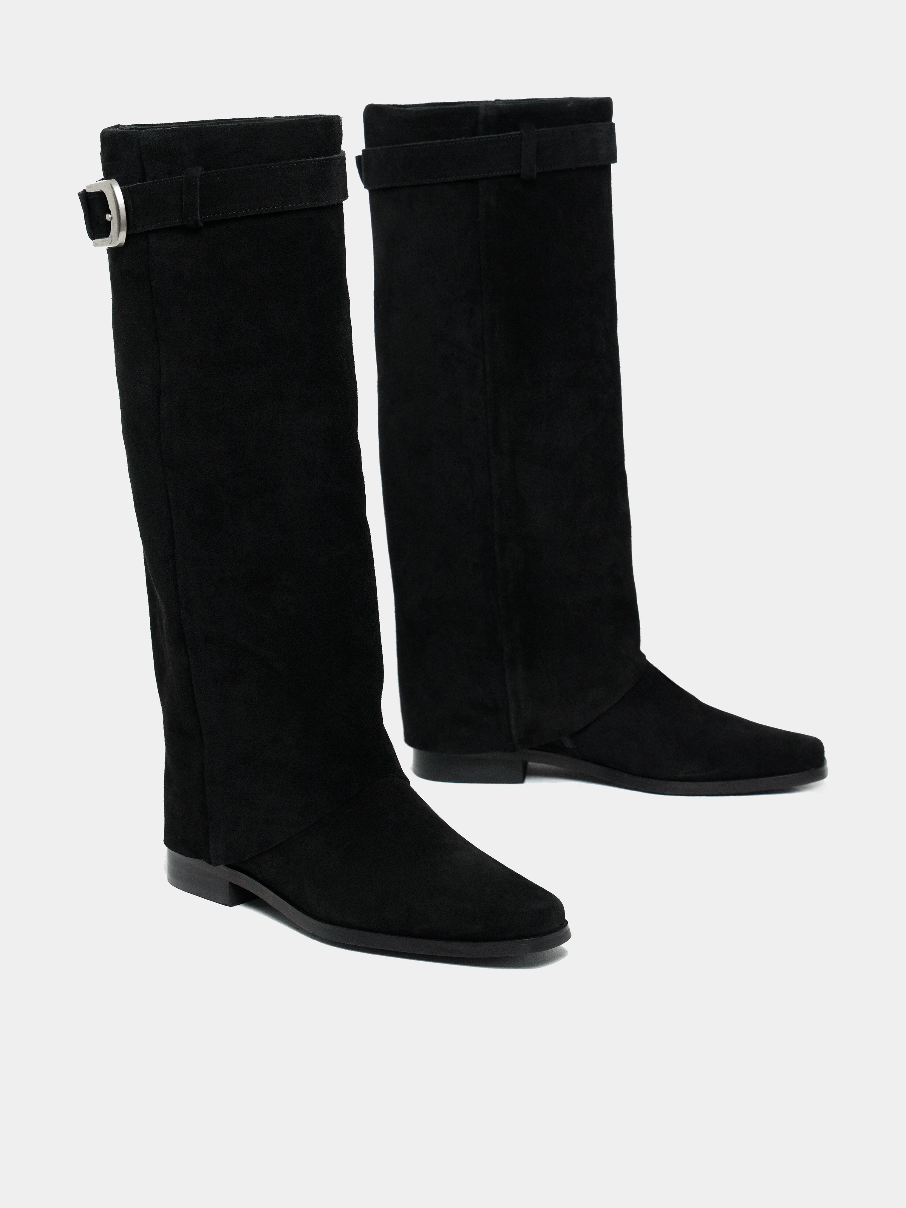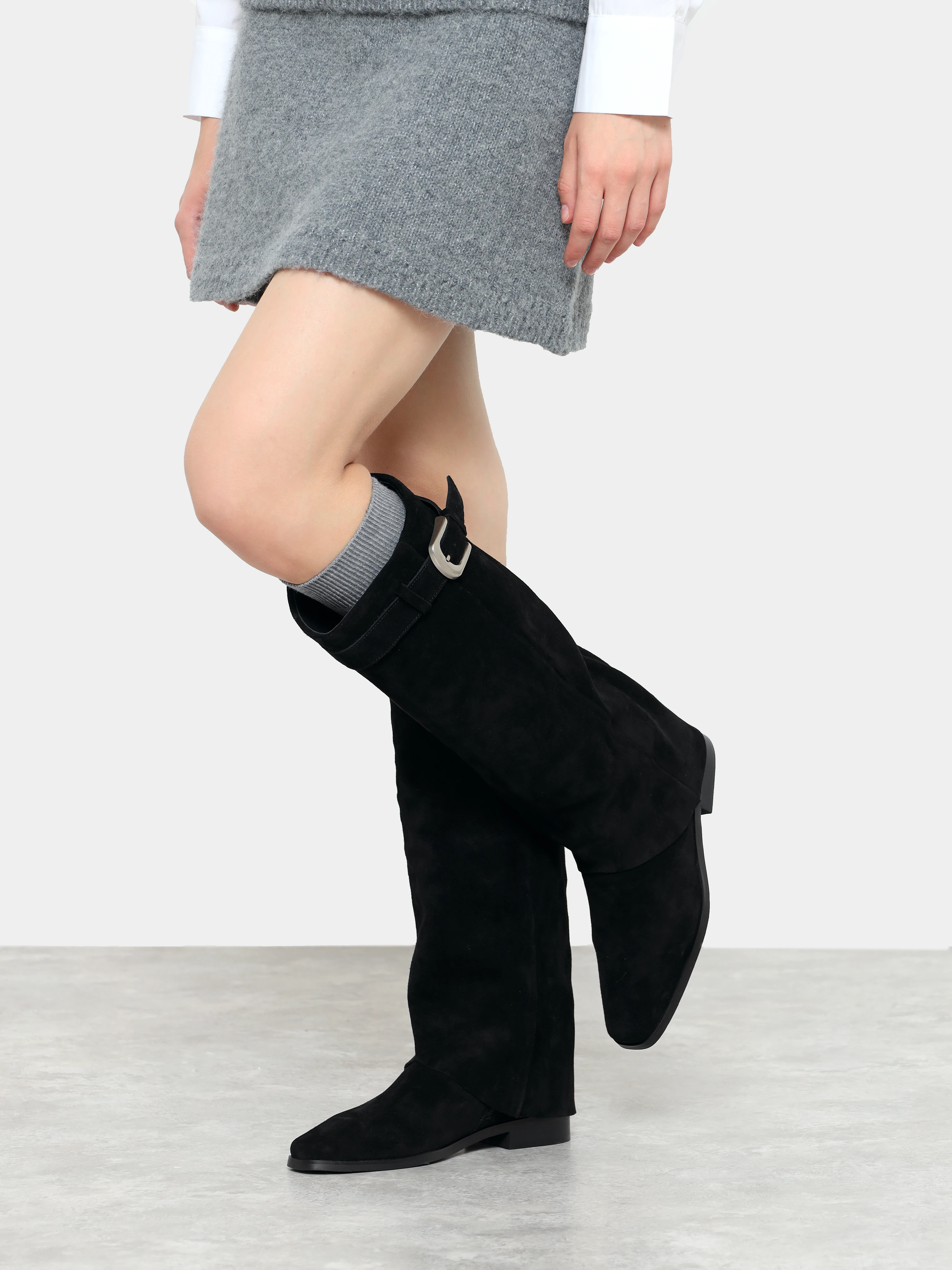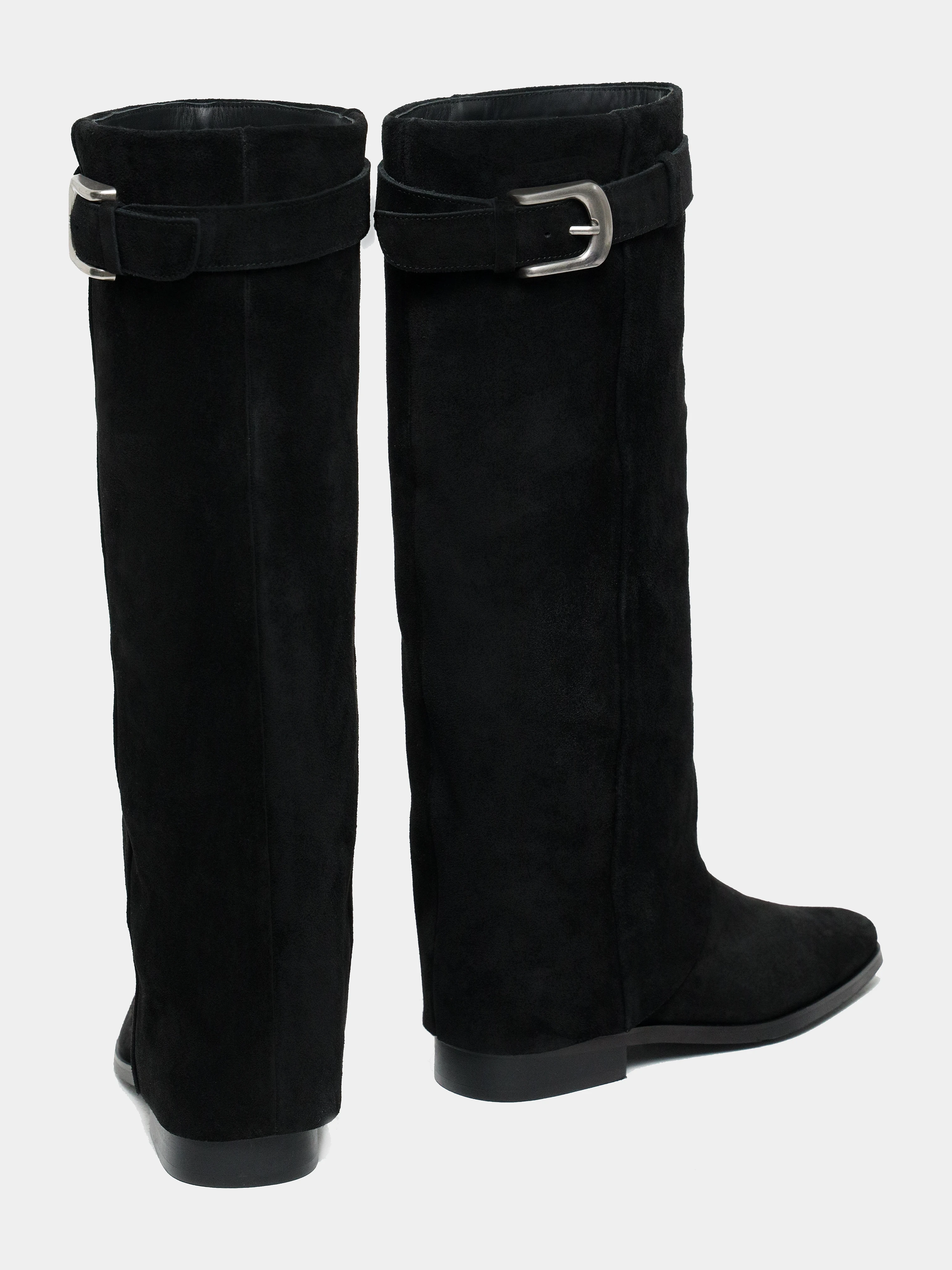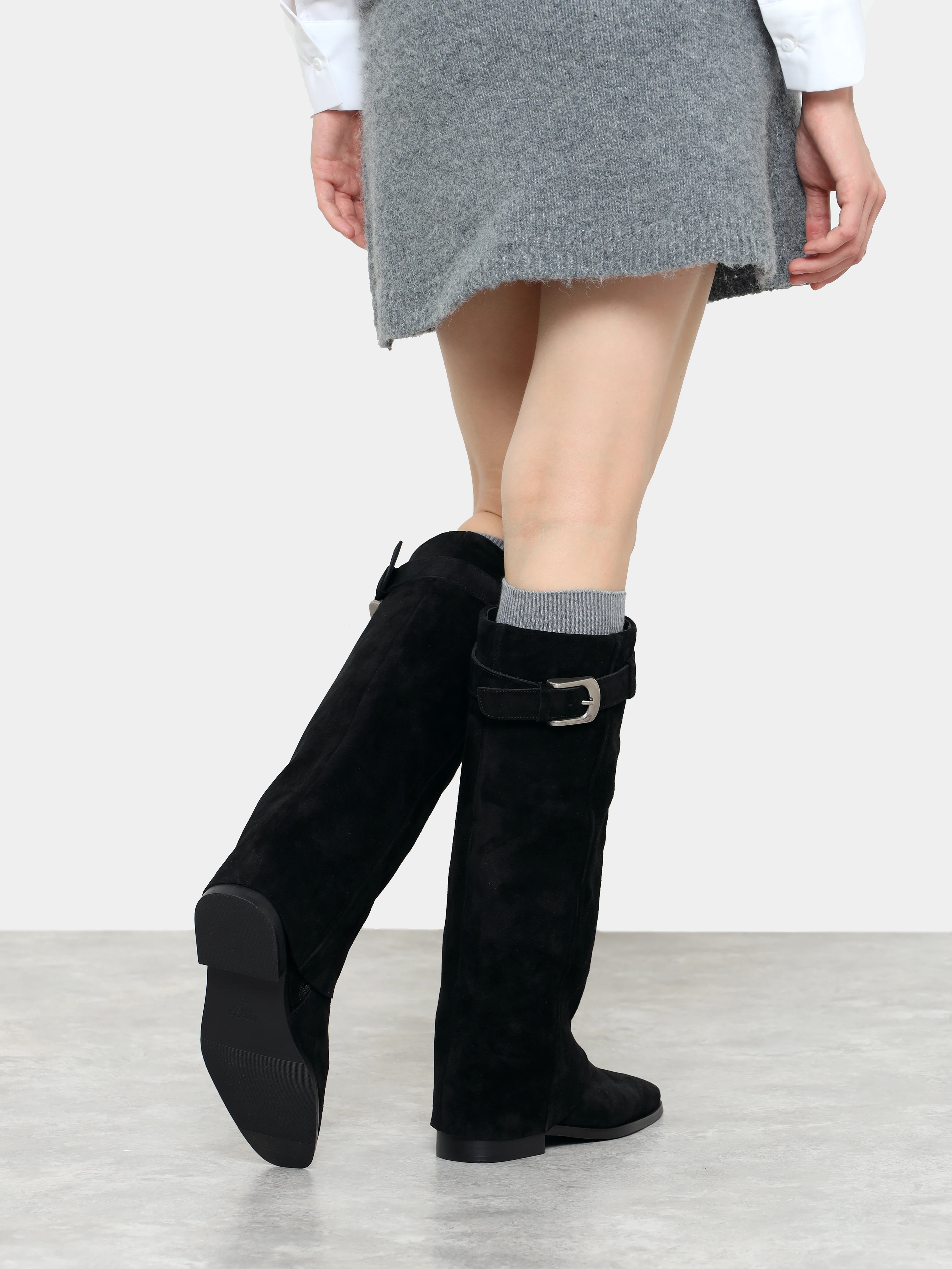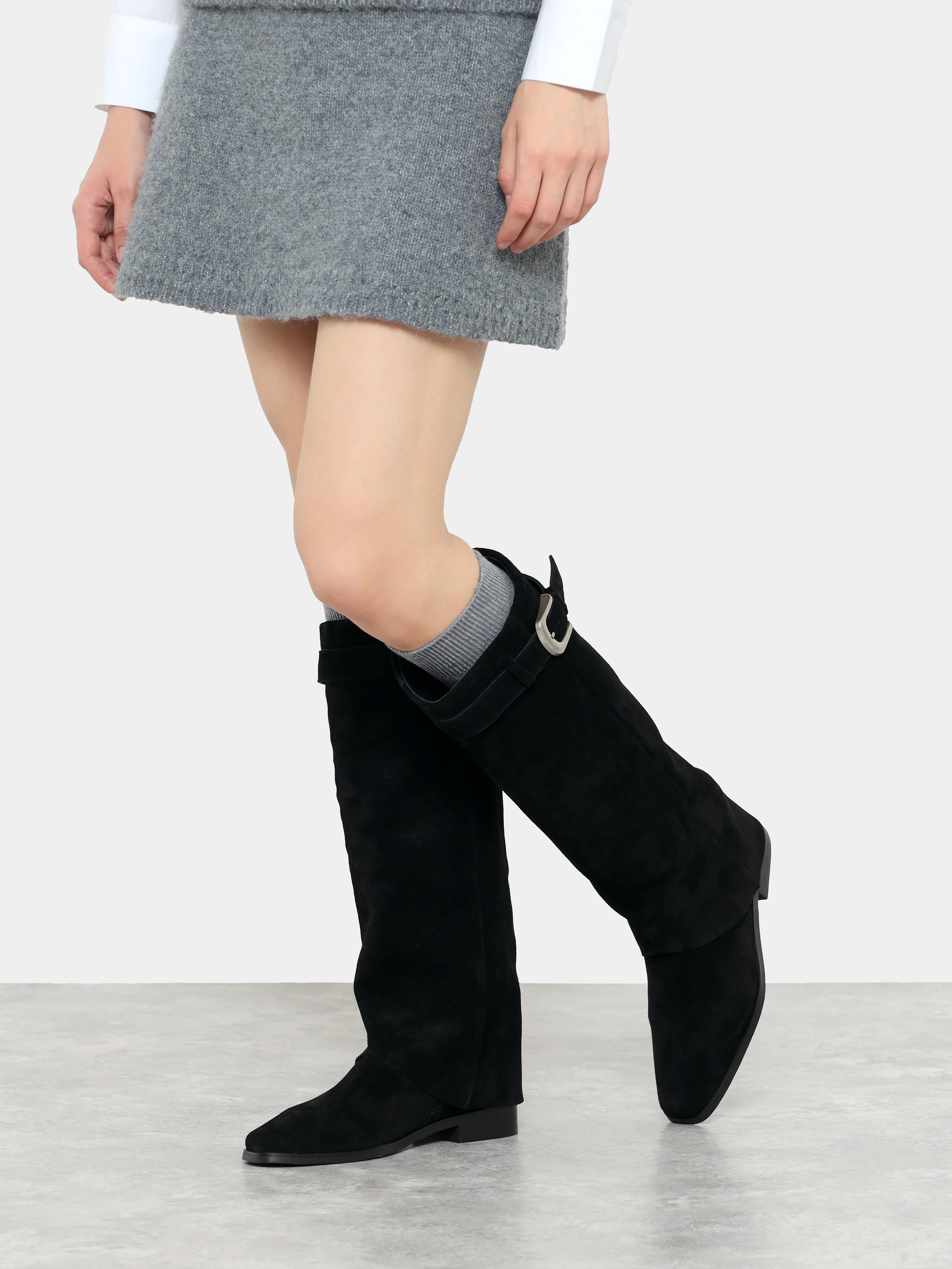 Сапоги женские демисезонные, цвет черный, натуральный спилок