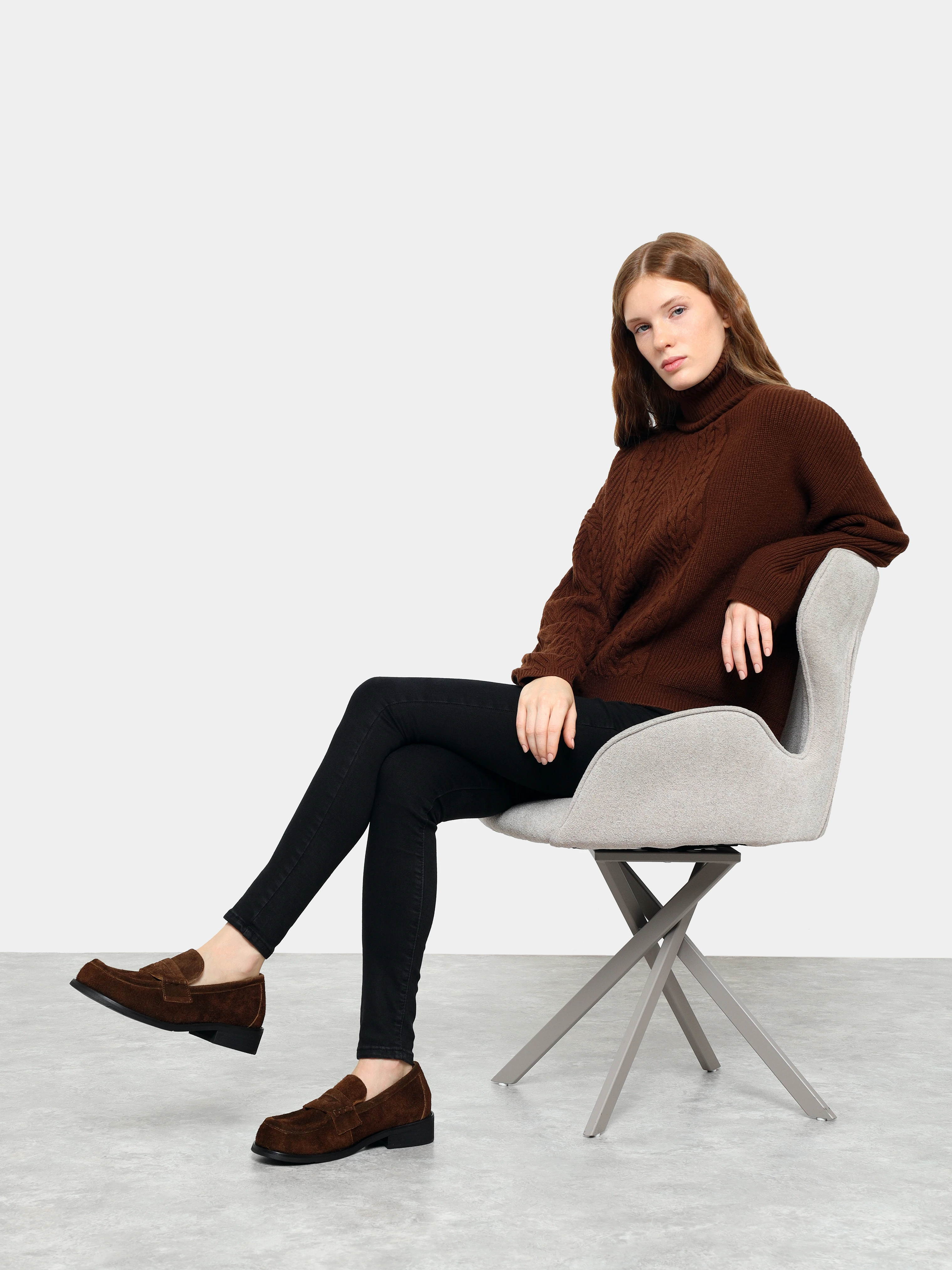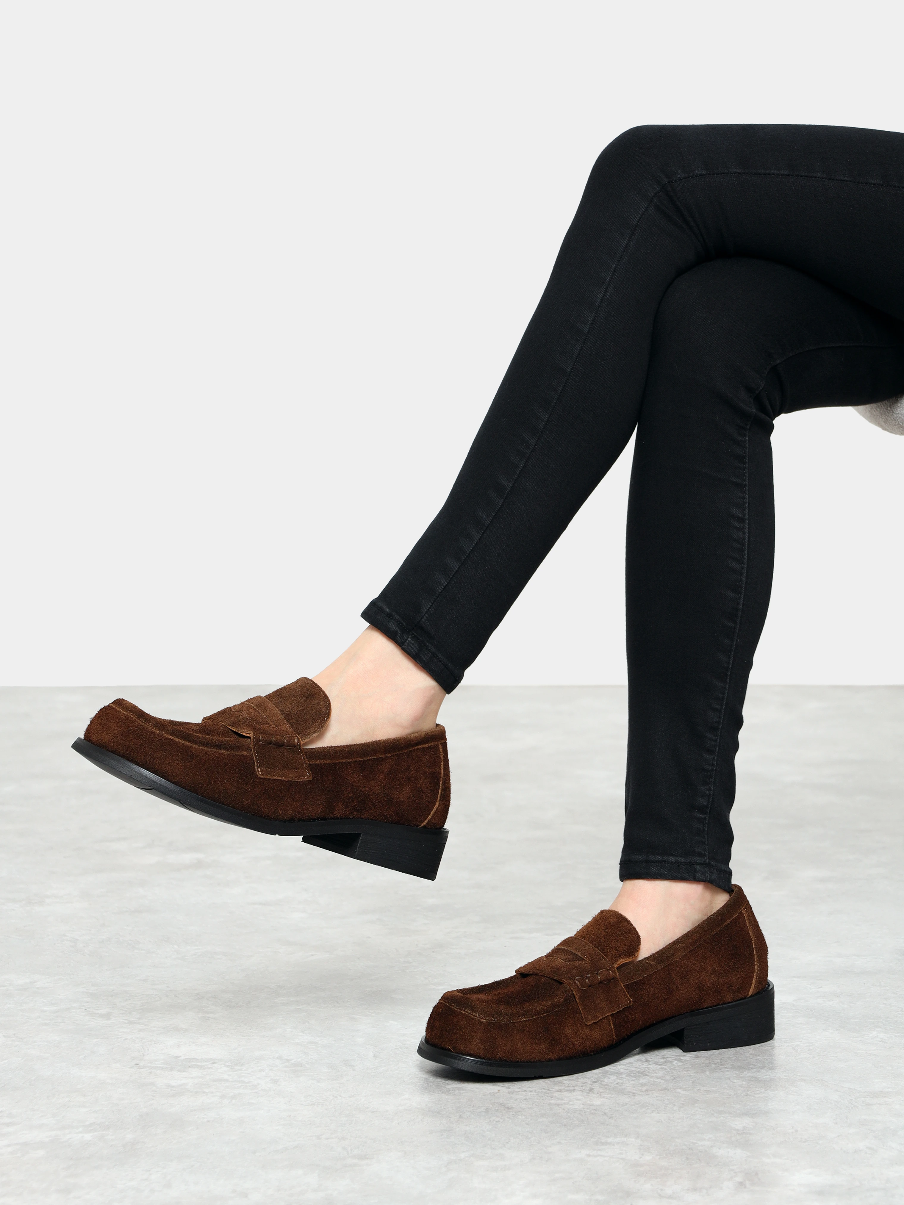 Лоферы женские всесезонные, цвет коричневый, натуральный спилок