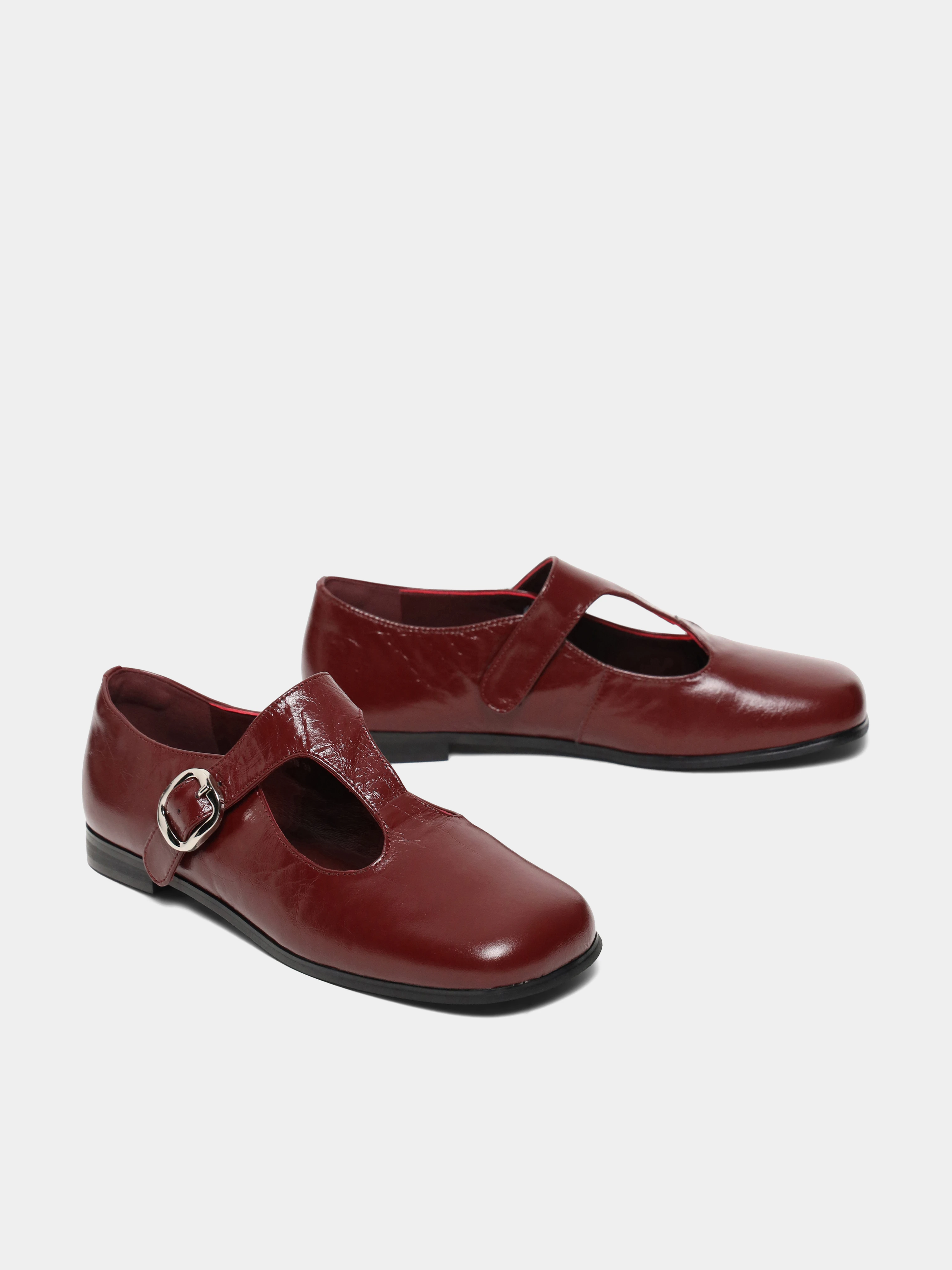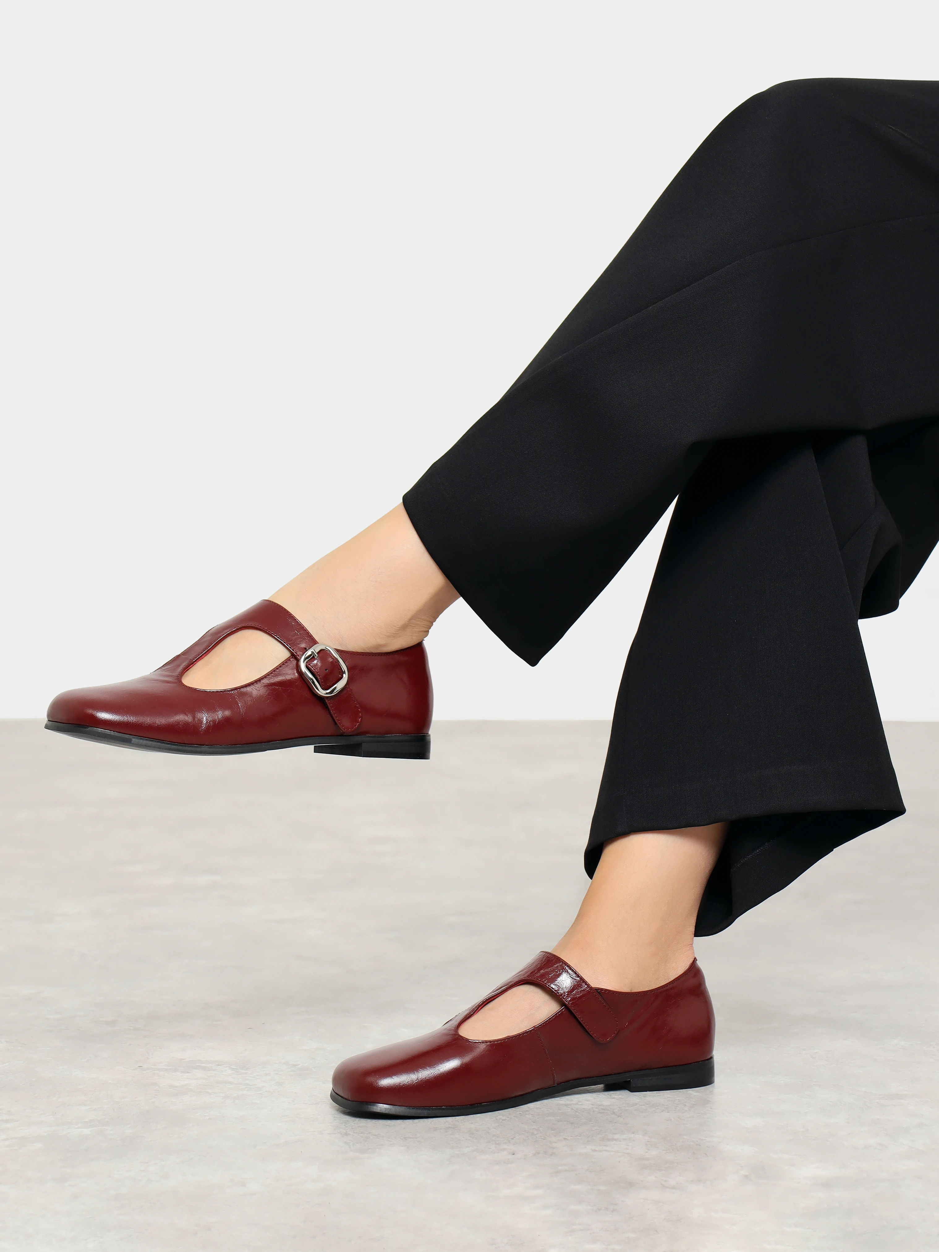 Балетки женские всесезонные, цвет бордовый, натуральная масляная кожа