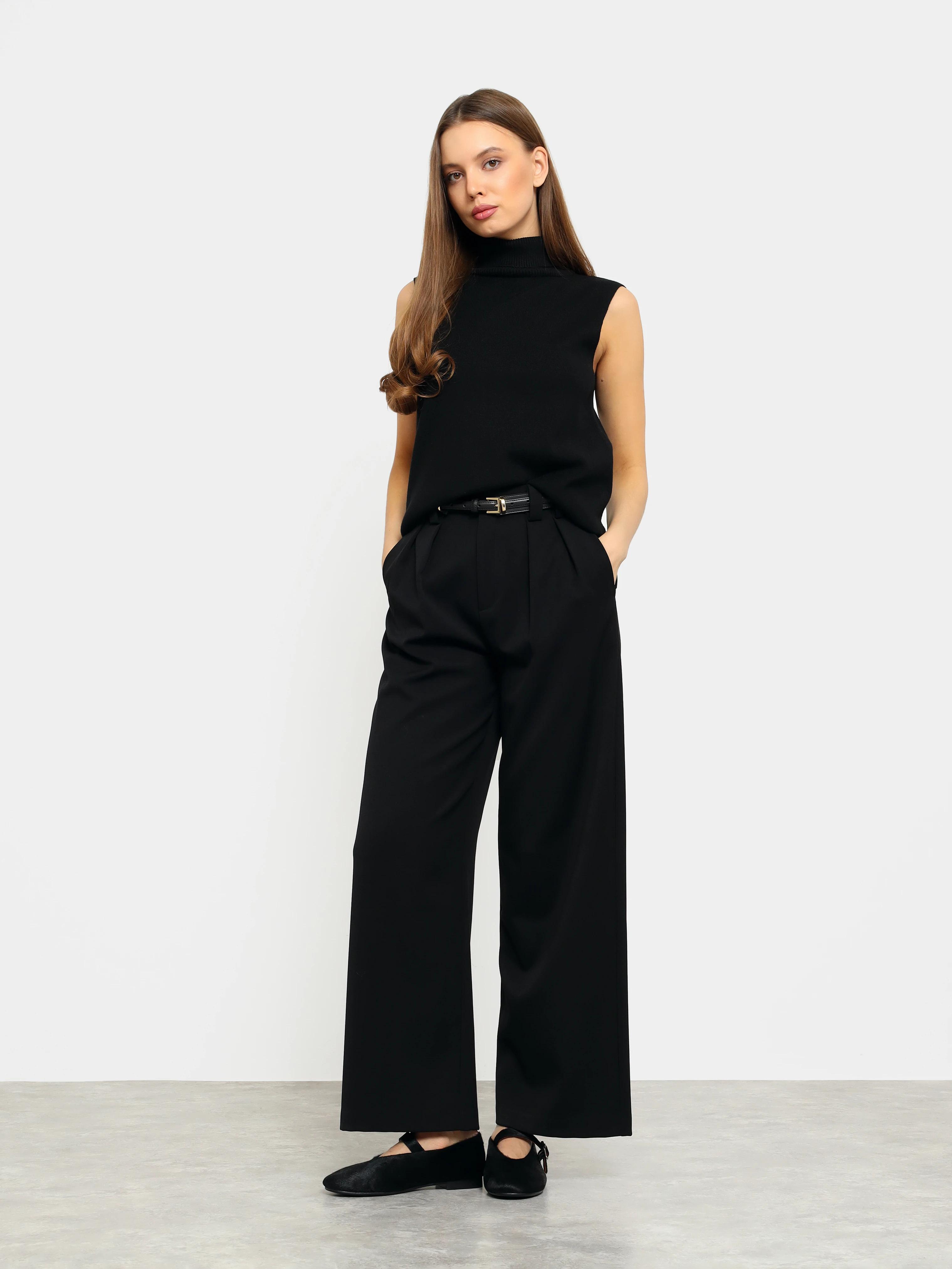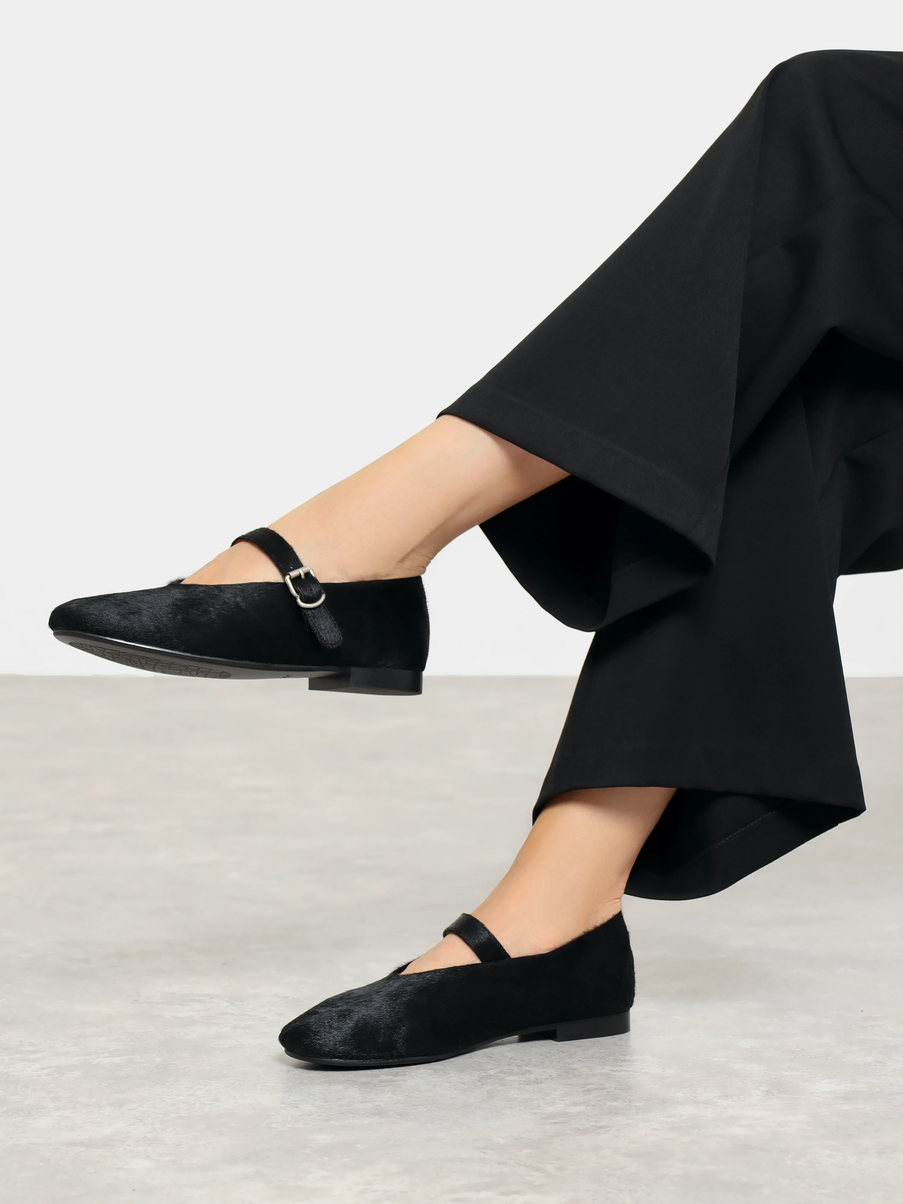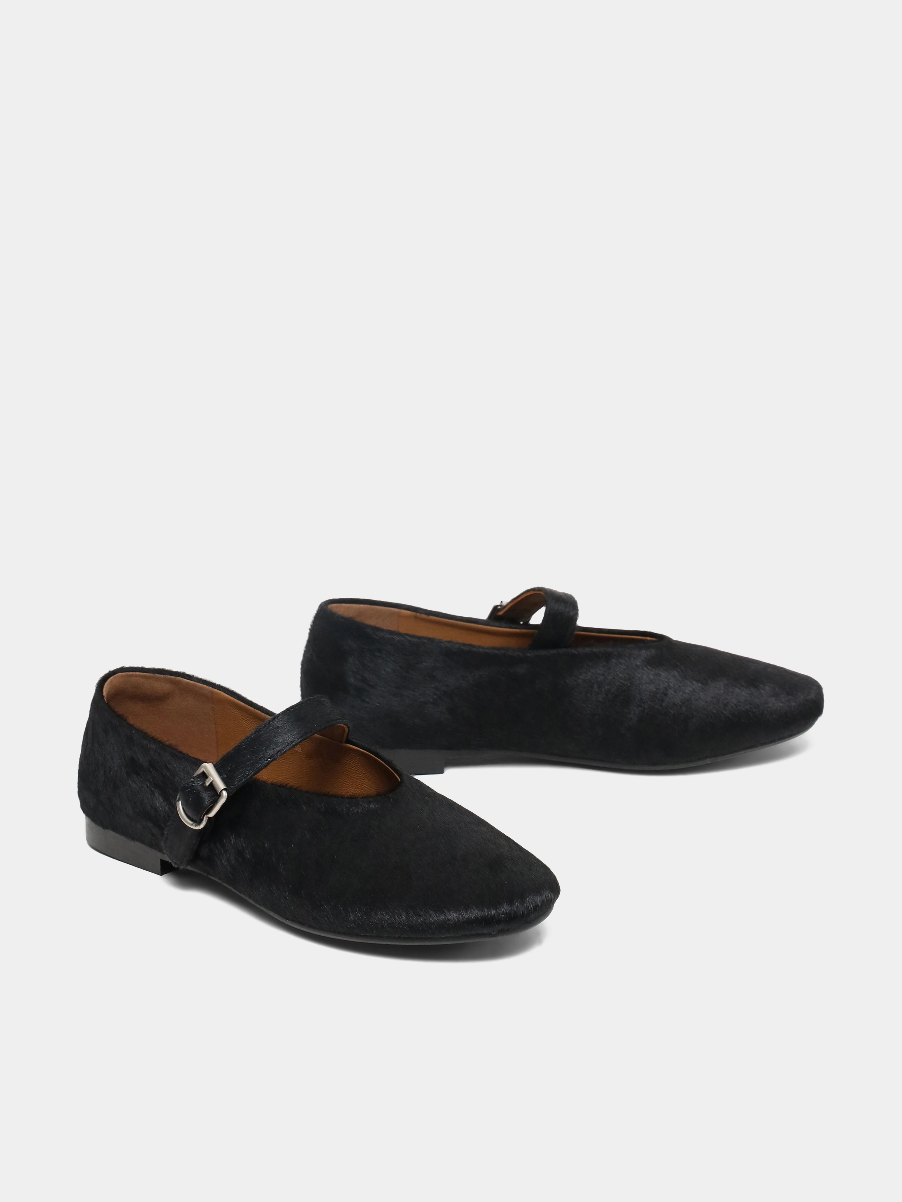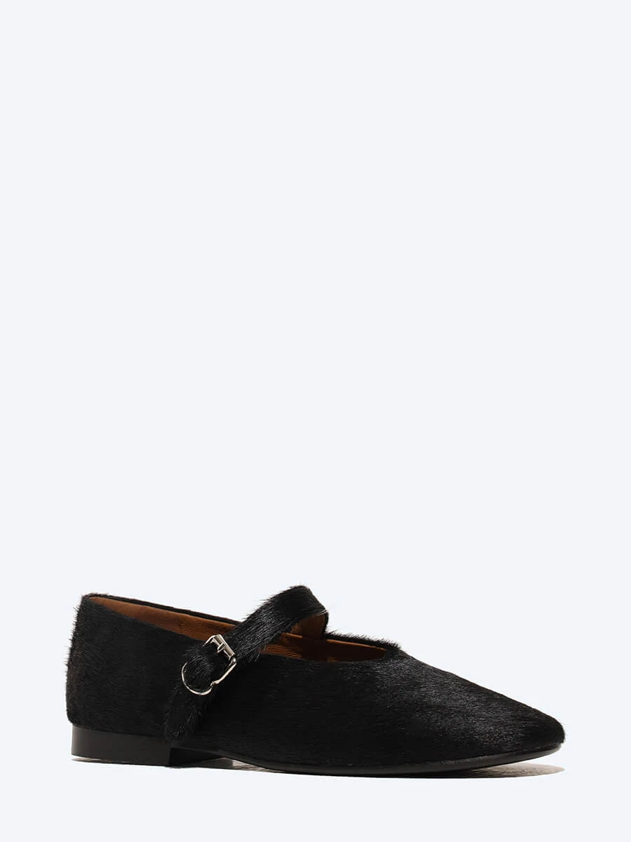 Балетки женские всесезонные, цвет черный, натуральный мех (пони)