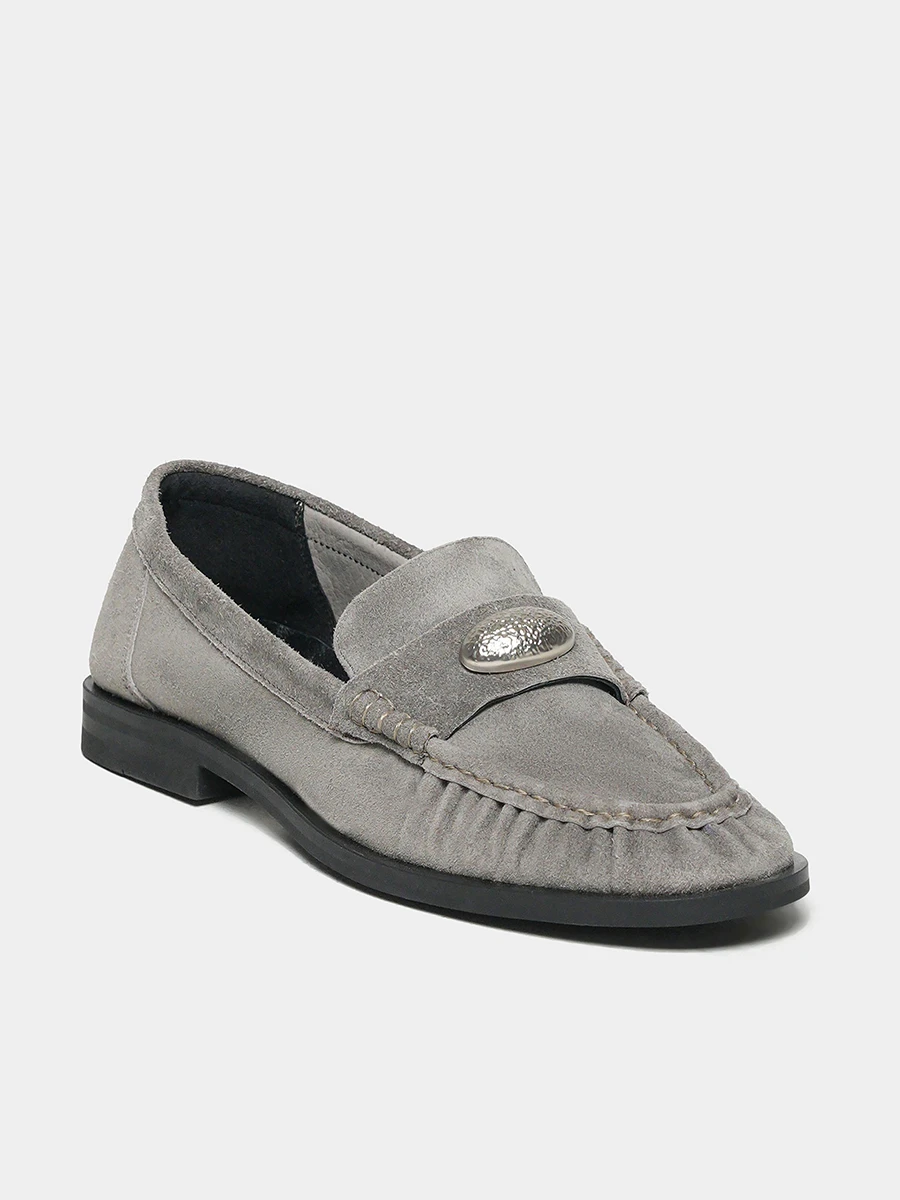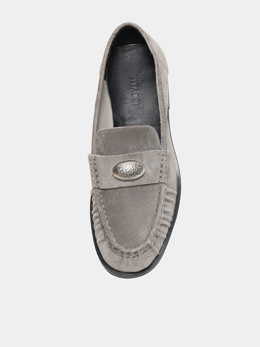Лоферы женские всесезонные, цвет серый, натуральный велюр