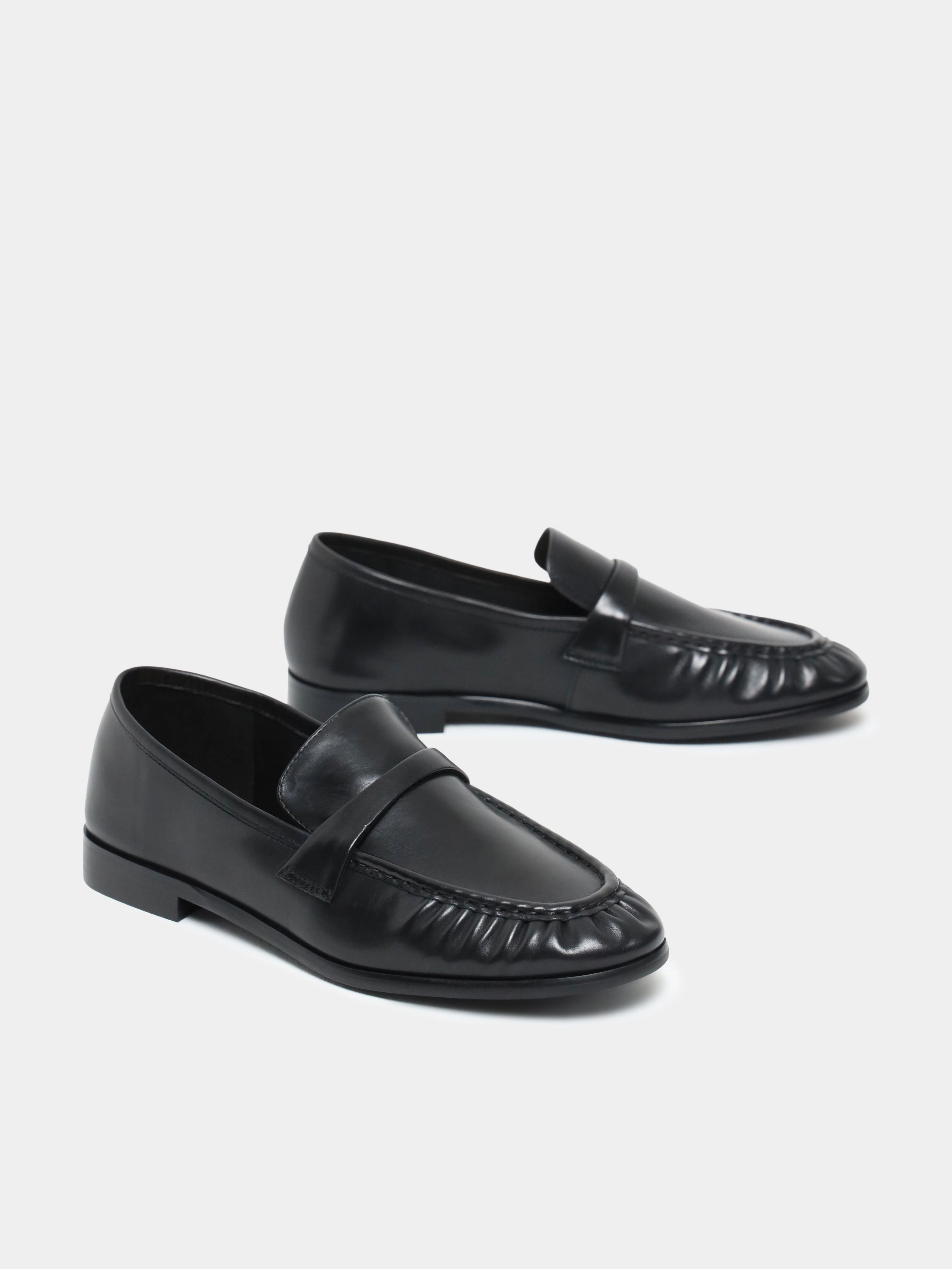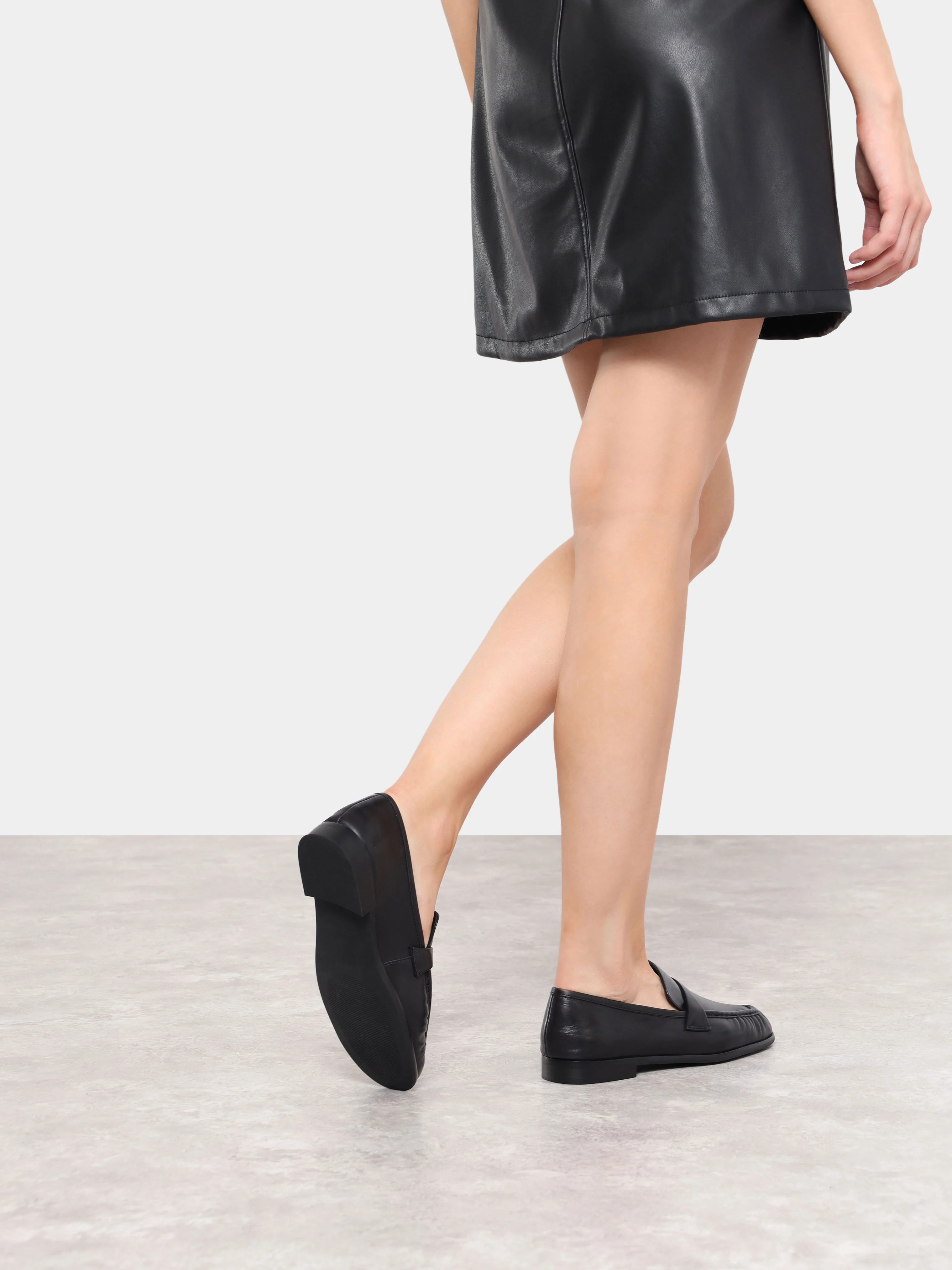 Лоферы женские всесезонные, цвет черный, натуральная кожа