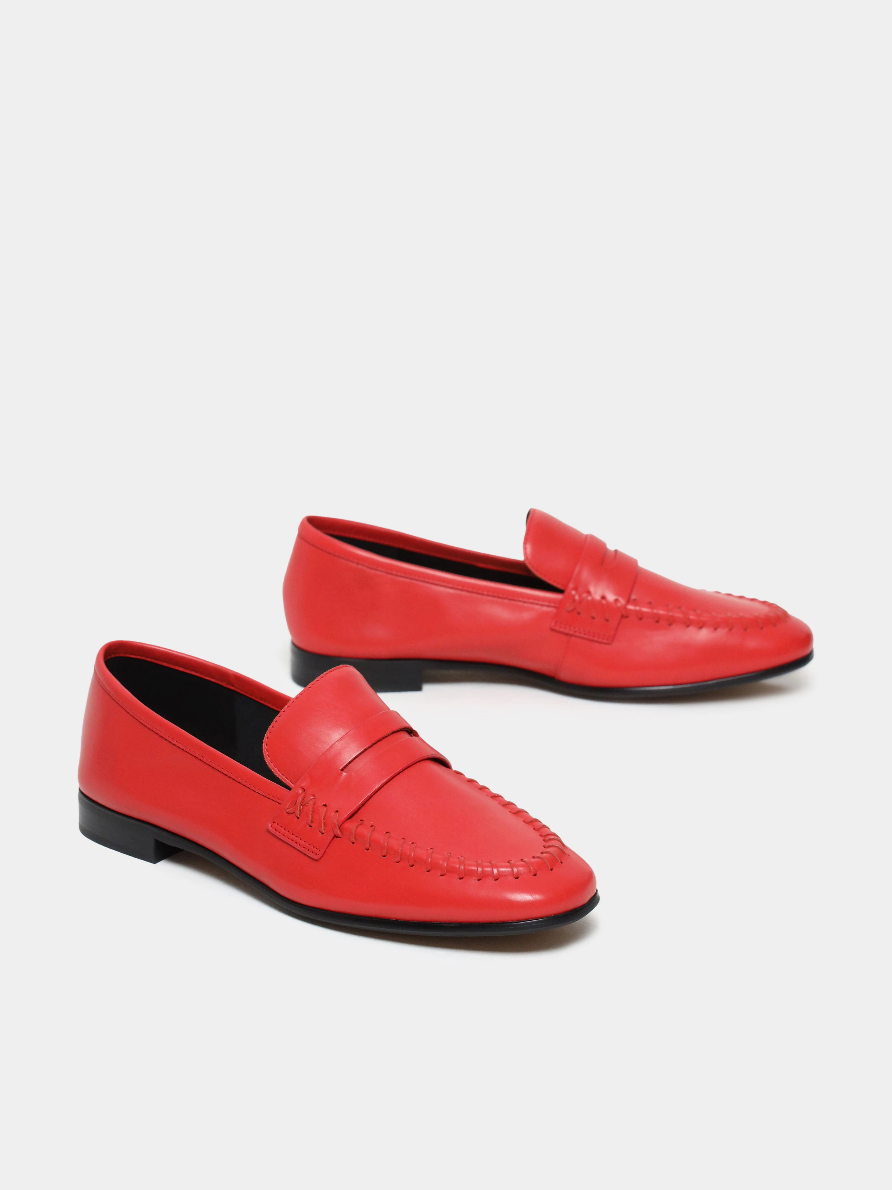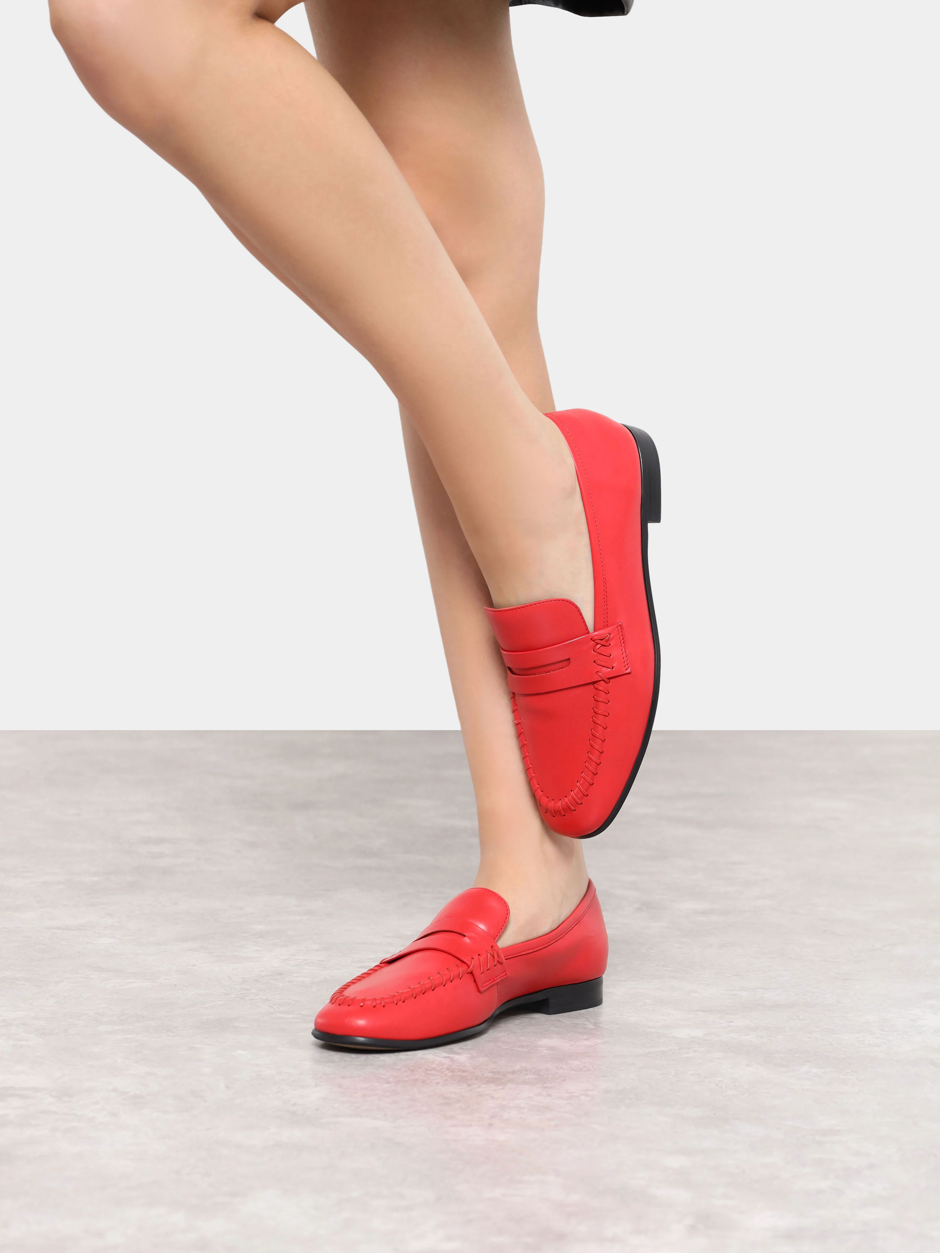 Лоферы женские всесезонные, цвет красный, натуральная кожа