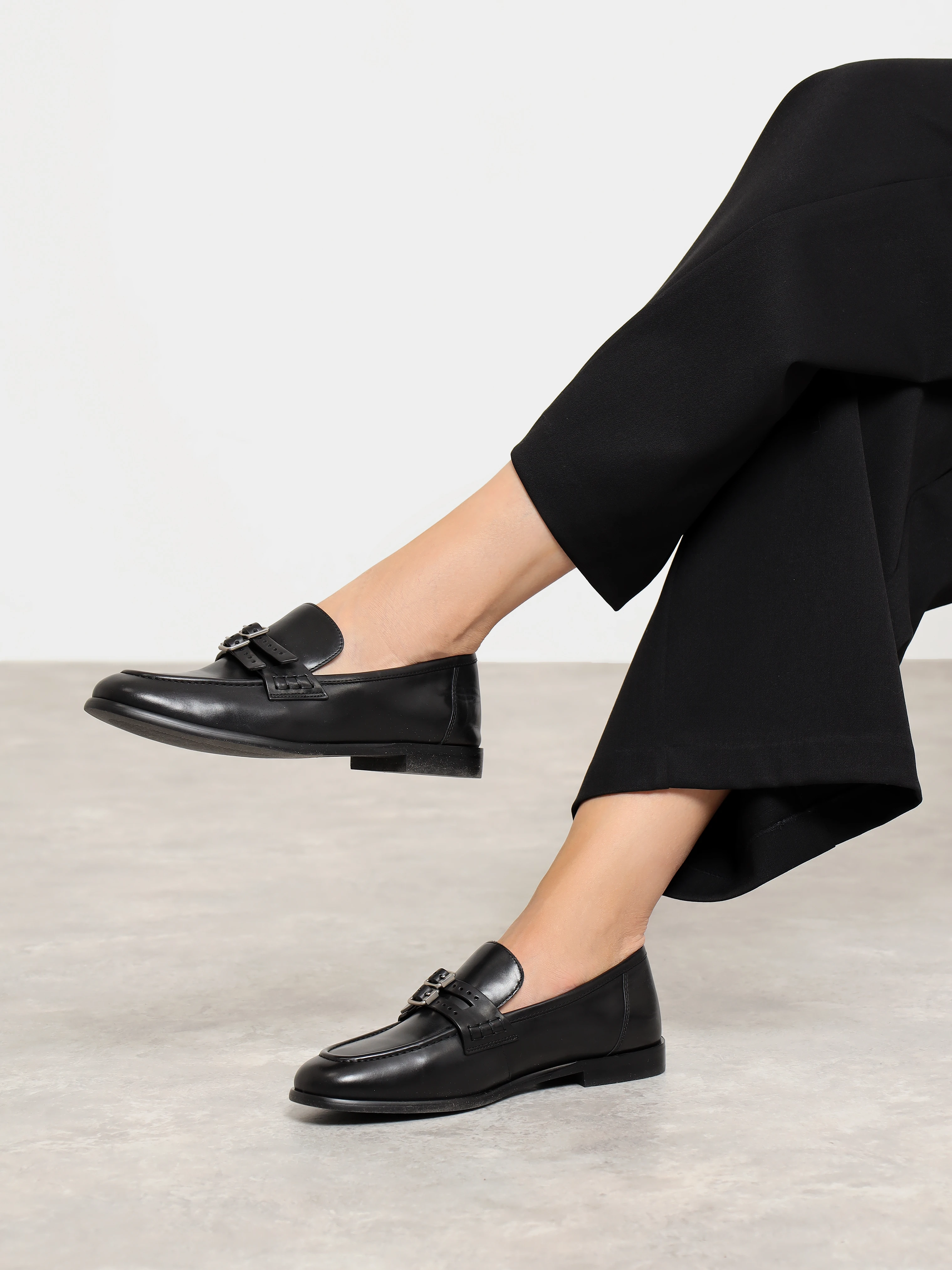 Лоферы женские всесезонные, цвет черный, натуральная кожа