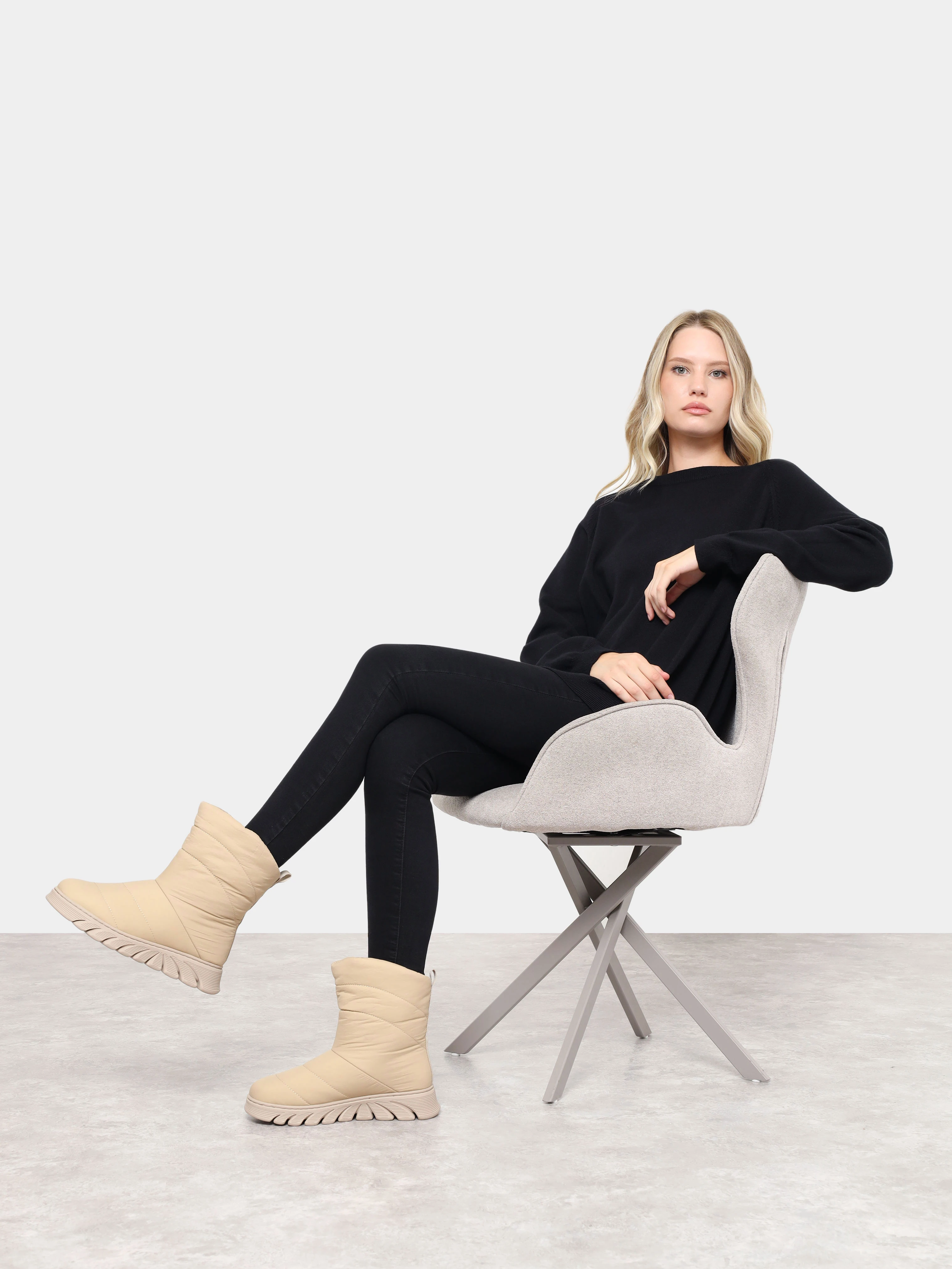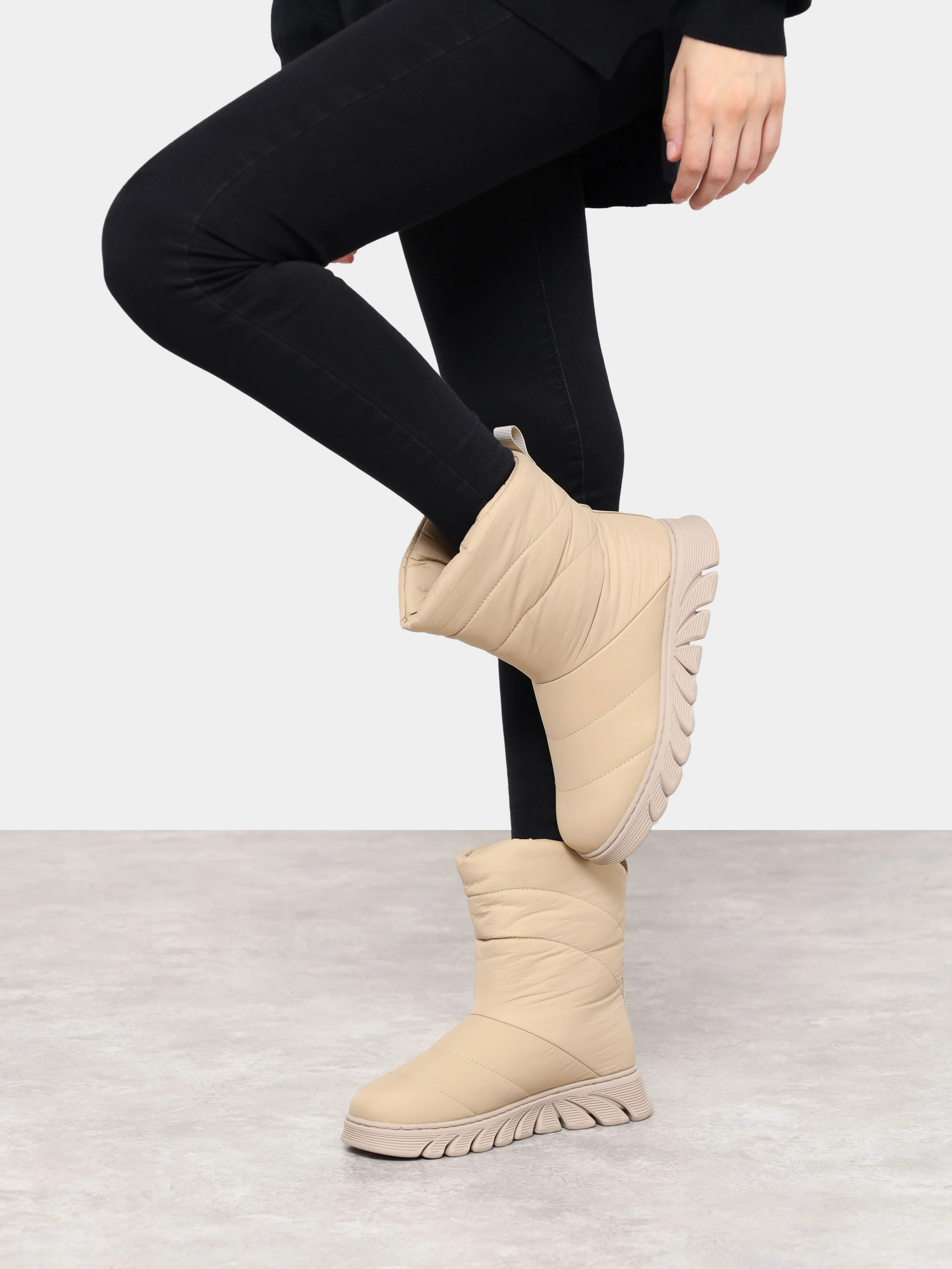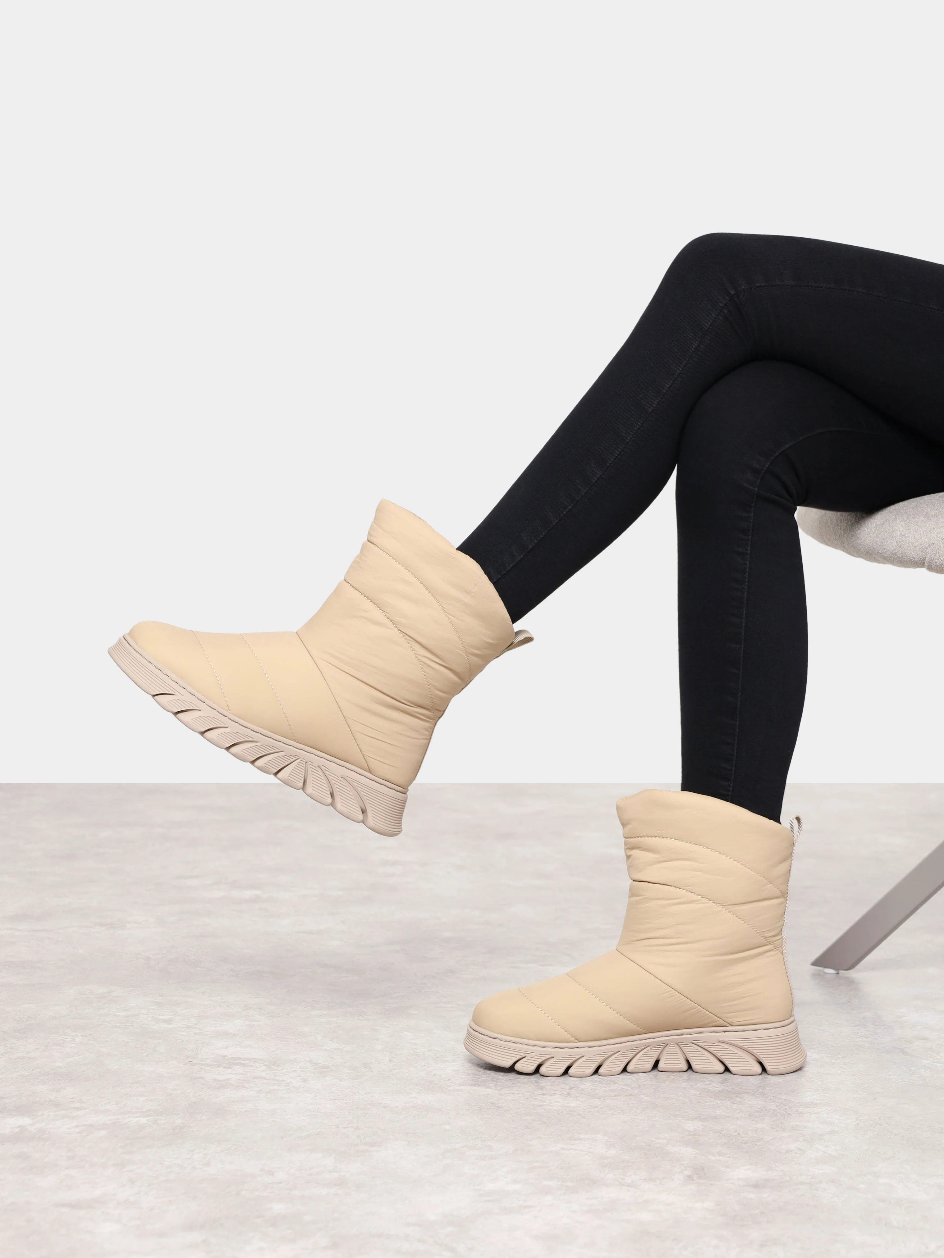 Полусапоги женские зимние, цвет бежевый, текстиль