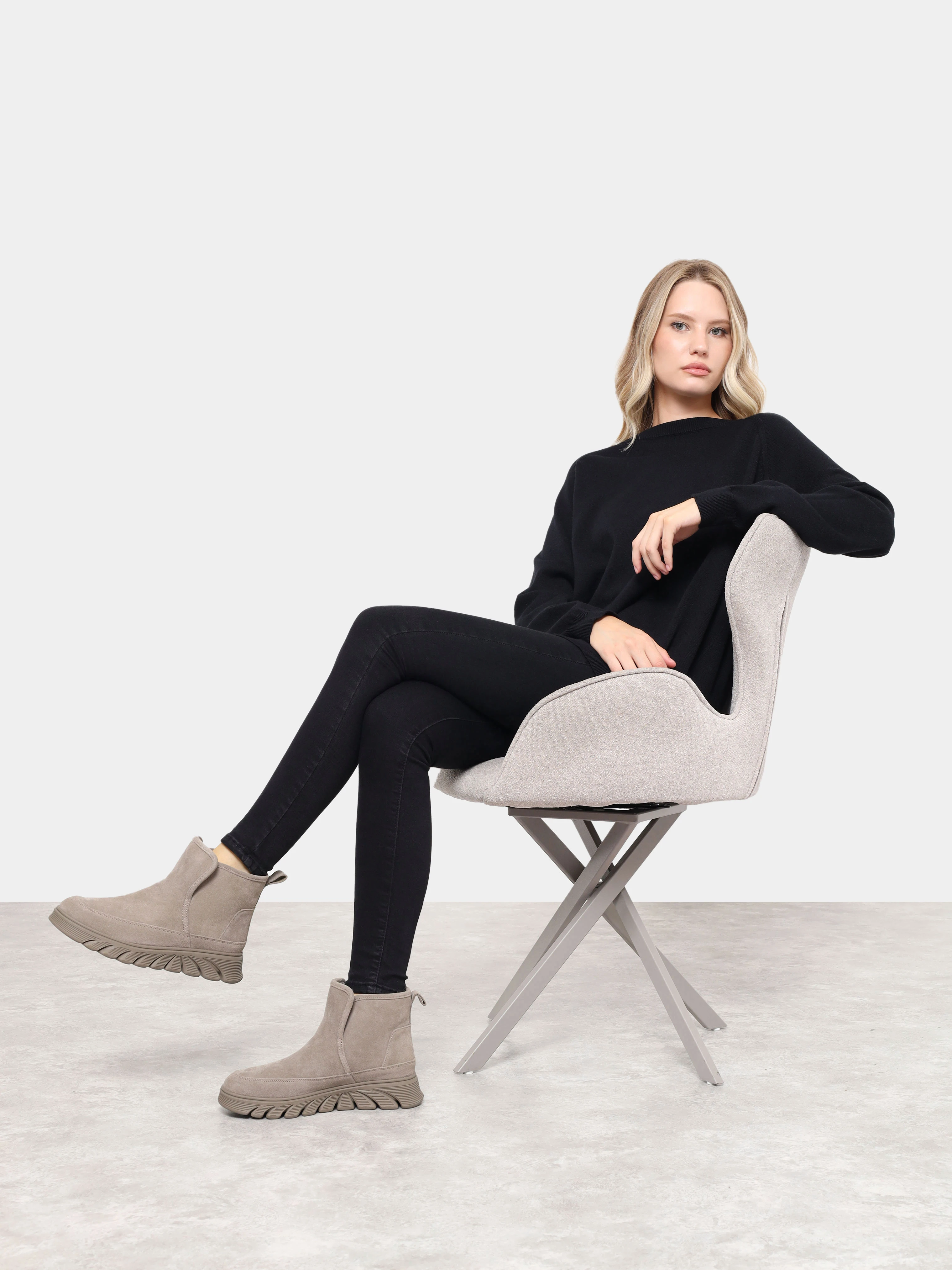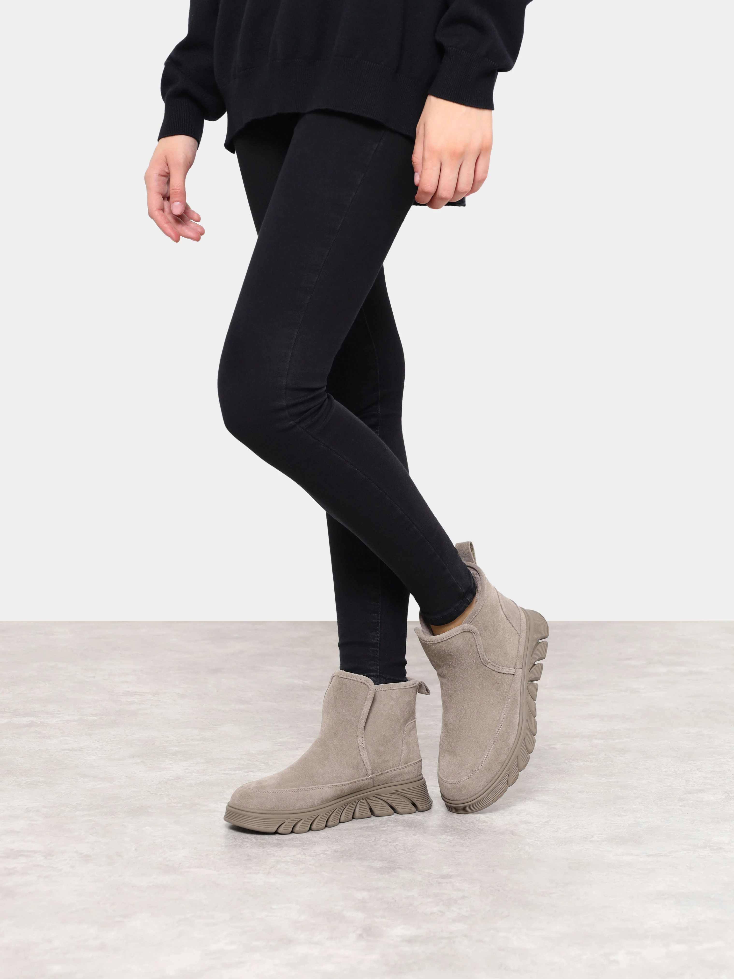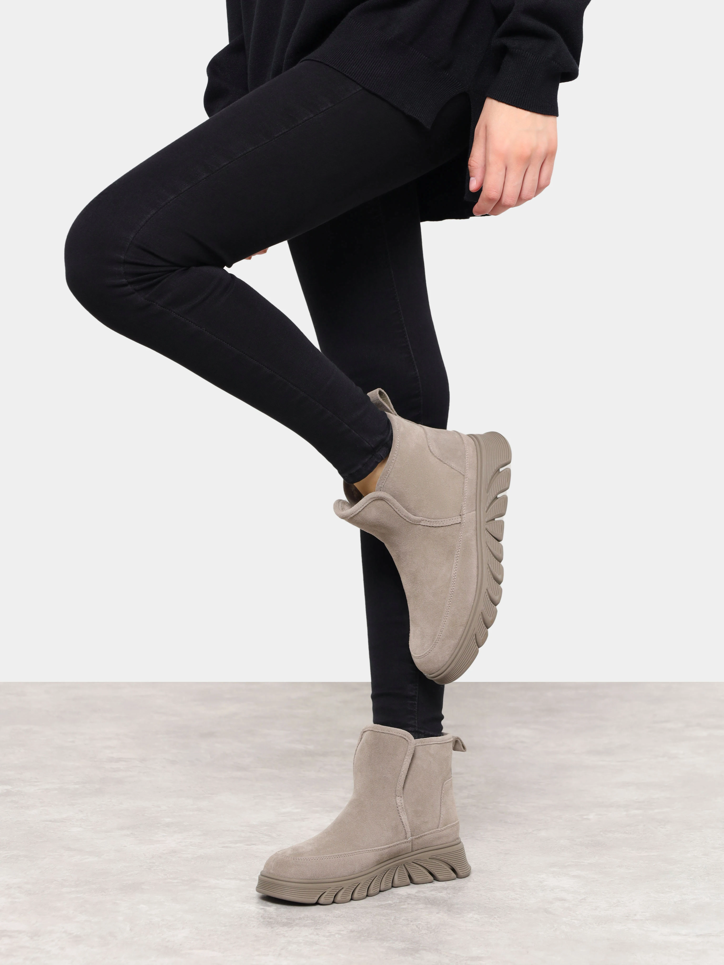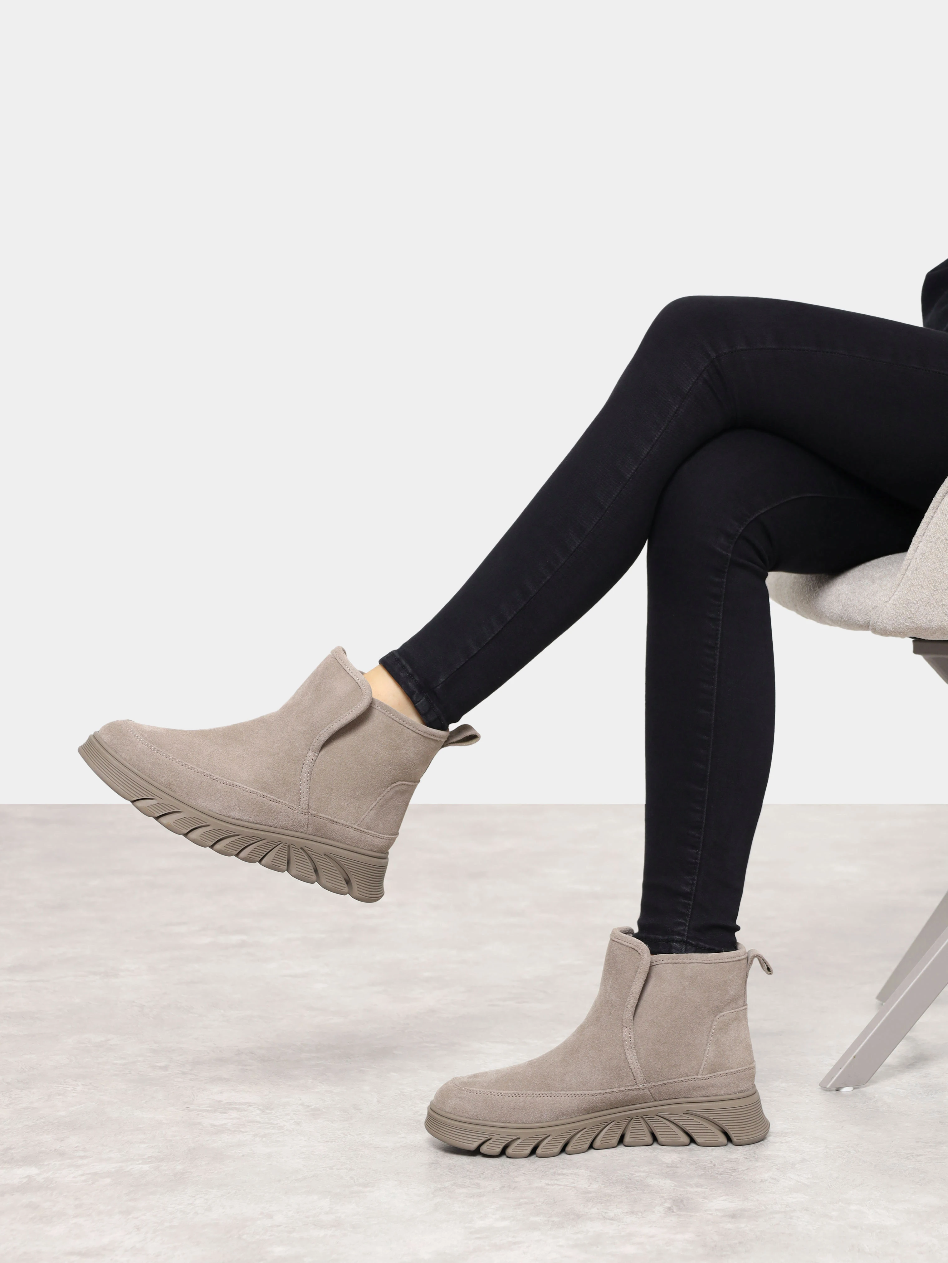 Полусапоги женские зимние, цвет серый, натуральный спилок