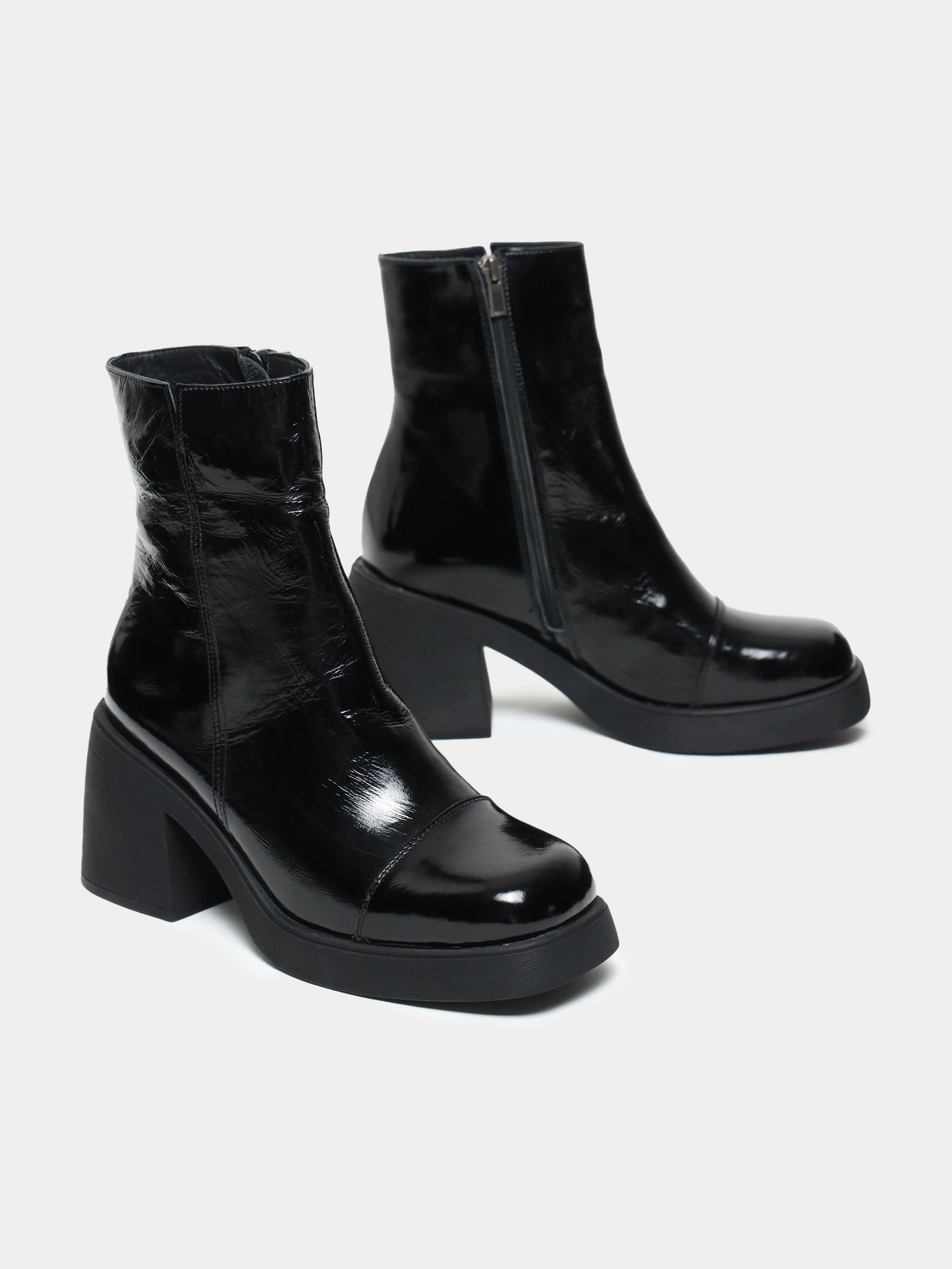 Полусапоги женские демисезонные, цвет черный, натуральная лаковая кожа
