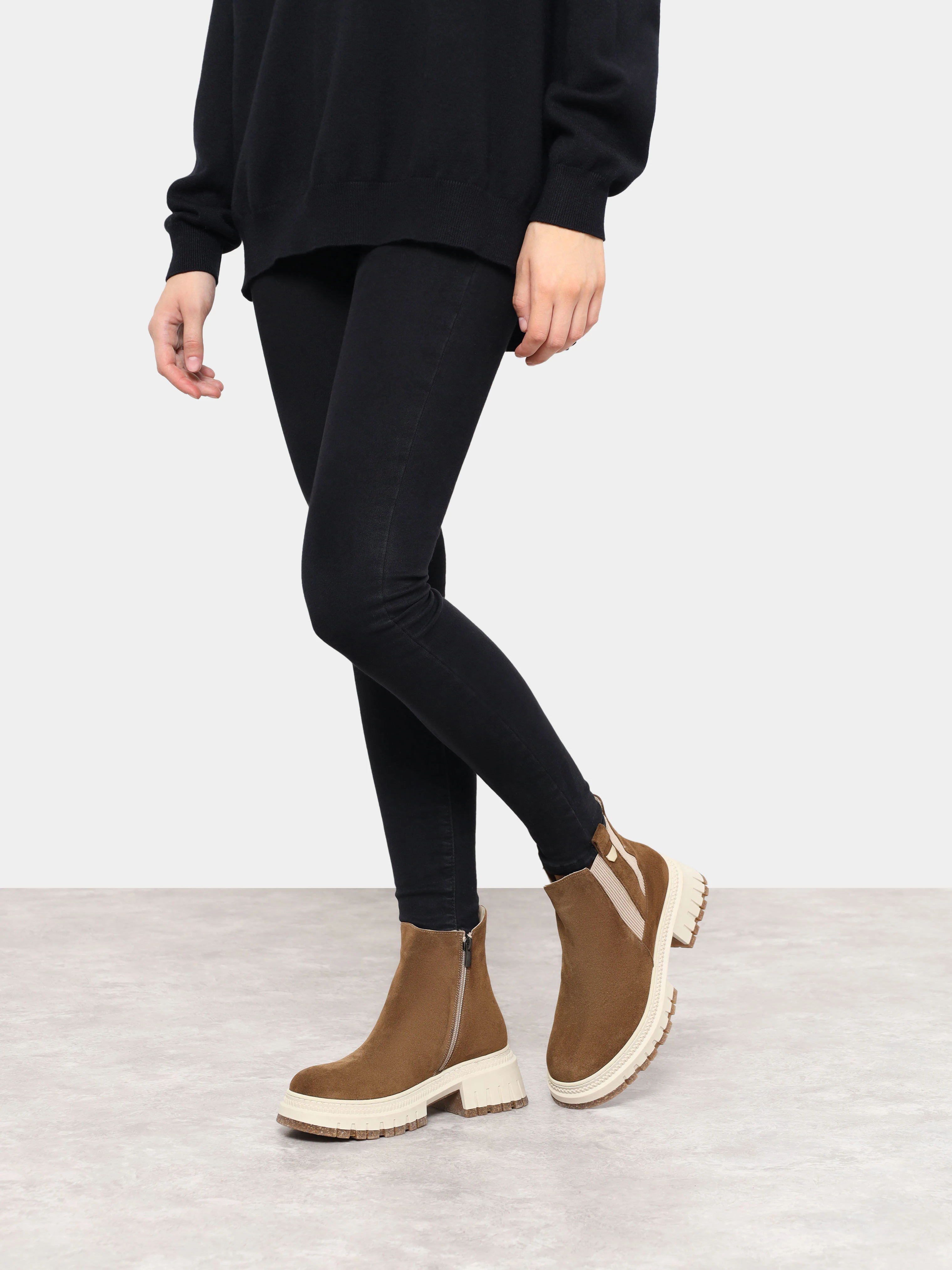 Ботинки женские демисезонные, цвет коричневый, натуральный спилок