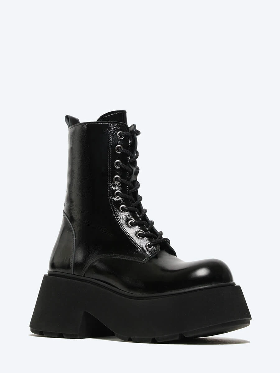 Ботинки женские демисезонные, цвет черный, натуральная лаковая кожа