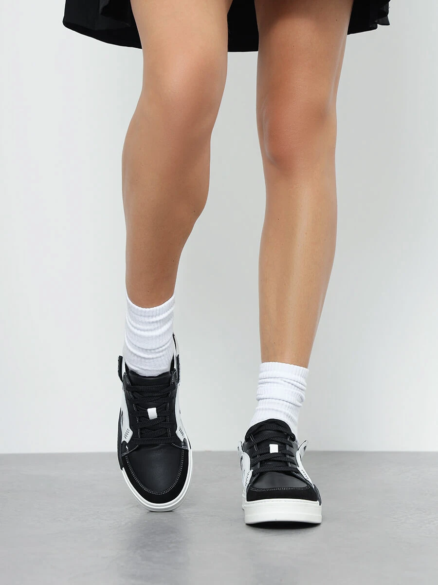 Кеды женские демисезонные, цвет черный, натуральная кожа