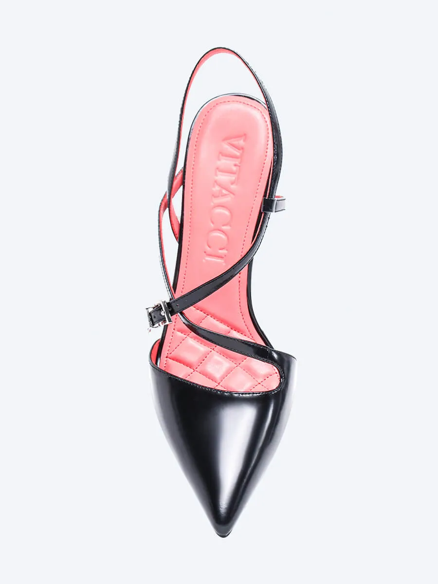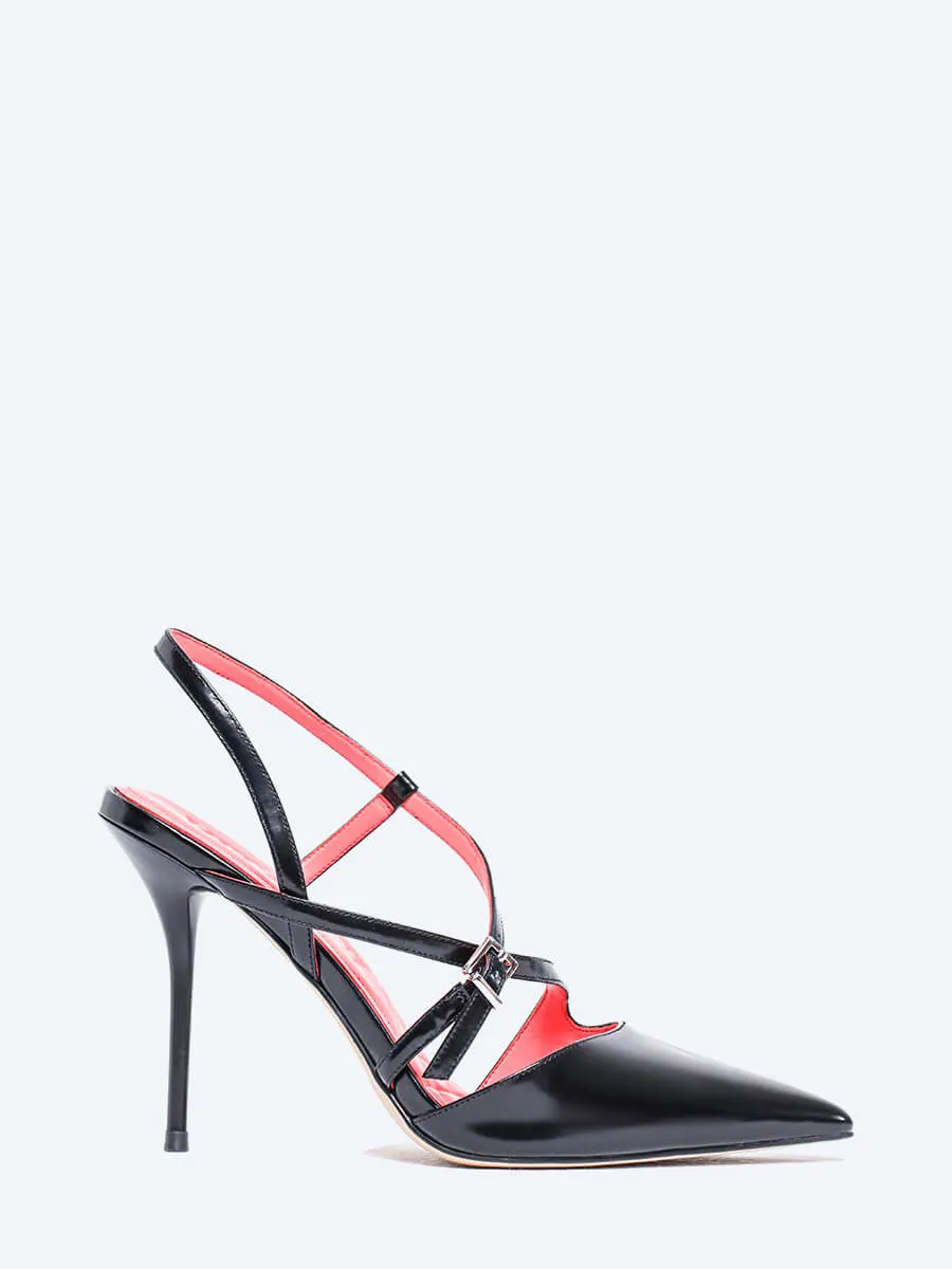 Туфли женские летние, цвет черный, натуральная лаковая кожа