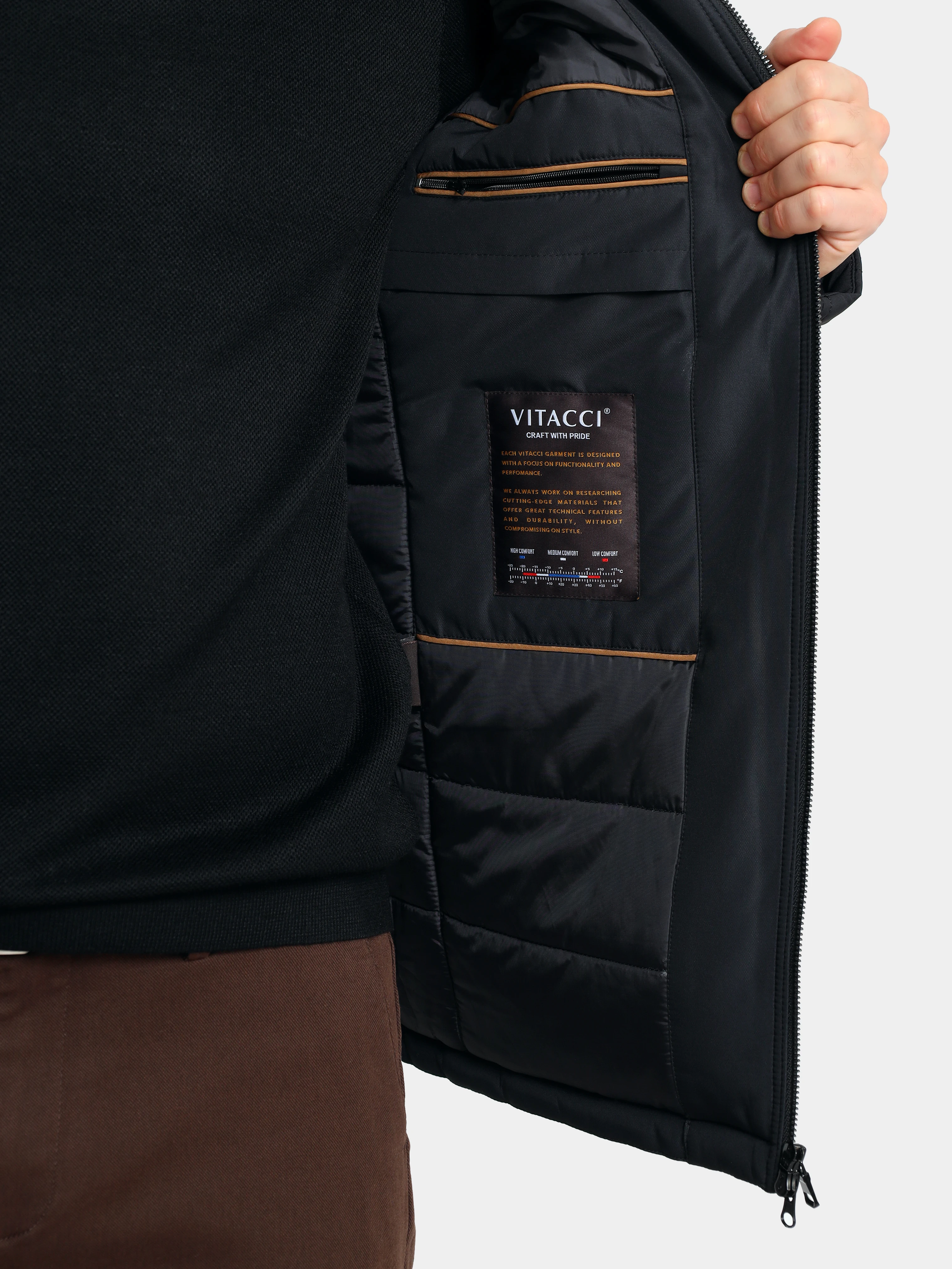 - Горловина воротник-стойка со съемным внутренним воротником из меха норки