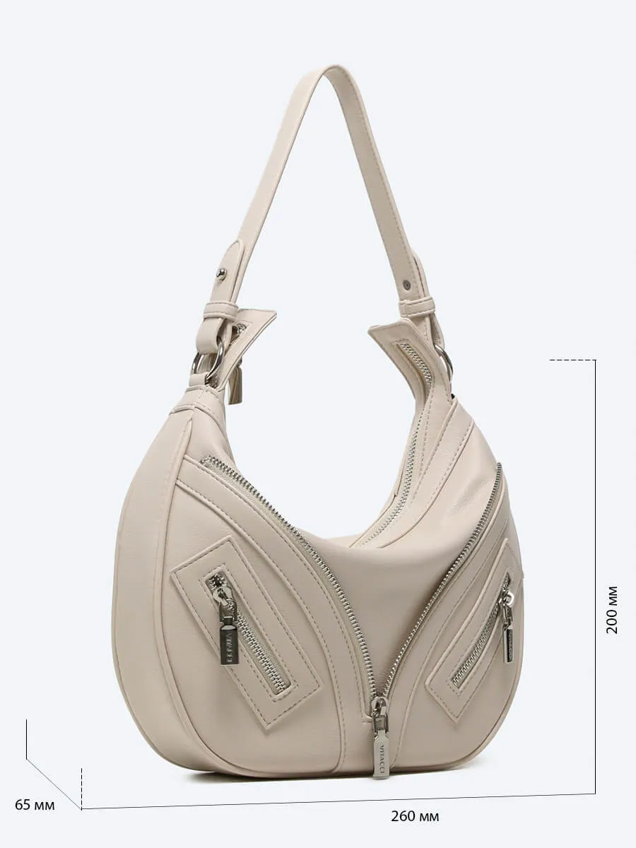Сумка женская закрывается на молнию. Внутри один отдел и два кармана для документов, один из них на молнии.