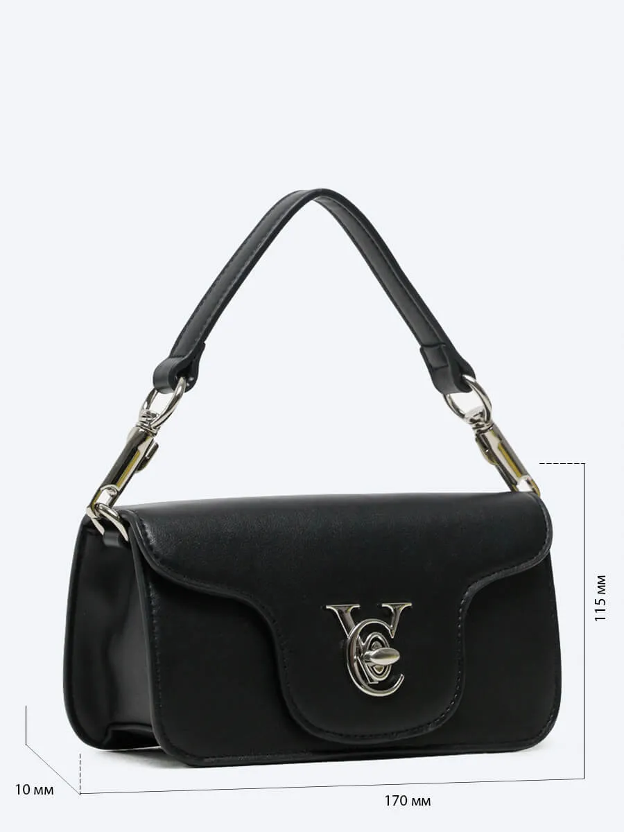 Сумка женская закрывается клапаном с поворотным замком. Внутри один отдел, карман для телефона и карман для документов на молнии.