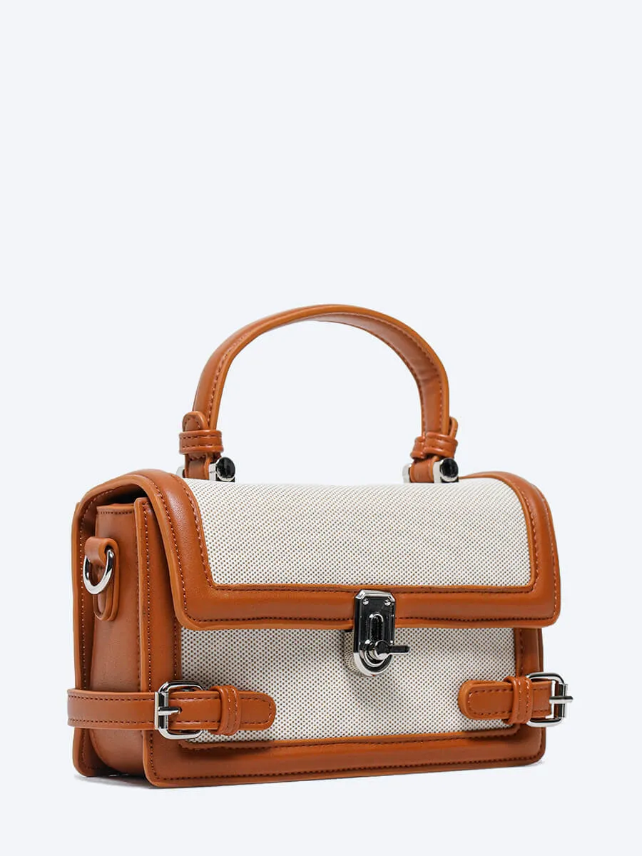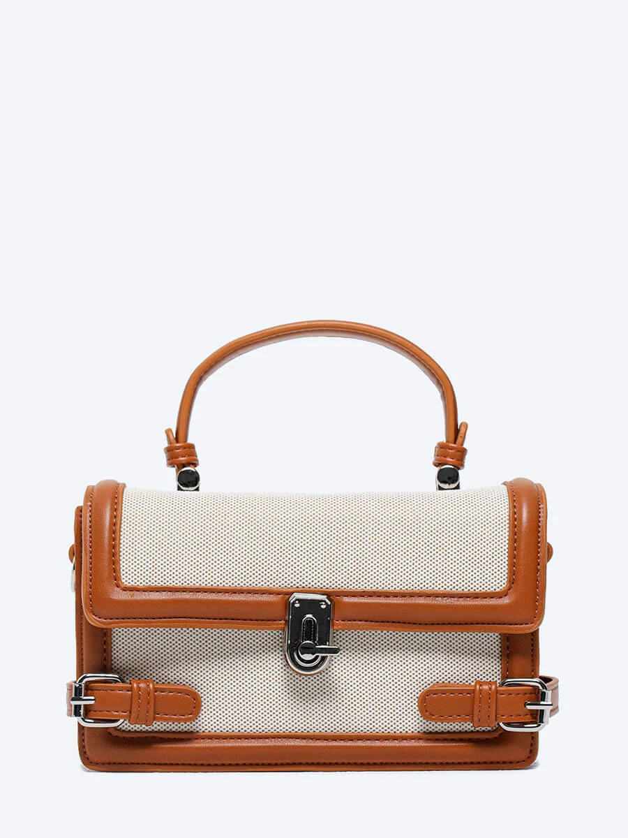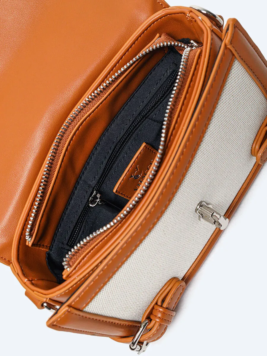Женская сумка закрывается клапаном с поворотным замком. Внутри два отделения, одно из которых закрывается на молнию. Плечевой ремень прилагается.