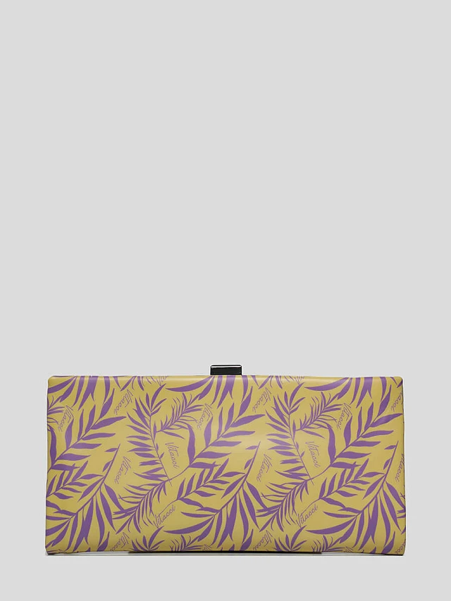 Клатч выполнен с замком-защелкой. Внутри имеется карман на молнии. Прилагается цепочка для ношения на плече.