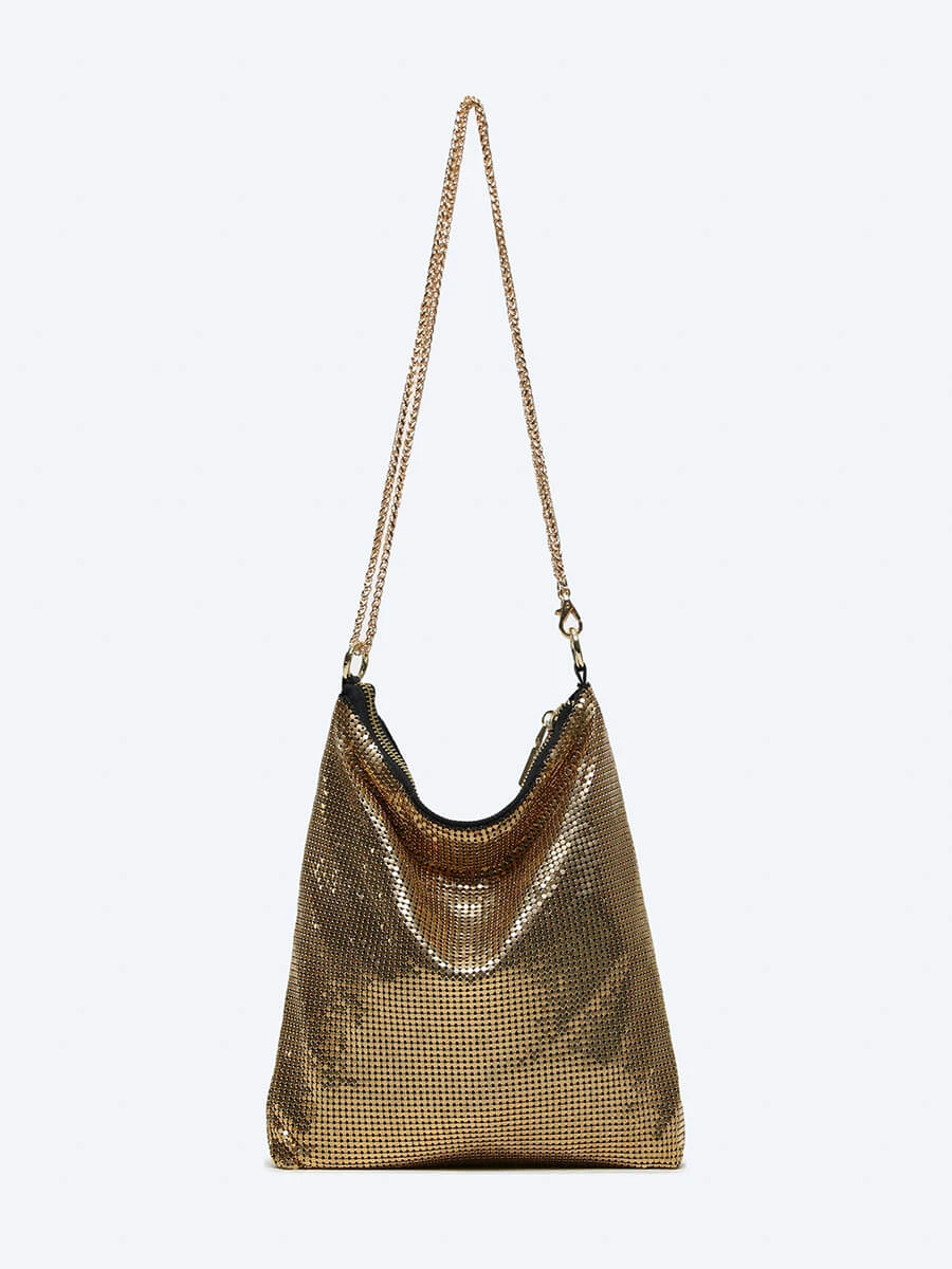 Сумка-хобо закрывается на молнию. Внутри имеется один большой отдел.