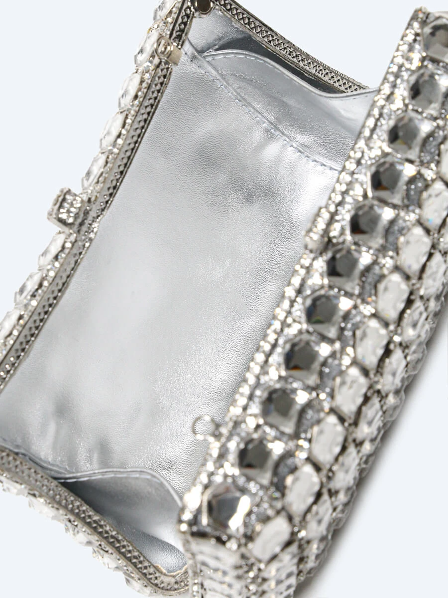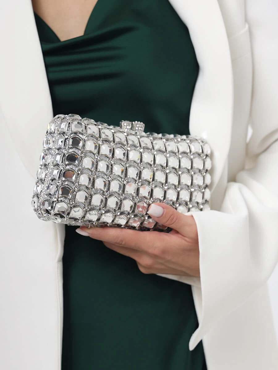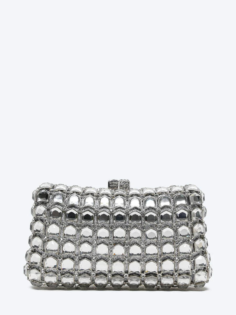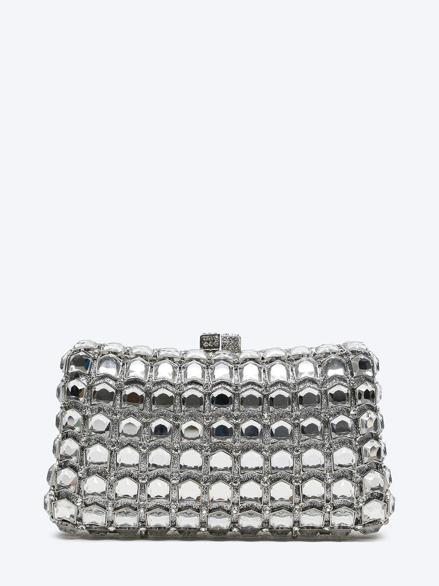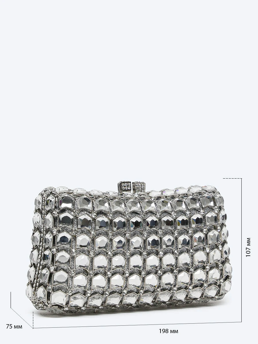 Клатчи C1187-29 женские цвет серебряный, текстиль/стразы