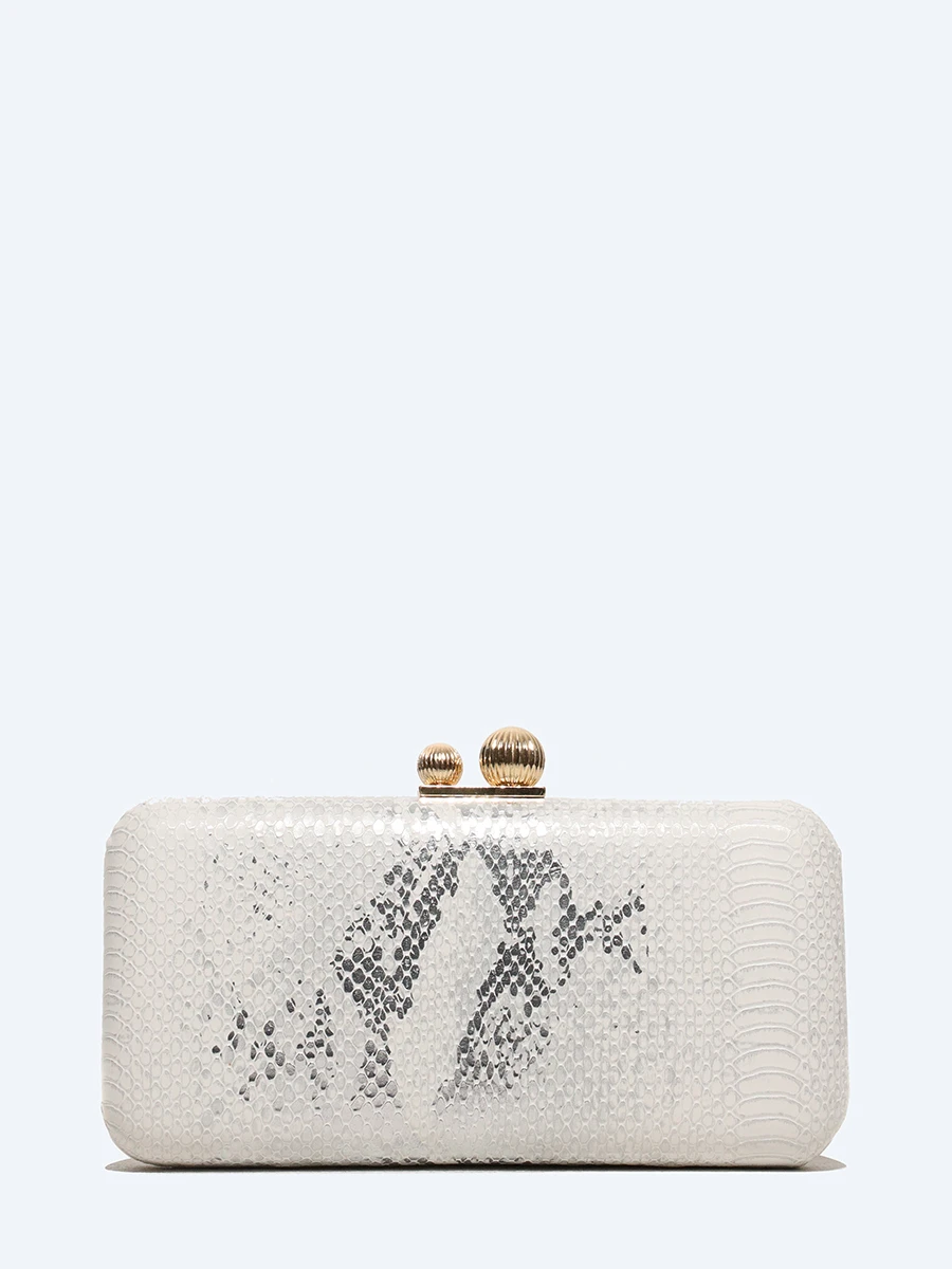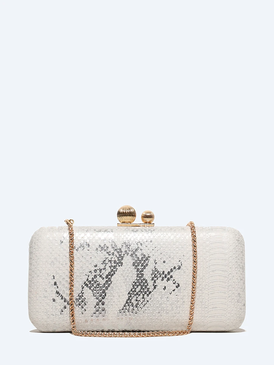 Сумка-клатч закрывается на защелку, имеет одно отделение. В комплекте съёмная цепочка.
