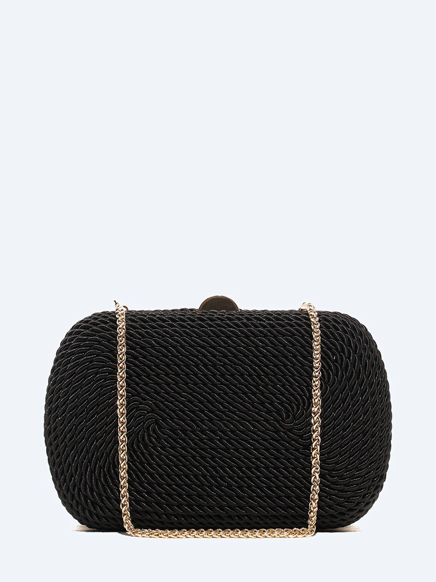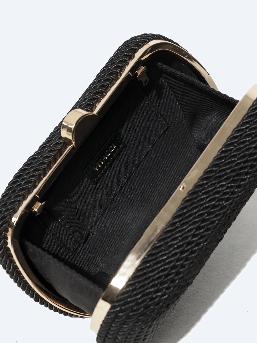 Сумка закрывается на рамочный замок, имеет одно отделение и один внутренний открытый карман. В комплекте съёмная цепочка.
