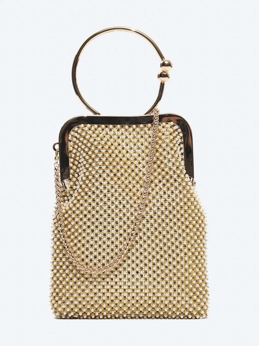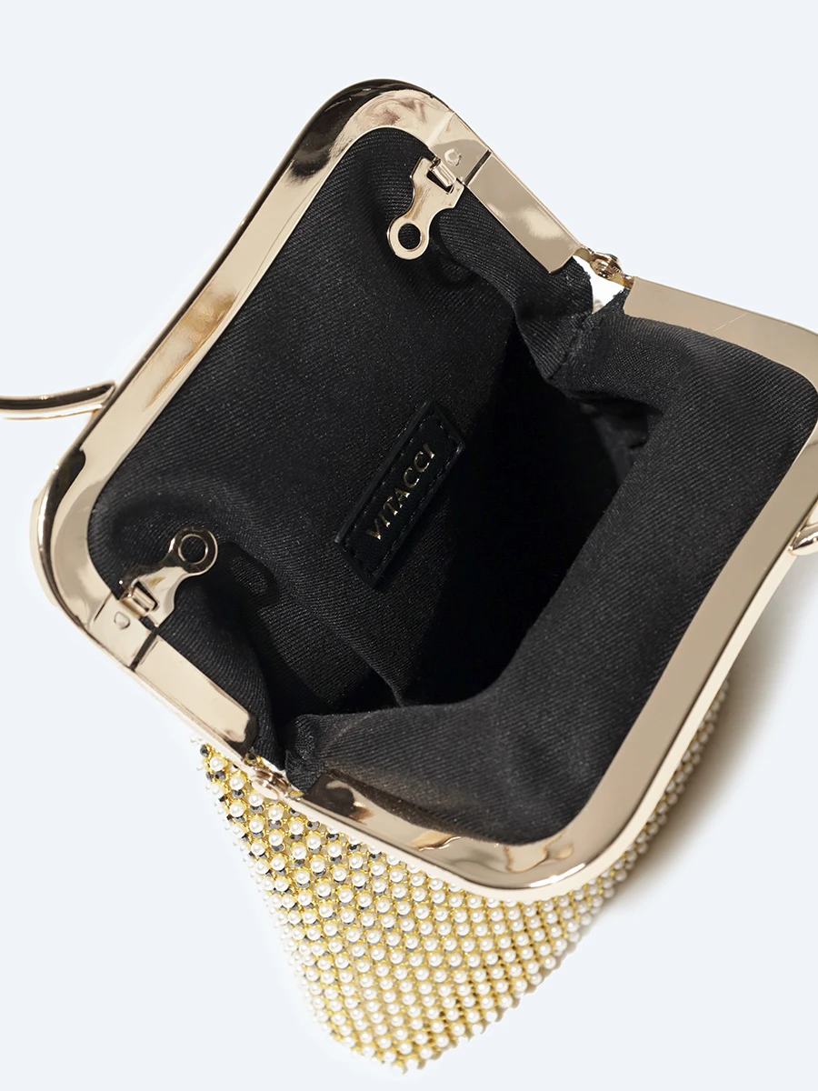 Сумка с ручкой в виде браслета закрывается на рамочный замок, имеет одно отделение. В комплекте съёмная цепочка.