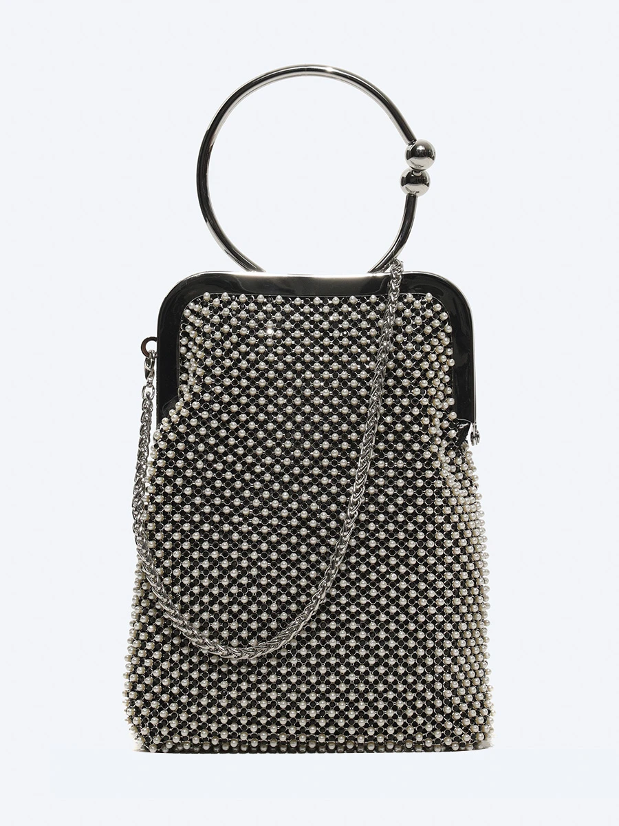 Сумка с ручкой в виде браслета закрывается на рамочный замок, имеет одно отделение. В комплекте съёмная цепочка.