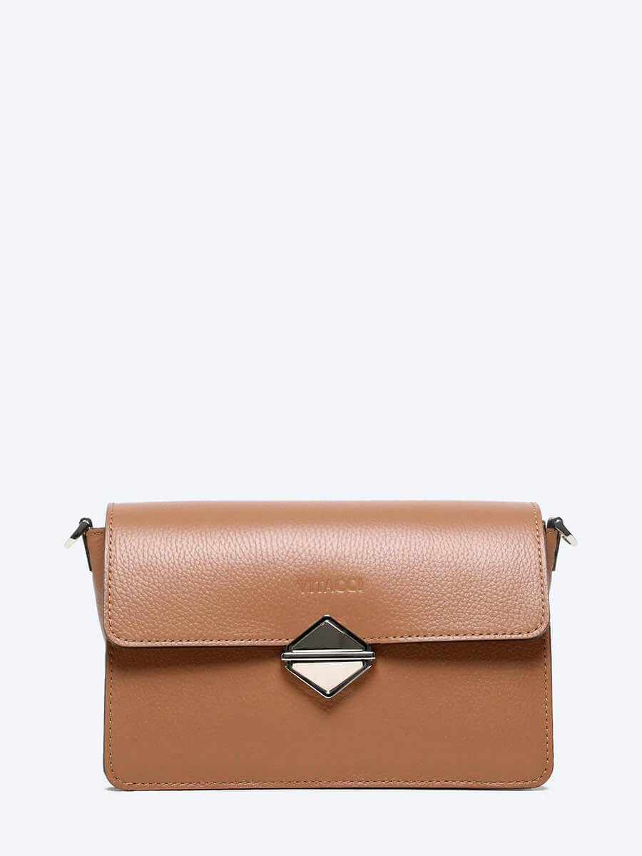 Сумка женская закрывается клапаном на декоративный замок. Внутри один большой отдел, карман для документов на молнии и карман для мелочи.