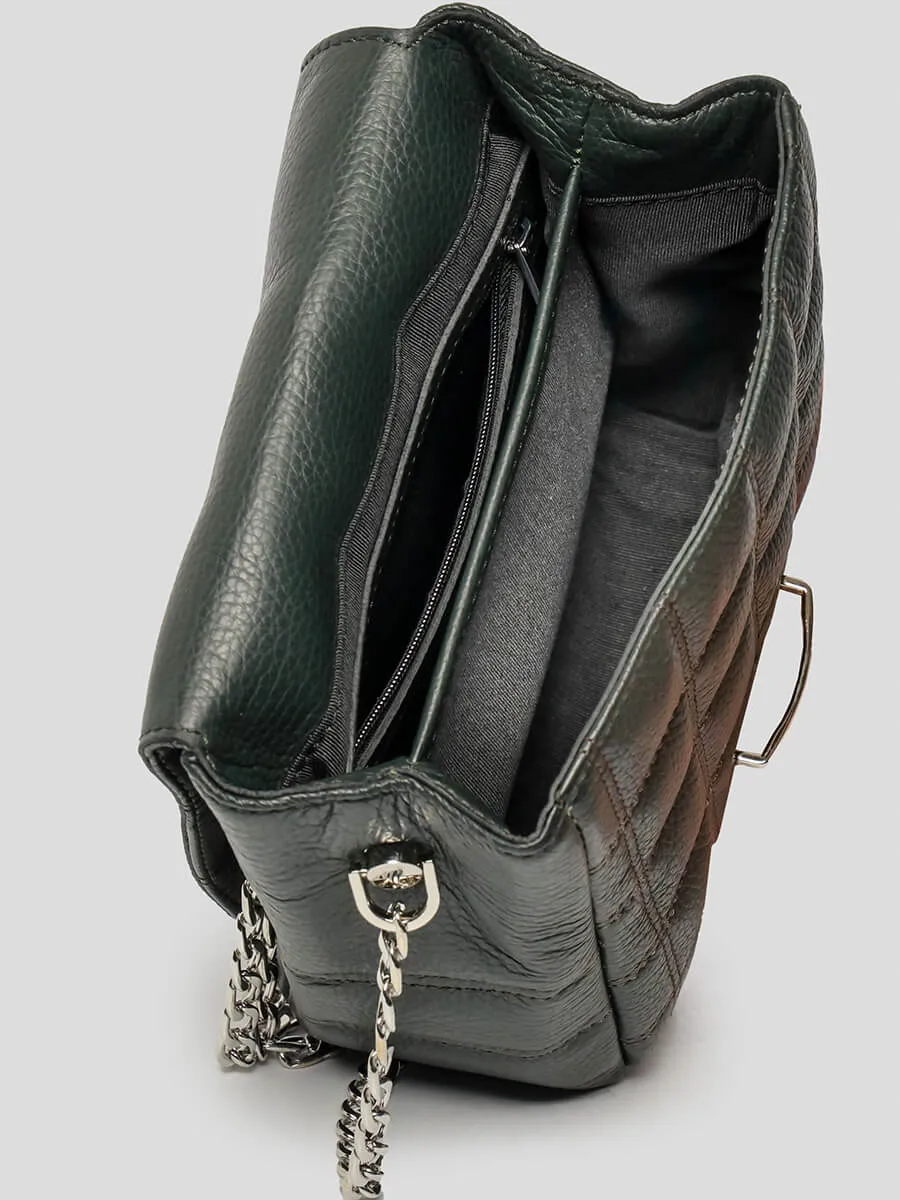Сумка женская, закрывается клапаном с портфельным замком. Внутри сумки два отдела и один карман для документов на молнии.
