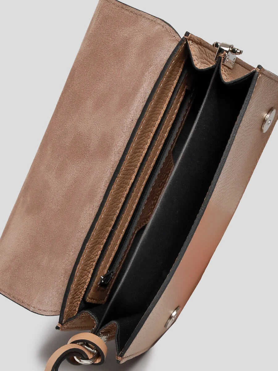 Сумка женская, закрывается клапаном на магнитные кнопки. Внутри сумки два отдела и карман для документов на молнии.