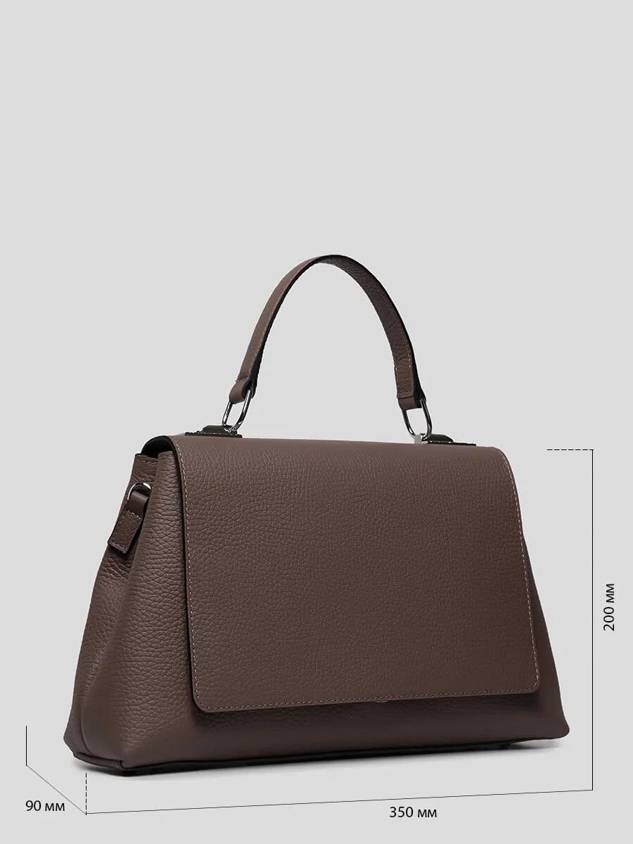 Сумка женская, закрывается клапаном на замок-защелку. Внутри два отдела и два кармана для документов, открытый и на молнии.