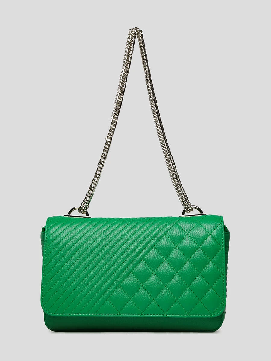 Сумка женская, закрывается клапаном на замок-защелку. Внутри один большой отдел и карман для документов на молнии.