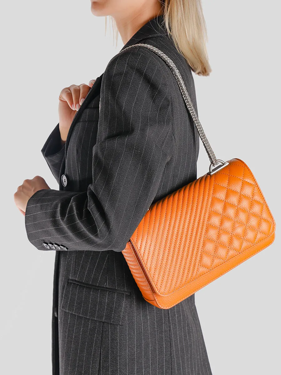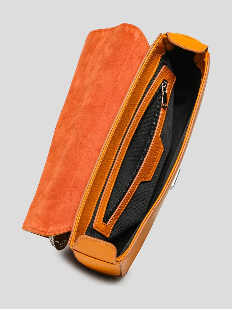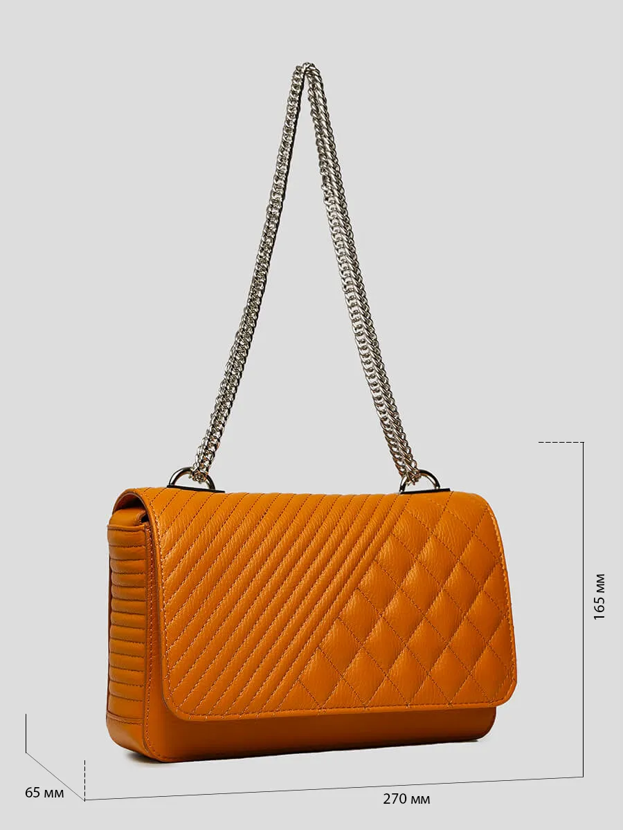 Сумка женская, закрывается клапаном на замок-защелку. Внутри один большой отдел и карман для документов на молнии.