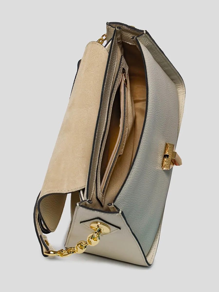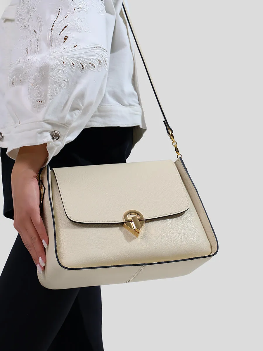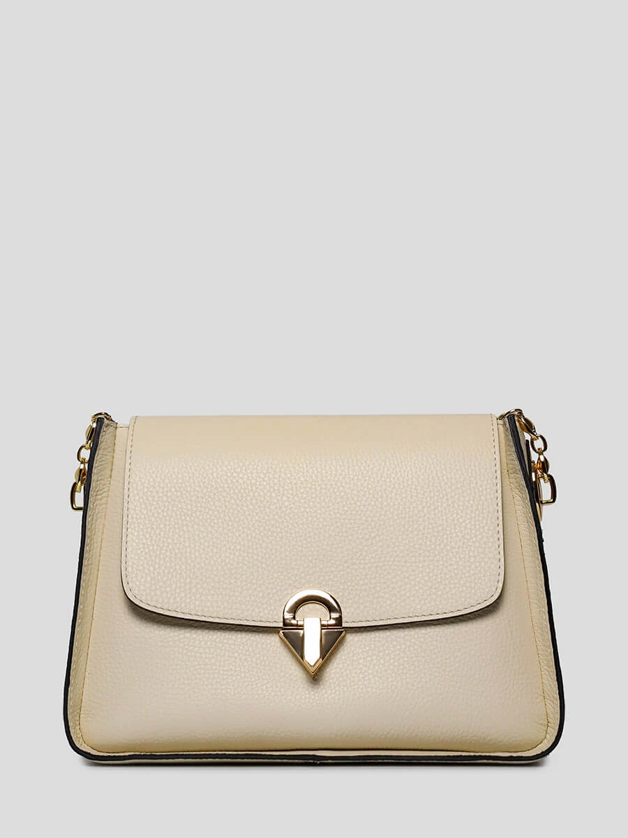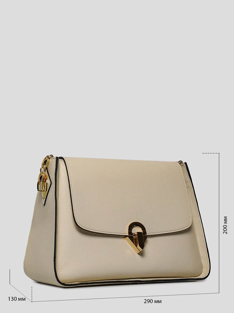 Сумка женская, закрывается клапаном с поворотным замком. Внутри один большой отдел и карман для документов на молнии. С внешней стороны сумки на задней стенке - большой карман для документов на магнитной кнопке.