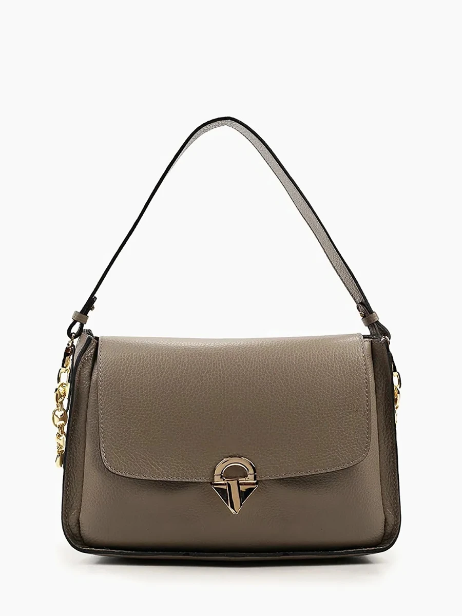 Сумка женская, закрывается клапаном с поворотным замком. Внутри один большой отдел и карман для документов на молнии. С внешней стороны сумки на задней стенке - большой карман для документов на магнитной кнопке.