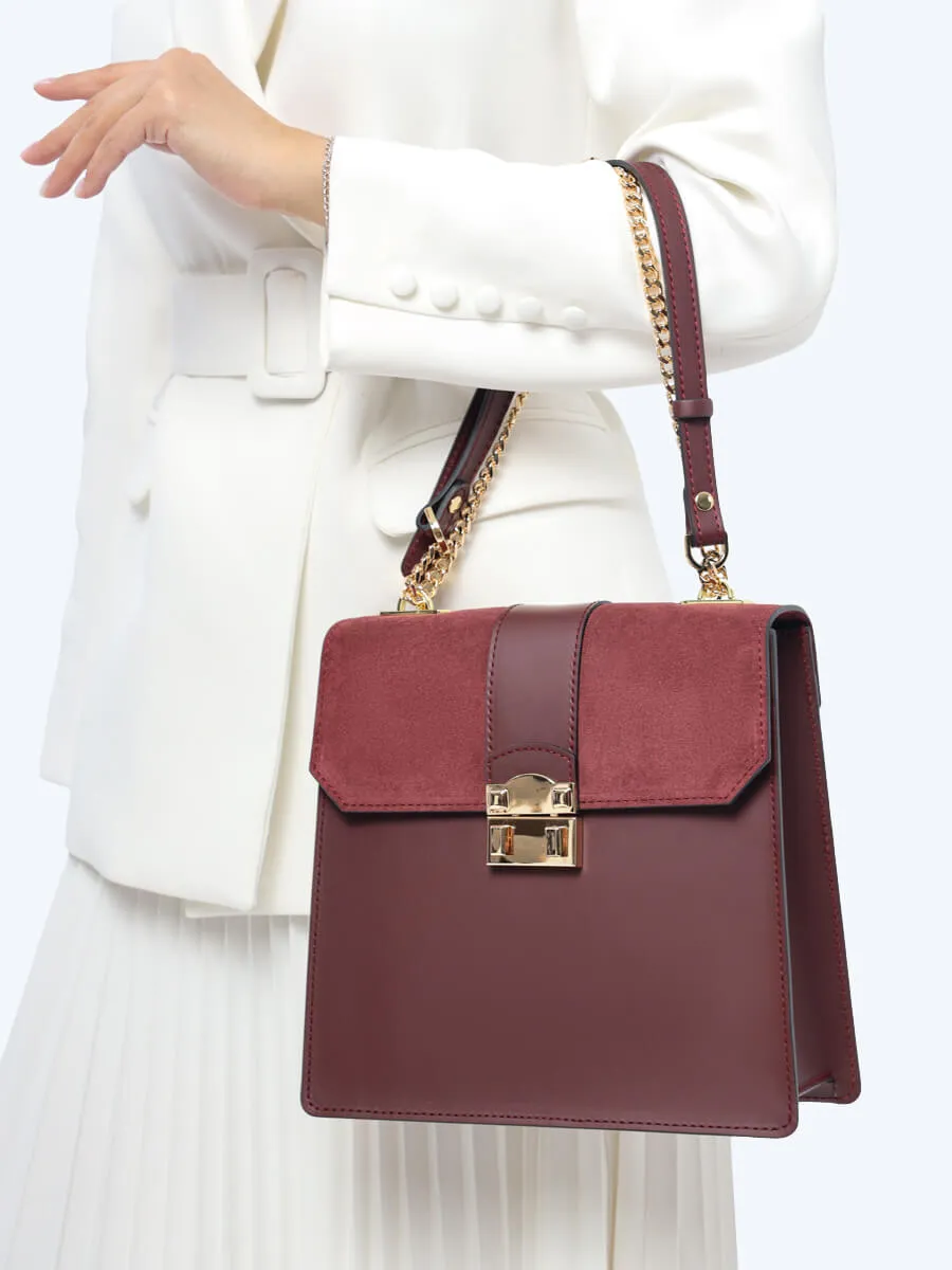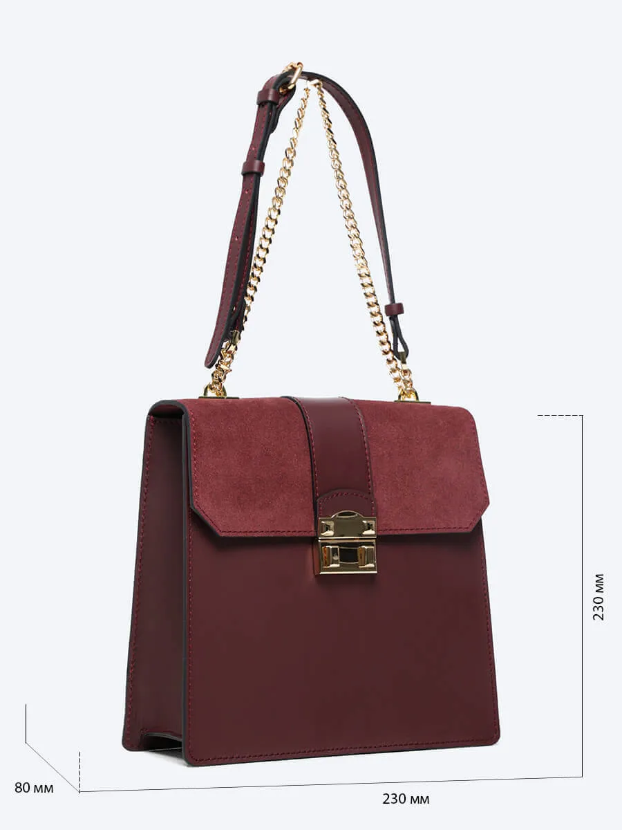 Сумка женская, закрывается клапаном с портфельным замком. Внутри сумки один отдел без карманов.