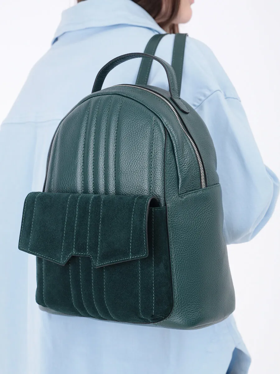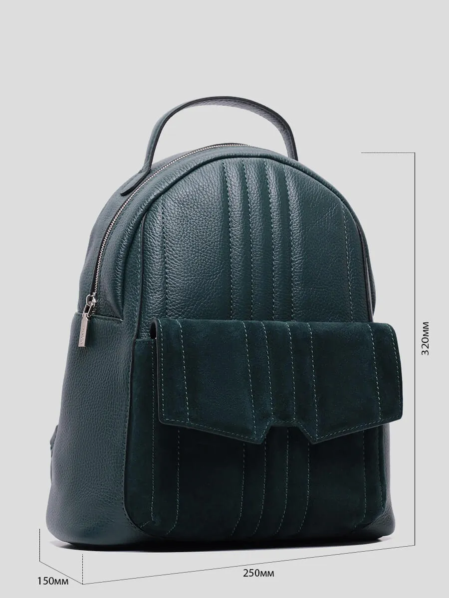 Рюкзак женский, закрывается на молнию. Снаружи имеется карман на кнопке, внутри - карман на молнии. Плечевые ремни регулируются по длине.