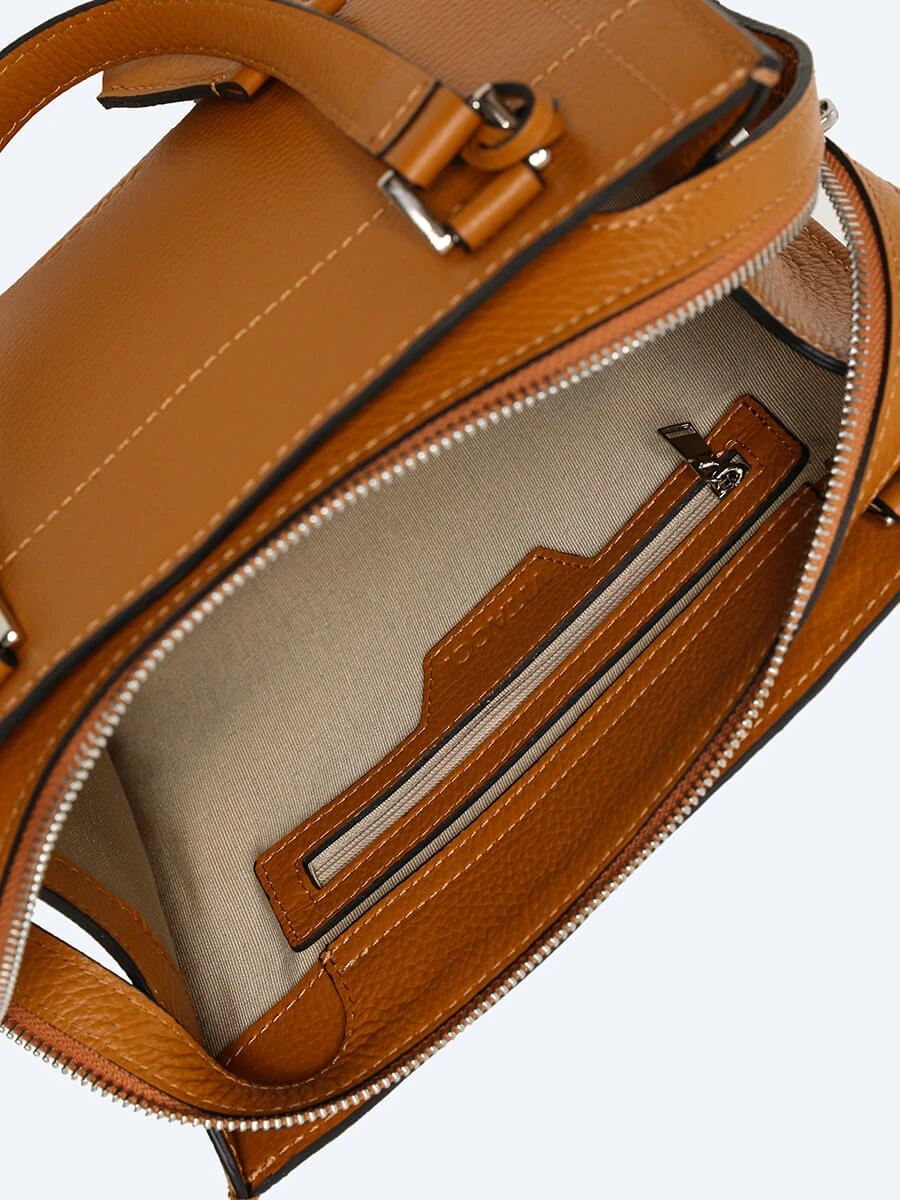 Сумка женская, закрывается на молнию. Внутри одно отделение и карман на молнии для документов.