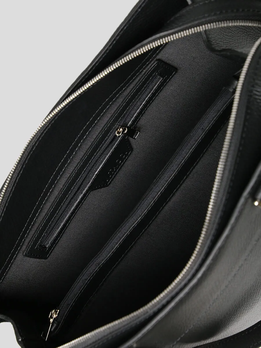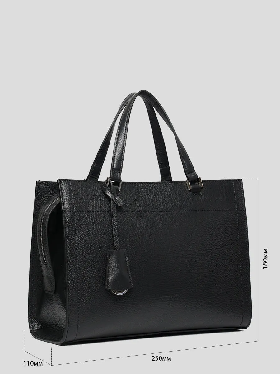 Сумка женская, закрывается на молнию. Внутри два больших отделения, между которыми располагается отделение на молнии. Также внутри: карман на молнии для документов, карман для телефона.