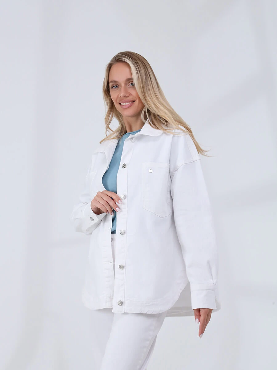 Женская удлиненная куртка от бренда VITACCI выполнена из хлопка с включением лайкры. Оснащена накладными карманами в районе груди. В виде застежки выступают пуговицы. Обхват груди: XS - 108 см, S - 112 см, M - 118 см, L - 121 см. Длина изделия по спинке - 70 см.